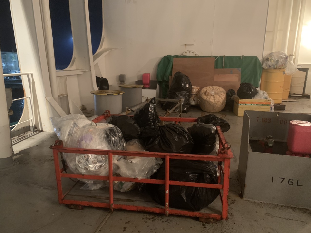 Kiểm tra vệ sinh và thu gom rác trên tàu