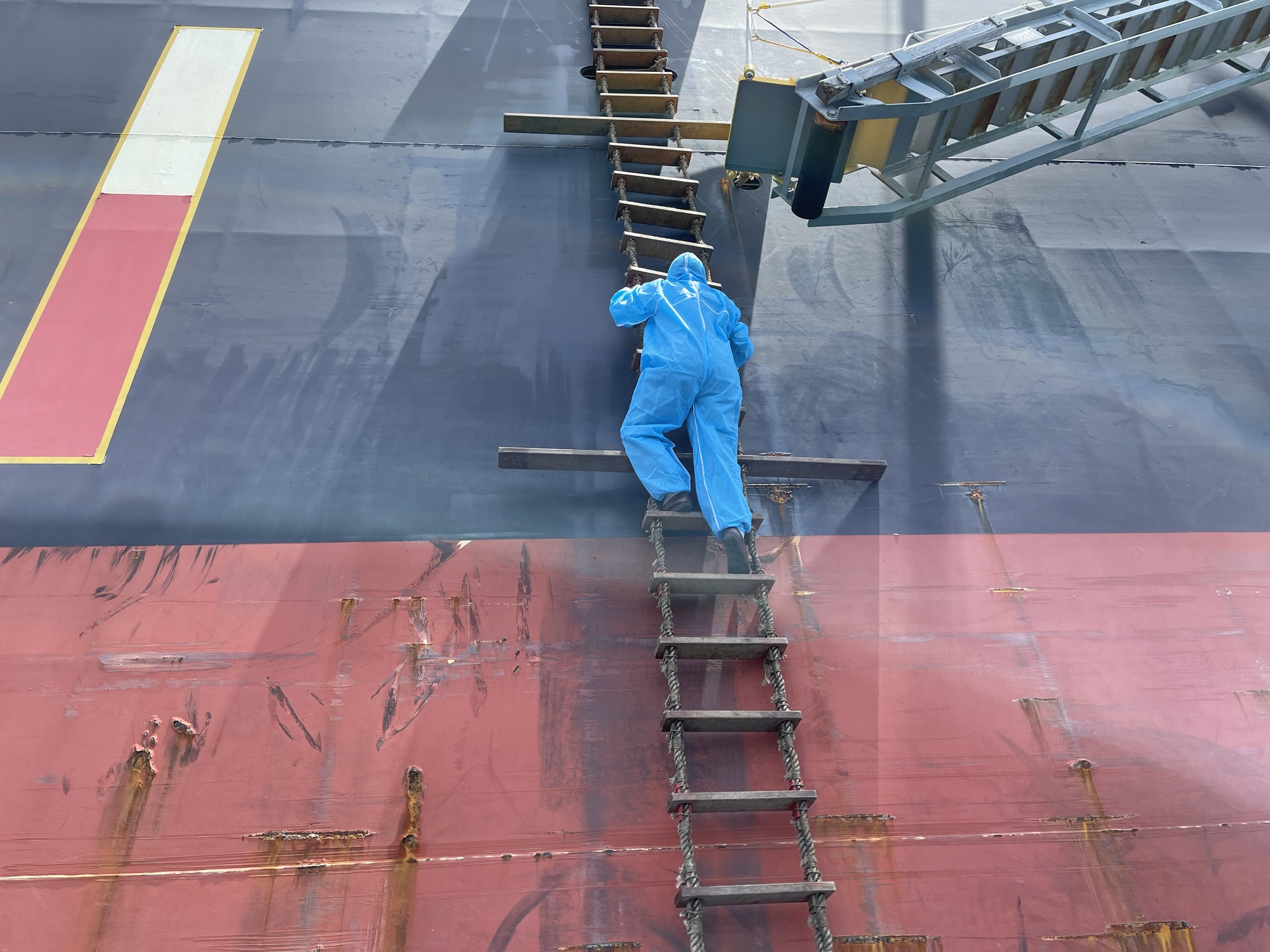 Kiểm dịch viên lên tàu để kiểm tra y tế đối với thuyền viên và phương tiện