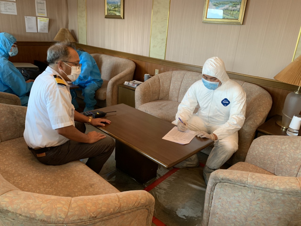 - Đối với thuyền viên: tất cả thuyền viên đều không sốt, không có triệu chứng hô hấp, không có dấu hiệu phát ban, sức khỏe bình thường.
