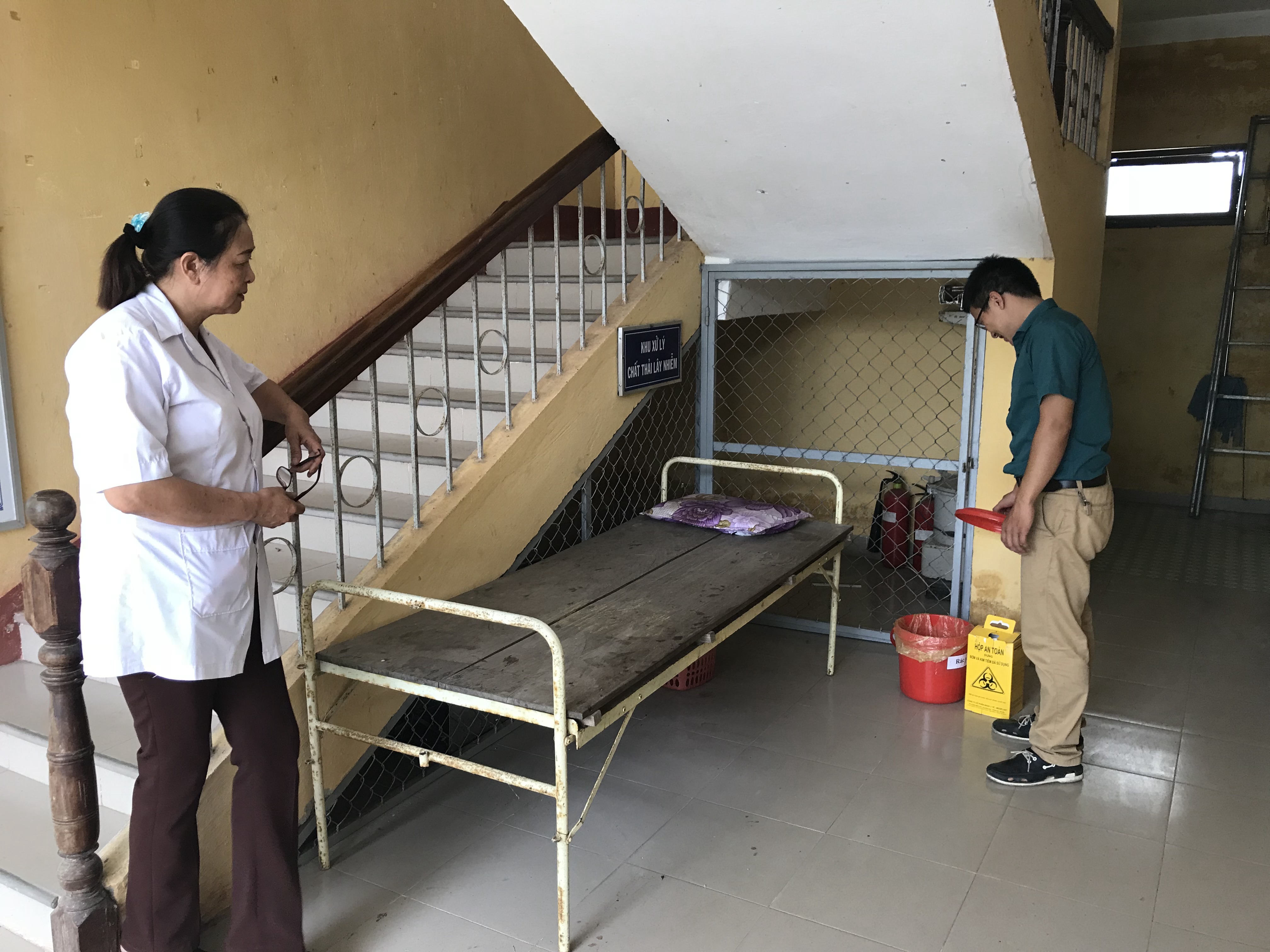 Tuy nhiên qua kiểm tra phát hiện một số tồn tại như sau: Trung tâm y tế huyện hiện chưa có hệ thống xử lý nước thải y tế tập trung theo quy định, nước thải tự thấm vào hầm rút của trung tâm. Chưa có giấy phép xả nước thải vào nguồn nước. Trung tâm y tế huyện chưa có khu vực lưu giữ chất thải y tế trong khu viên bệnh viện; Thời gian lưu giữ chất thải lây nhiễm tại bệnh viện vượt quá thời gian theo quy định (không quá 3 ngày). Chưa thực hiện quan trắc môi trường bệnh viện theo thông tư 31/2013/TT-BYT. Lượng nước thải rửa phim đang lưu giữ tại bệnh viện 40 lít.