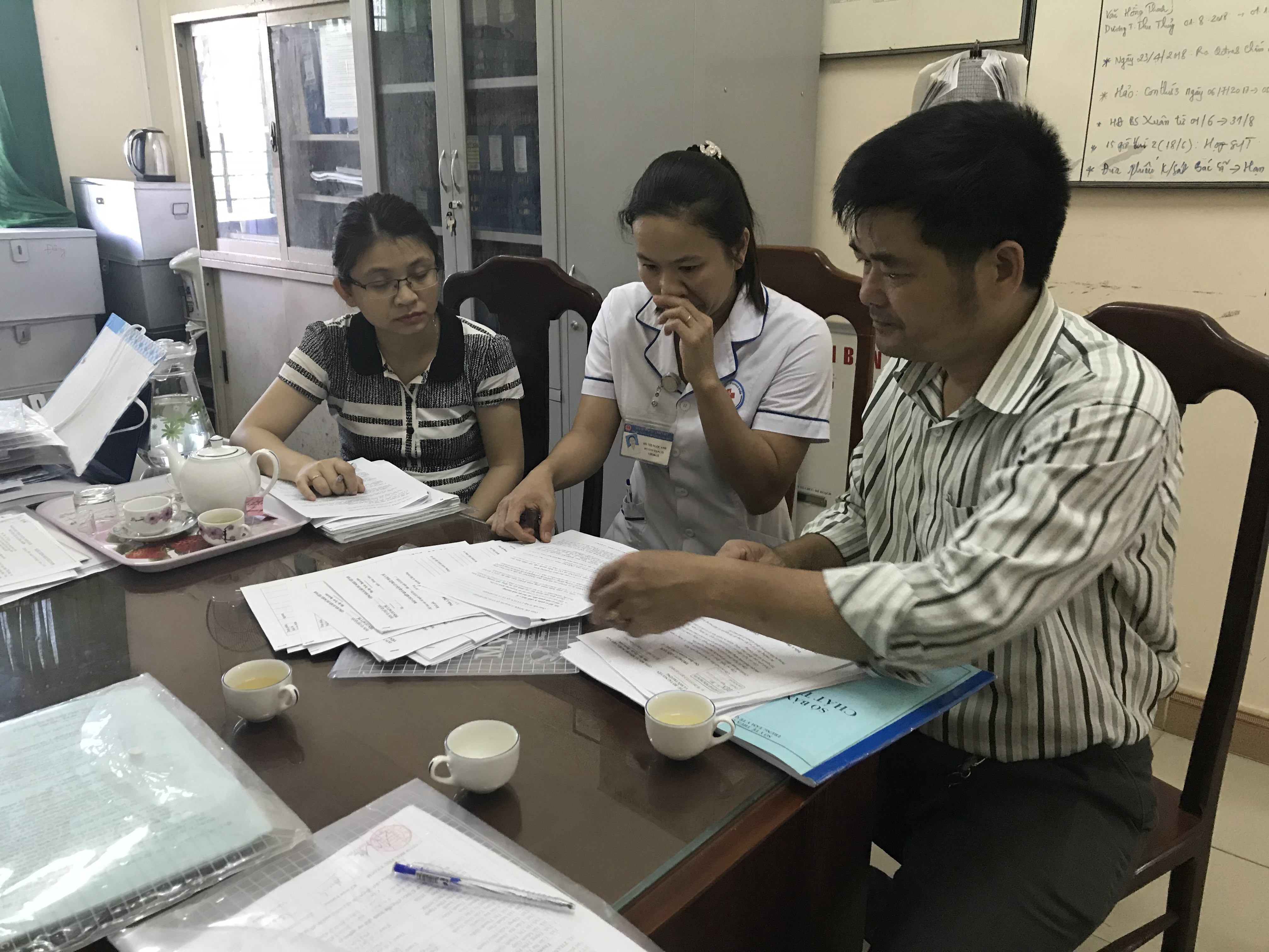 Đoàn kiểm tra làm việc với cán bộ TYT Quảng Lợi, huyện Quảng Điền