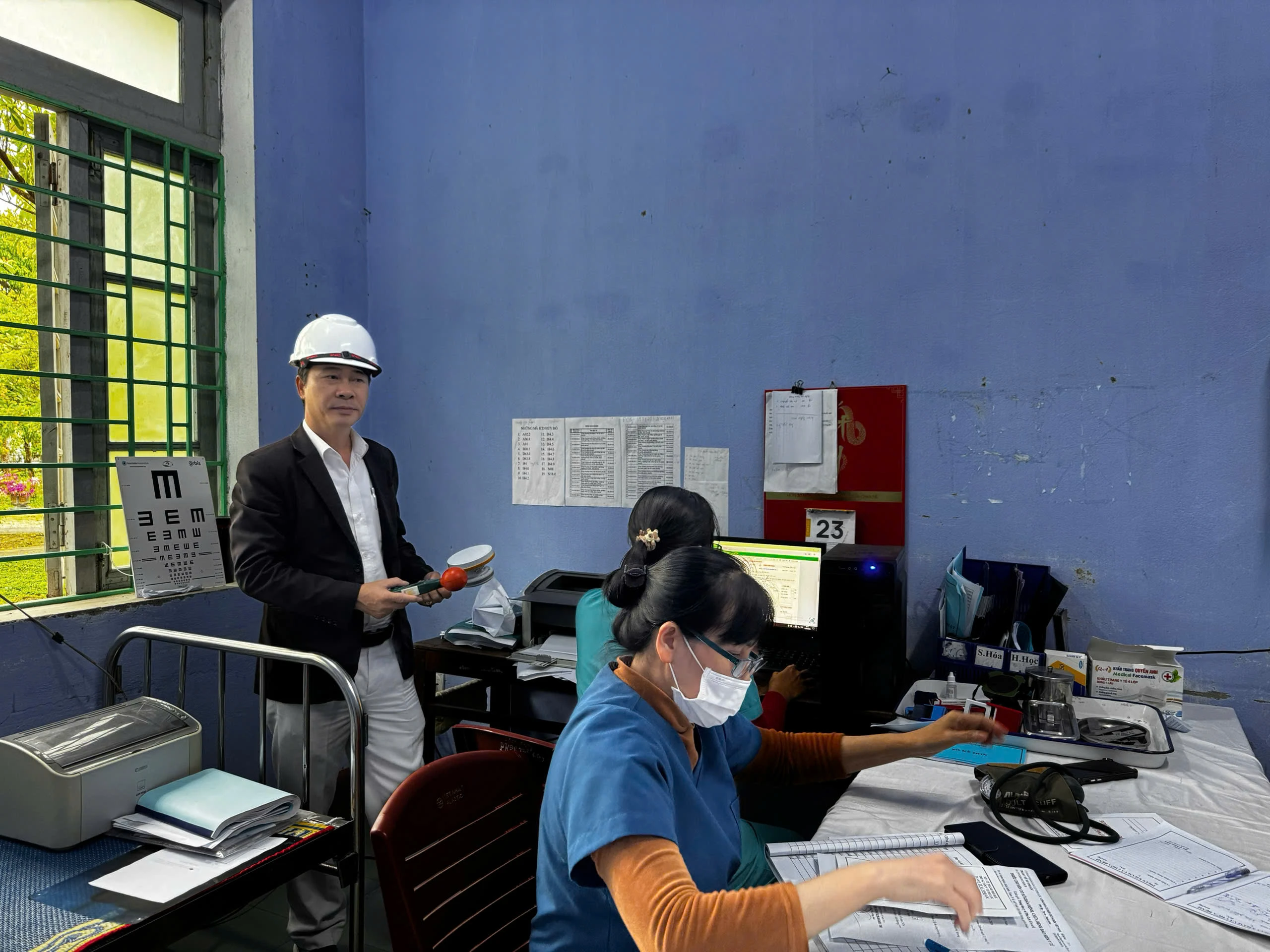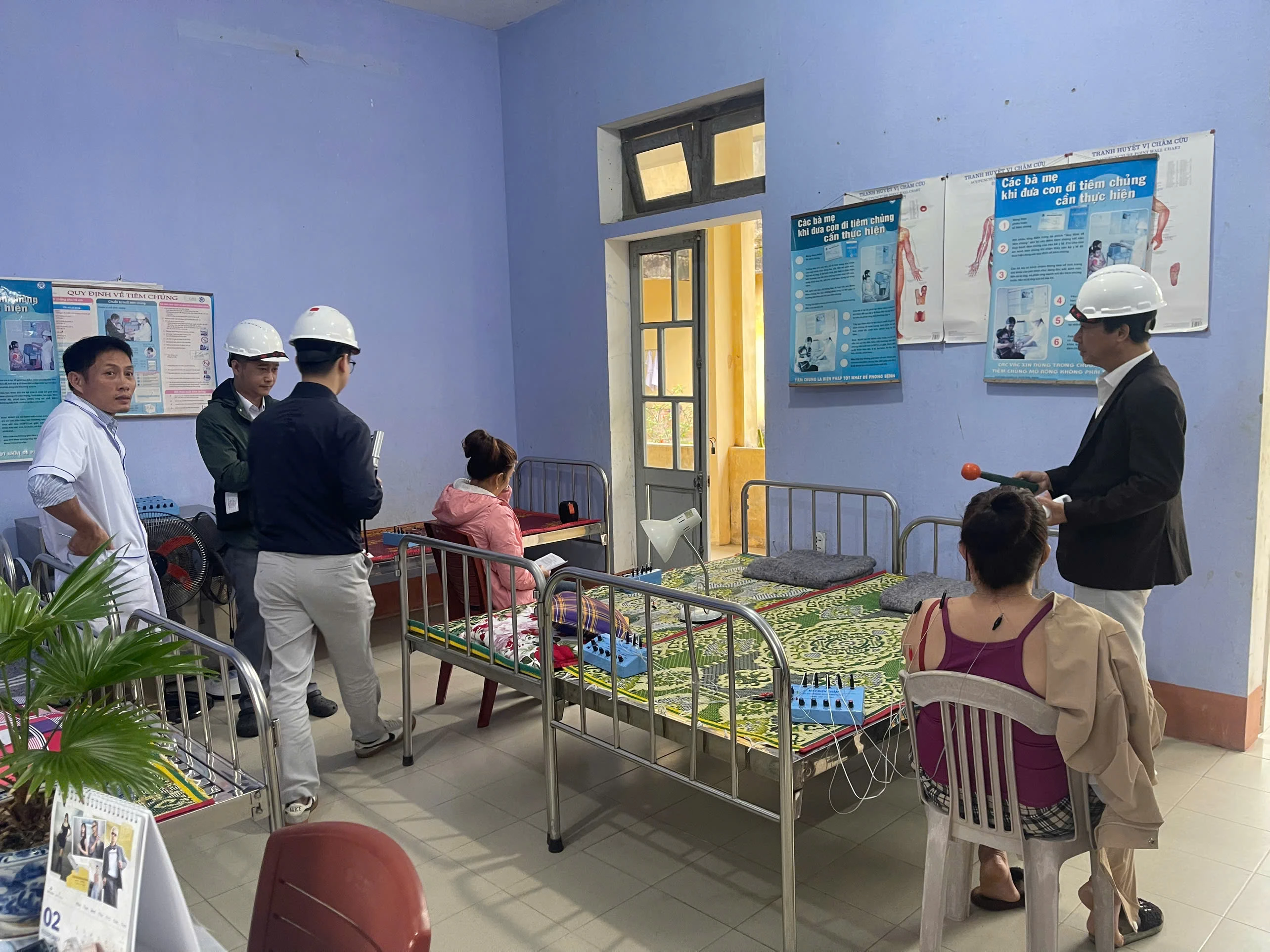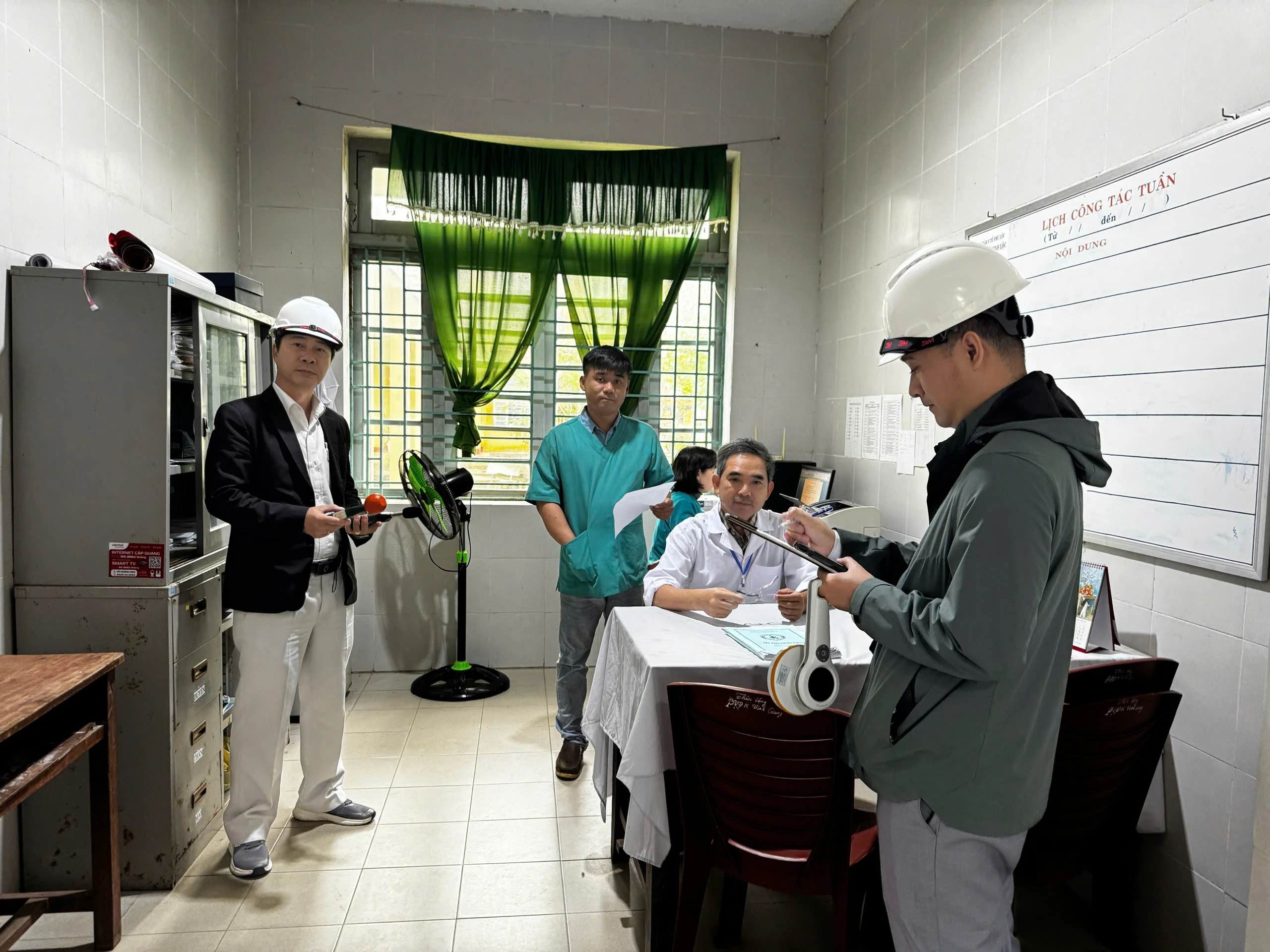 Trong đợt làm việc này, đoàn công tác đã tiến hành khảo sát thực tế điều kiện làm việc tại các khu vực chuyên môn của Trạm Y tế, đồng thời đánh giá yếu tố tiếp xúc vi sinh vật trong môi trường làm việc đối với các vị trí việc làm liên quan đến hoạt động khám chữa bệnh, xét nghiệm, cấp phát thuốc, chăm sóc người bệnh và các hoạt động chuyên môn khác.