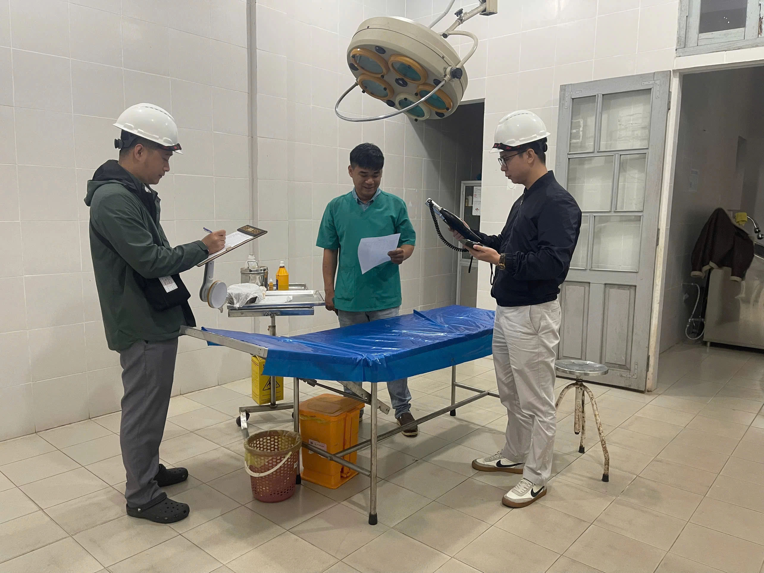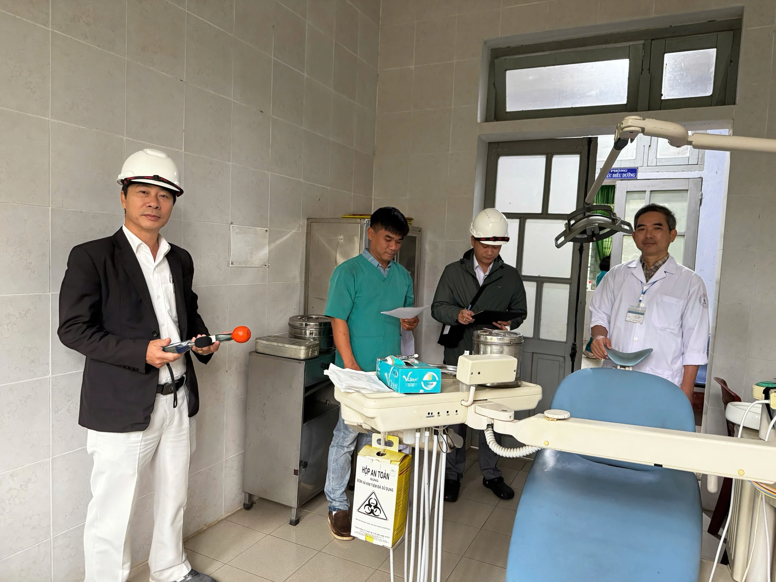 Việc đánh giá được thực hiện trên cơ sở bảng mô tả công việc theo vị trí việc làm của đơn vị nhằm xác định các nhóm công việc có nguy cơ tiếp xúc với yếu tố vi sinh vật trong quá trình thực hiện nhiệm vụ. Bên cạnh đó, đoàn công tác cũng rà soát các điều kiện vệ sinh môi trường lao động, hệ thống thông khí phòng làm việc, quy trình kiểm soát nhiễm khuẩn, công tác quản lý chất thải y tế và việc sử dụng phương tiện bảo hộ cá nhân của nhân viên y tế.