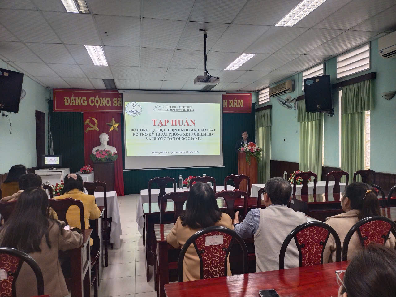 Trong 2 ngày 18- 19 /12/2024, Khoa XN – CĐHA – TDCN của Trung tâm Kiểm soát bệnh tật tỉnh, tổ chức lớp tập huấn về nội dung: Bộ công cụ thực hiện đánh giá, giám sát hỗ trợ kỹ thuật phòng xét nghiệm HIV và hướng dẫn quốc gia HIV cho cán bộ, nhân viên ở 21 phòng xét nghiệm sàng lọc HIV trên địa bàn tỉnh. Đến dự có BS Ths Hồ Xuân Vũ - Phó giám đốc Trung tâm Kiểm soát bệnh tật tỉnh và cán bộ Khoa xét nghiệm của 21 phòng xét nghiệm sàng lọc HIV trên địa bàn tỉnh.
