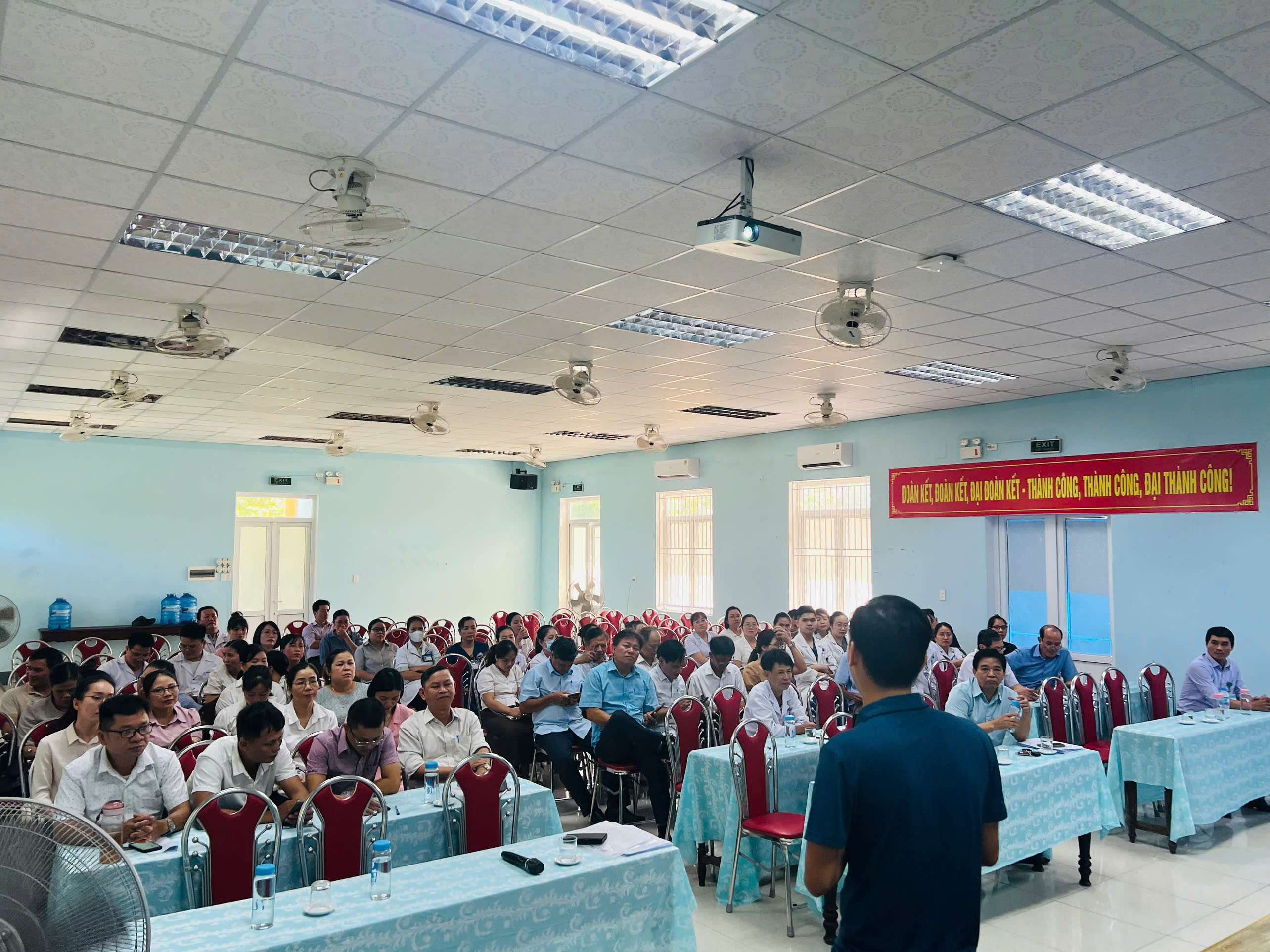 Buổi tập huấn diễn ra tại hội trường các Trung tâm Y tế với sự tham gia của hơn 60 cán bộ y tế công tác lâm sàng, nhân viên hành chính, trưởng/phó khoa phòng, và đại diện các đơn vị có liên quan trên địa bàn.