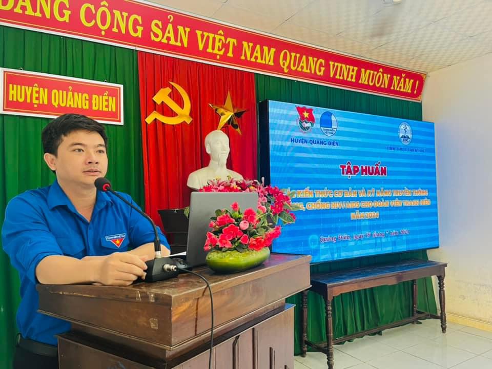Nhằm nâng cao kiến thức và năng lực truyền thông cho Đoàn thanh niên trong công tác phòng chống HIV/AIDS, từng bước ngăn chặn đẩy lùi tệ nạn ma tuý, mại dâm và đại dịch HIV/AIDS trong lứa tuổi thanh niên, trong tháng 7/2024, Trung tâm Kiểm soát bệnh tật tỉnh phối hợp với huyện đoàn Quảng Điền tổ chức lớp tập huấn kiến thức cơ bản và kỹ năng truyền thông phòng, chống HIV/AIDS các các cán bộ Đoàn huyện và cán bộ đoàn xã/phường tại huyện Quảng Điền.
