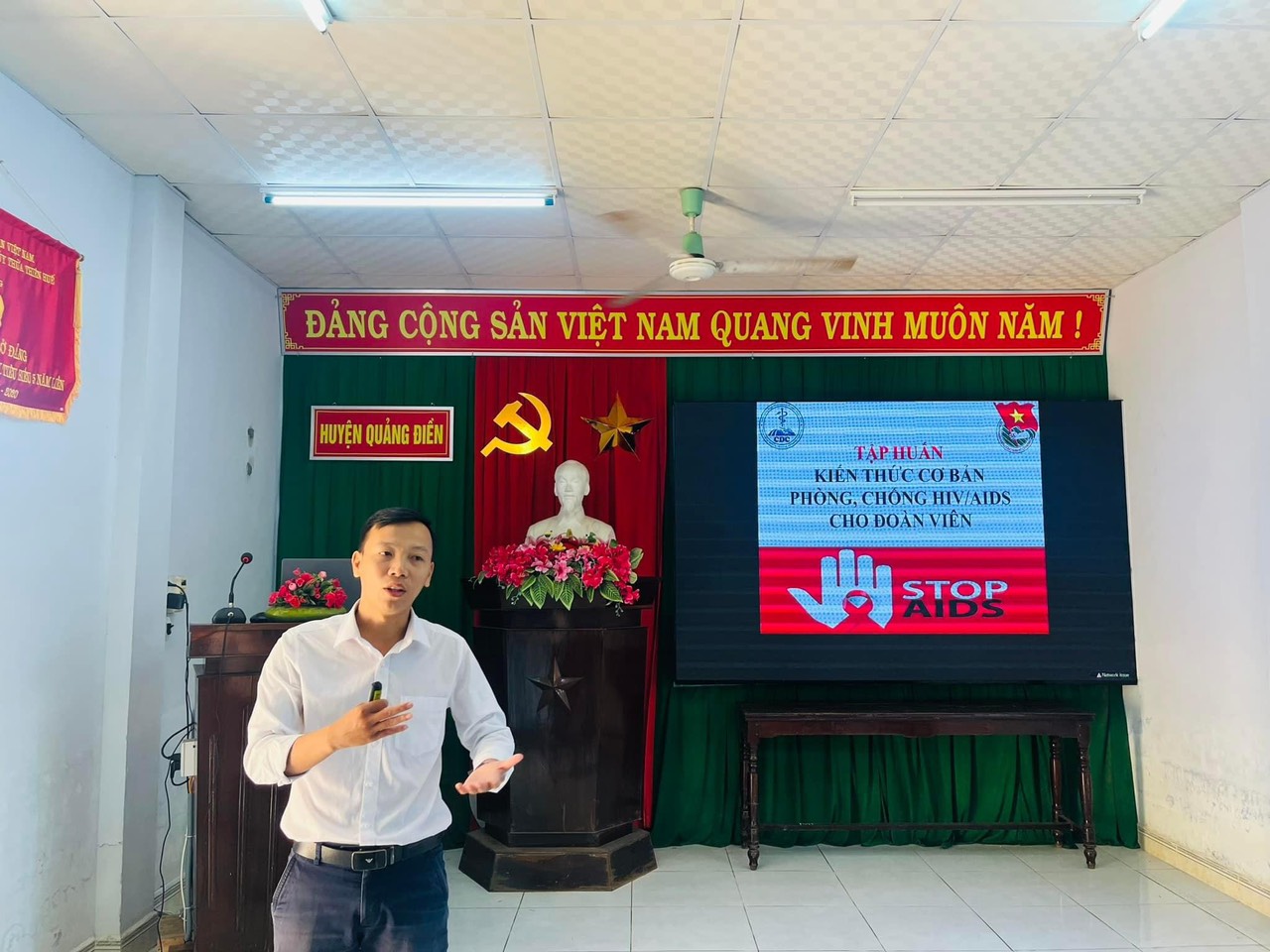 Để tăng cường lực lượng đội ngũ nòng cốt trong công tác truyền thông phòng, chống HIV/AIDS, Trung Tâm Kiểm soát bệnh tật đã phối hợp với huyện Đoàn Quảng Điền tổ chức tập huấn cho cán bộ Đoàn huyện, cán bộ Đoàn các xã/phường trực thuộc huyện Quảng Điền. Nội dung tập huấn chủ yếu tập trung vào tình hình dịch HIV/AIDS trên toàn thế giới, Việt Nam, Thừa Thiên Huế, các kiến thức cơ bản về HIV: đường lây truyền, biểu hiện lâm sàng, các cách dự phòng lây nhiễm HIV; Giới thiệu các dịch vụ xét nghiệm trên địa bàn TT Huế, dịch vụ tự xét nghiệm, các dịch vụ dự phòng lây nhiễm, điều trị dự phòng trước phơi nhiễm (PrEP), và đồng thời tập huấn kĩ năng tổ chức truyền thông phòng, chống HIV/AIDS đến các cán bộ Đoàn.