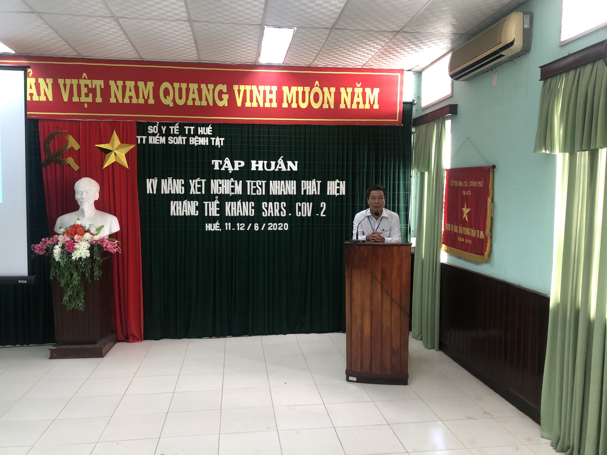 BS CKI. Hoàng Văn Đức, Giám đốc Trung tâm kiểm soát bệnh tật tỉnh Thừa Thiên Huế đã tham dự khai mạc và chỉ đạo lớp tập huấn. Đồng chí nhấn mạnh tầm quan trọng của xét nghiệm trong công tác phòng, chống dịch Covid-19. Việc đảm bảo ATSH trong công tác lấy mẫu, vận chuyển mẫu, xét nghiệm cũng như xử lý sau xét nghiệm cần được tuân thủ nghiêm ngặt và đúng quy trình.