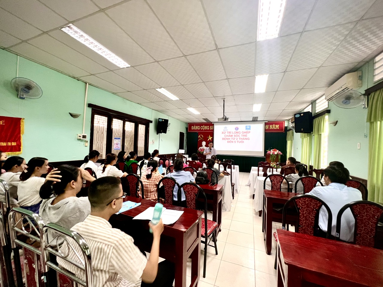 Thực hiện công tác nâng cao năng lực cho cán bộ y tế hoạt động trong lĩnh vực chăm sóc sức khỏe sinh sản, góp phần giảm tỷ suất tử vong trẻ em < 5 tuổi, Ngày 24/8/2023, Trung tâm Kiểm soát bệnh tật tỉnh tổ chức thực hiện tập huấn về Lồng ghép chăm sóc trẻ bệnh cho cán bộ y tế tuyến cơ sở nhằm phát hiện, điều trị sớm và chuyển tuyến kịp thời trẻ bệnh.