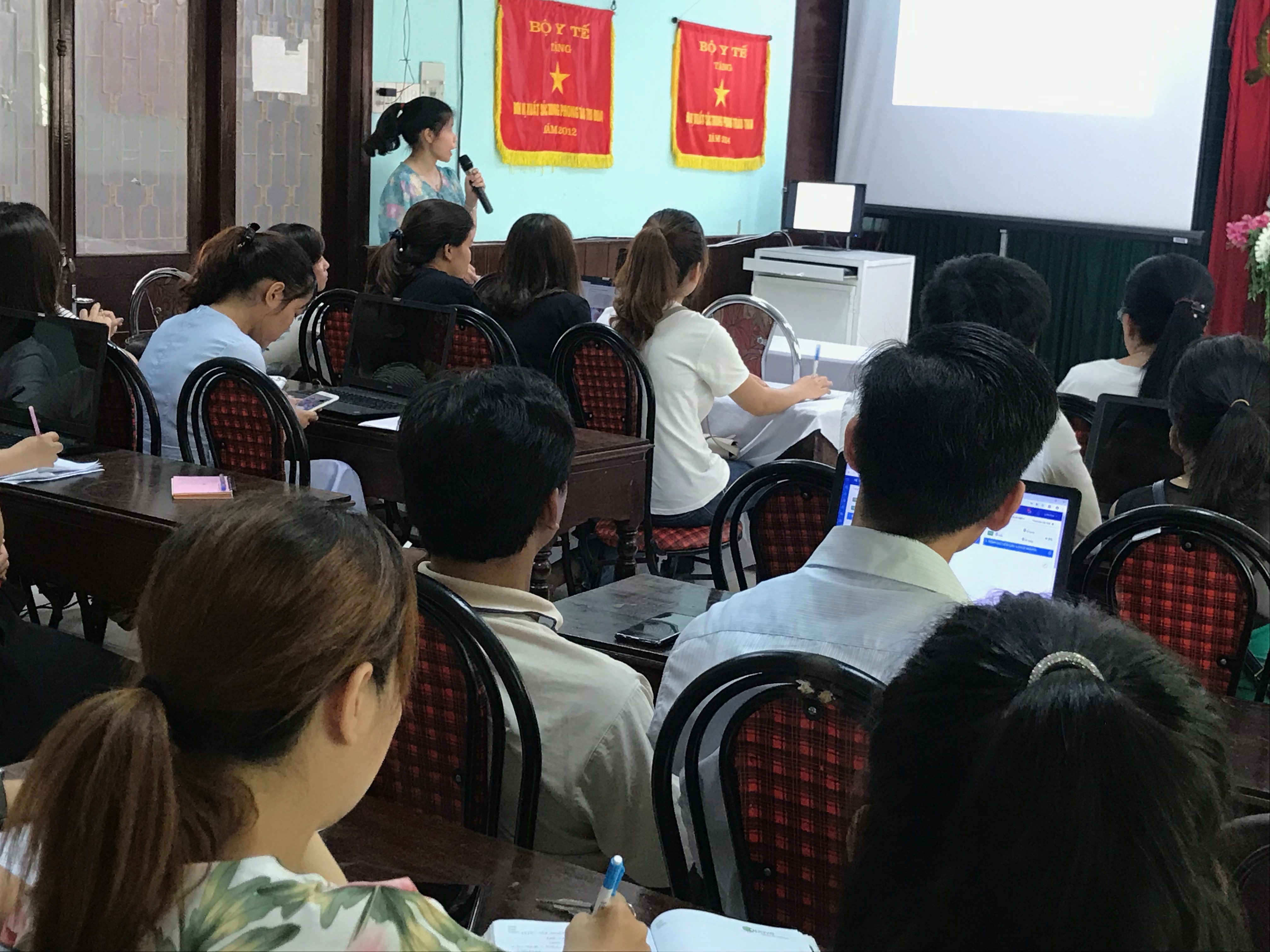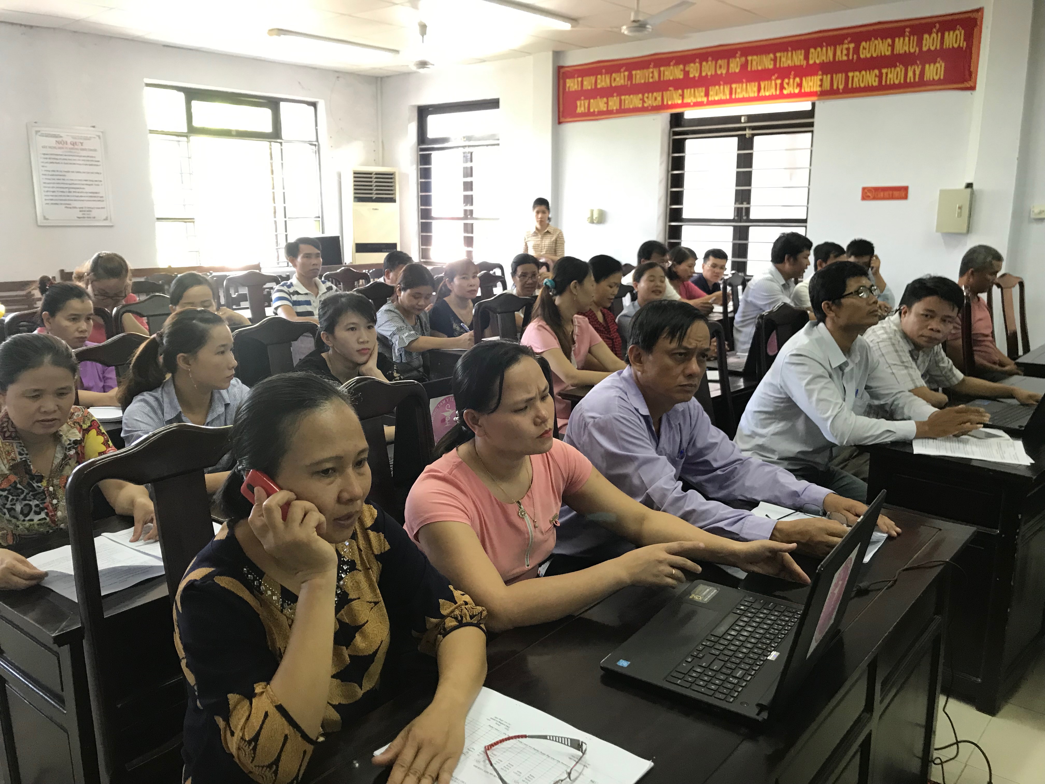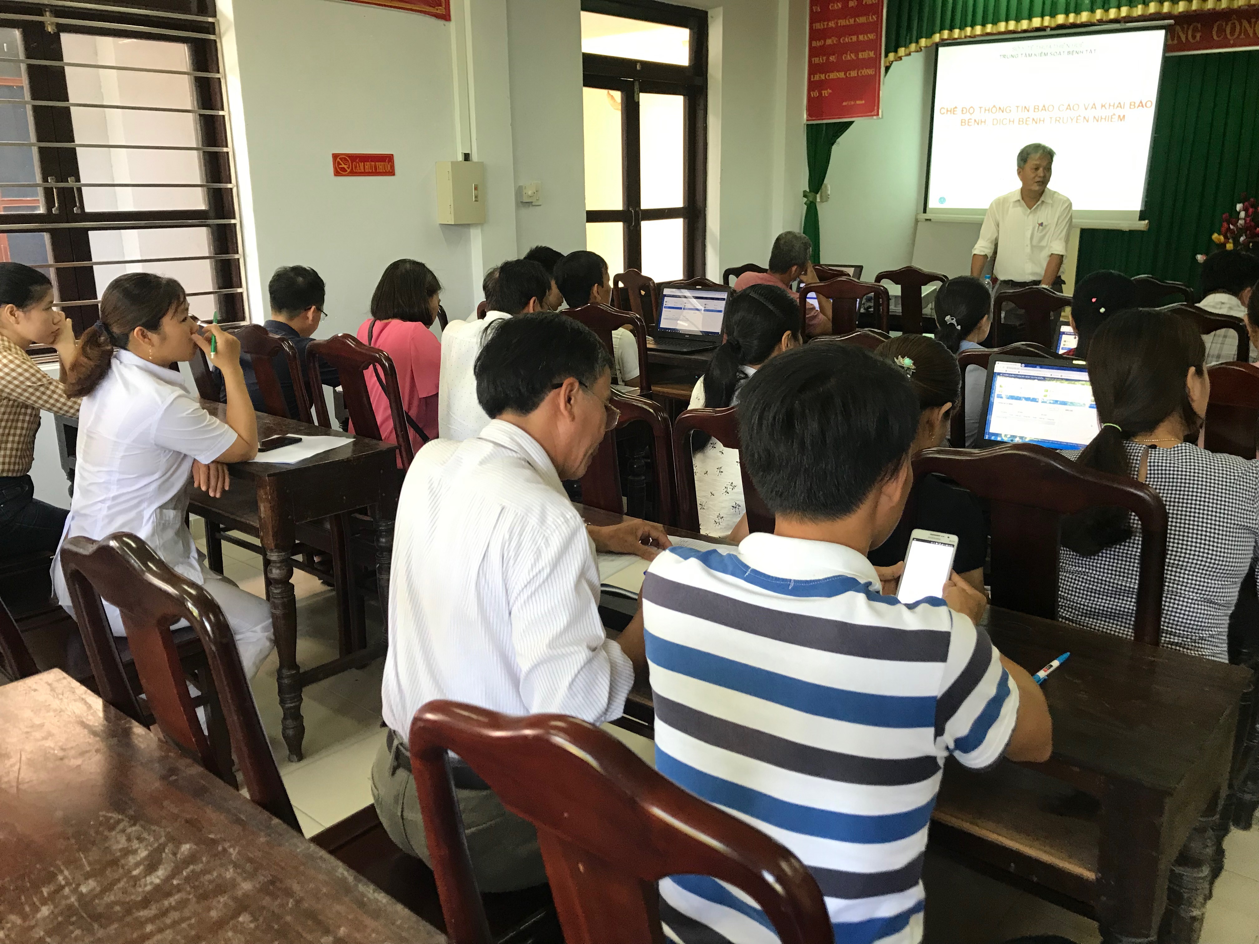 Tập huấn phần mềm báo cáo bệnh truyền nhiễm, phần mềm quản lý thông tin tiêm chủng và triển khai tiêm vắc xin SII tại các huyện điểm năm 2019 tổ chức tại Trung tâm Kiểm soát bệnh tật tỉnh.