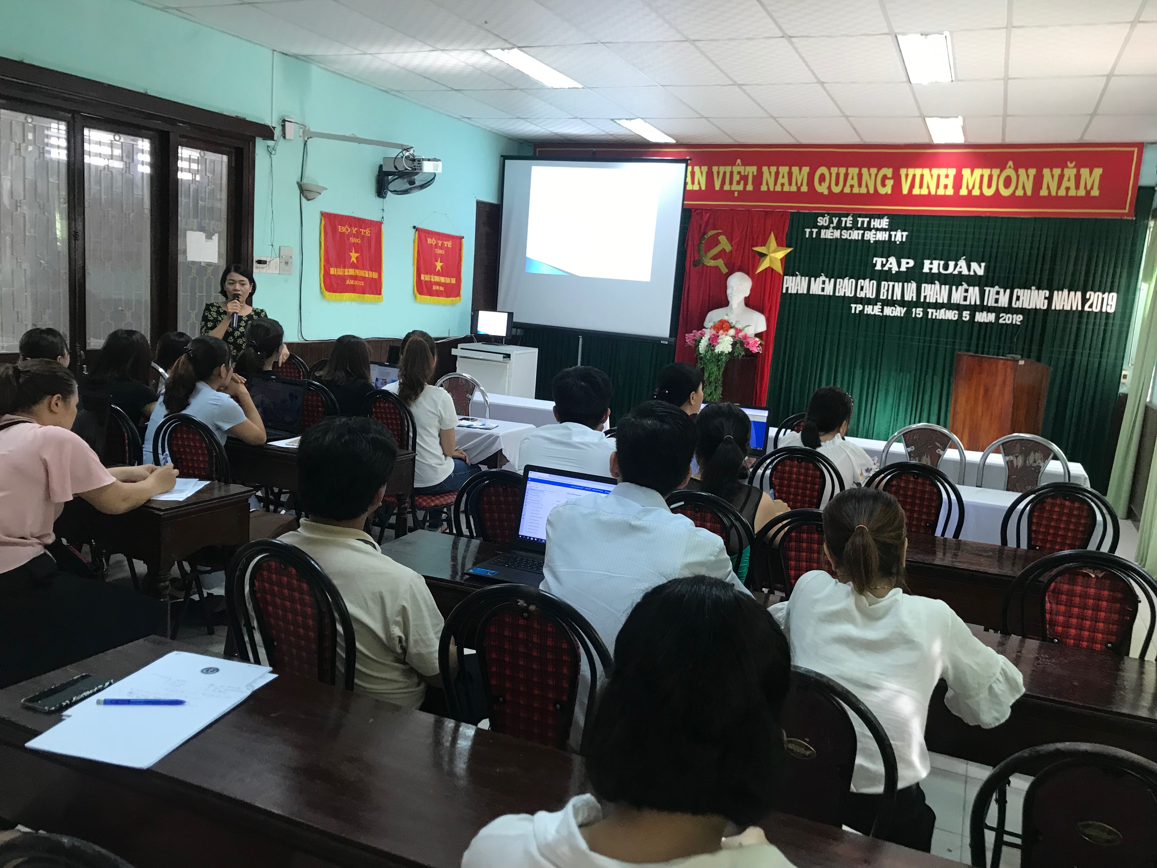 Ngày 15/05/2019, Theo chỉ đạo của chương trình TCMR Quốc gia và Sở Y tế Trung tâm Kiểm soát bệnh tật tỉnh phối hợp với Trung tâm Y tế thành phố Huế tổ chức lớp Tập huấn phần mềm báo cáo bệnh truyền nhiễm theo Thông tư 54/2015/TT-BYT và phần mềm quản lý, sử dụng hệ thống quản lý thông tin tiêm chủng đồng thời triển tập huấn về khai tiêm vắc xin SII tại các huyện cho cán bộ tuyến huyện, xã, phường, thị trấn.