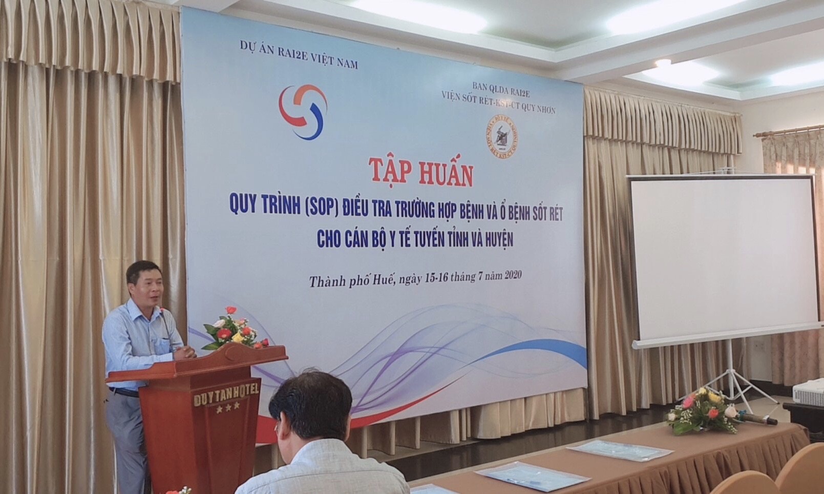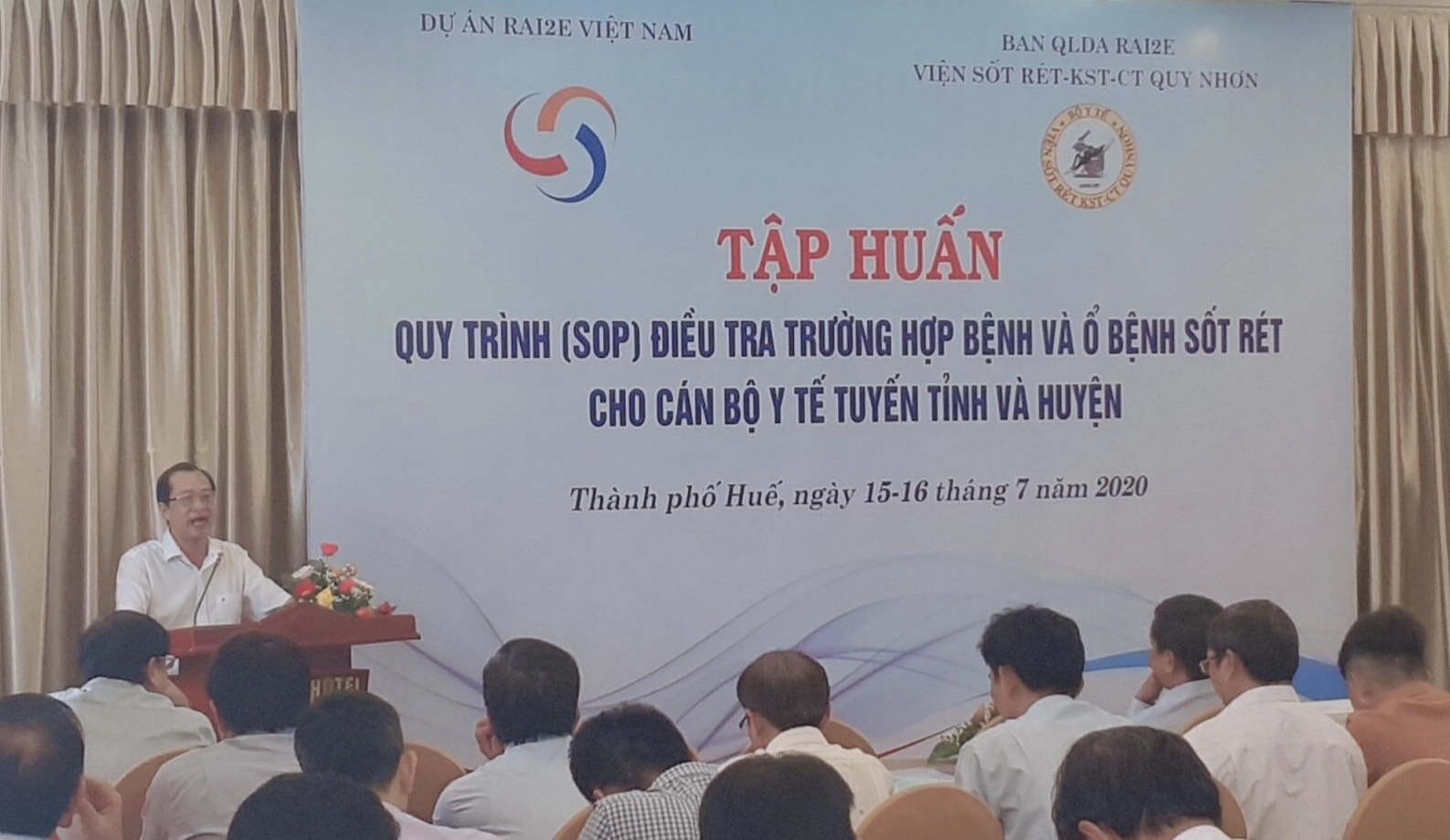 Trong khuôn khổ hoạt động năm 2020 của Dự án Sáng kiến khu vực ngăn chặn và loại trừ sốt rét kháng thuốc Artemisinin giai đoạn 2018-2020 (RAI2E), vừa qua Ban quản lý DA RAI2E Viện SR-KST-CT Quy Nhơn đã tổ chức lớp tập huấn về “Quy trình (SOP) điều tra trường hợp bệnh, điều tra ổ bệnh sốt rét” cho cán bộ y tếlàm công tác phòng chống - loại trừ sốt rét tuyến tỉnh và huyện dự án. Đợt tập huấn được tổ chức tại tỉnh Thừa Thiên Huế, diễn ra 2 ngày 15 - 16/7/2020 với sự tham dự của 86 học viên của 5 tỉnh với 27 huyện Dự án các tỉnh Quảng Bình, Quảng Trị, Thừa Thiên Huế, Quảng Nam, Quảng Ngãi.