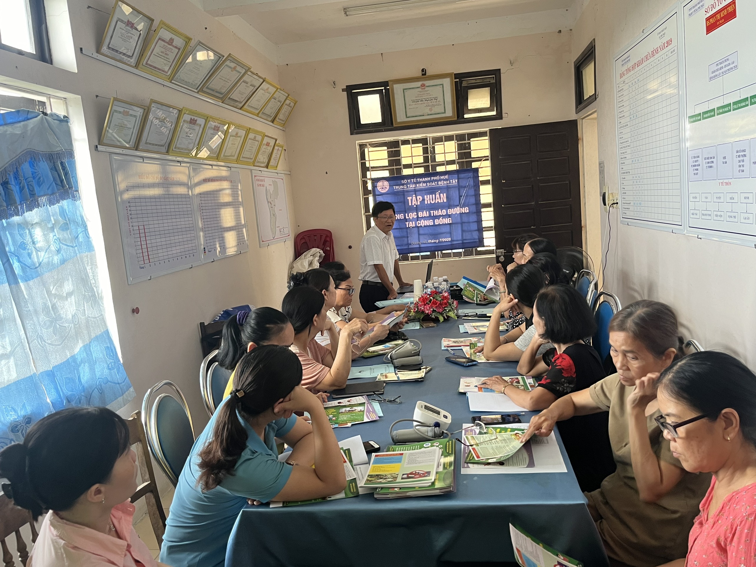 Căn cứ kế hoạch năm 2025, từ ngày 8-9/7/2025, Trung tâm Kiểm soát bệnh tật thành phố Huế đã tổ chức tập huấn để chuẩn bị cho công tác điều tra yếu tố nguy cơ và sàng lọc phát hiện sớm bệnh Đái tháo đường cho cán bộ y tế và cộng tác viên tại các xã Phong Thái, Phong Phú, Dương Nỗ, nội dung tập huấn bao gồm: