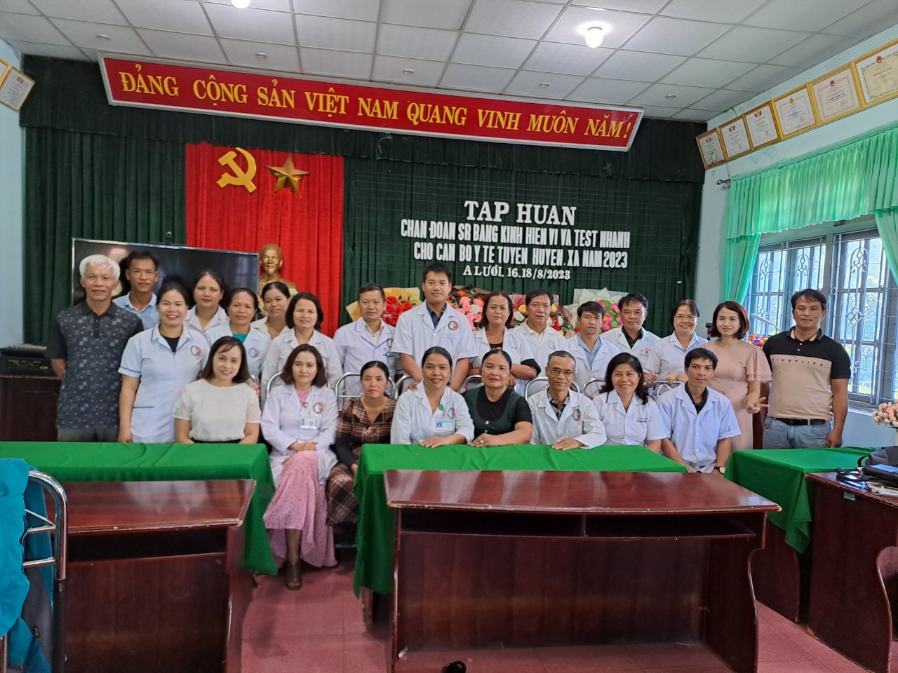 Trong 03 ngày từ 16/8/2023 – 18/8/2023 tại TTYT huyện A Lưới, Khoa XN- CĐHA-TDCN , Trung tâm KSBT đã tiến hành tổ chức lớp tập huấn xét nghiệm ký sinh trùng sốt rét và test chẩn đoán nhanh cho 22 cán bộ phụ trách điểm kính hiển vi tuyến huyện, xã thuộc huyện A Lưới.