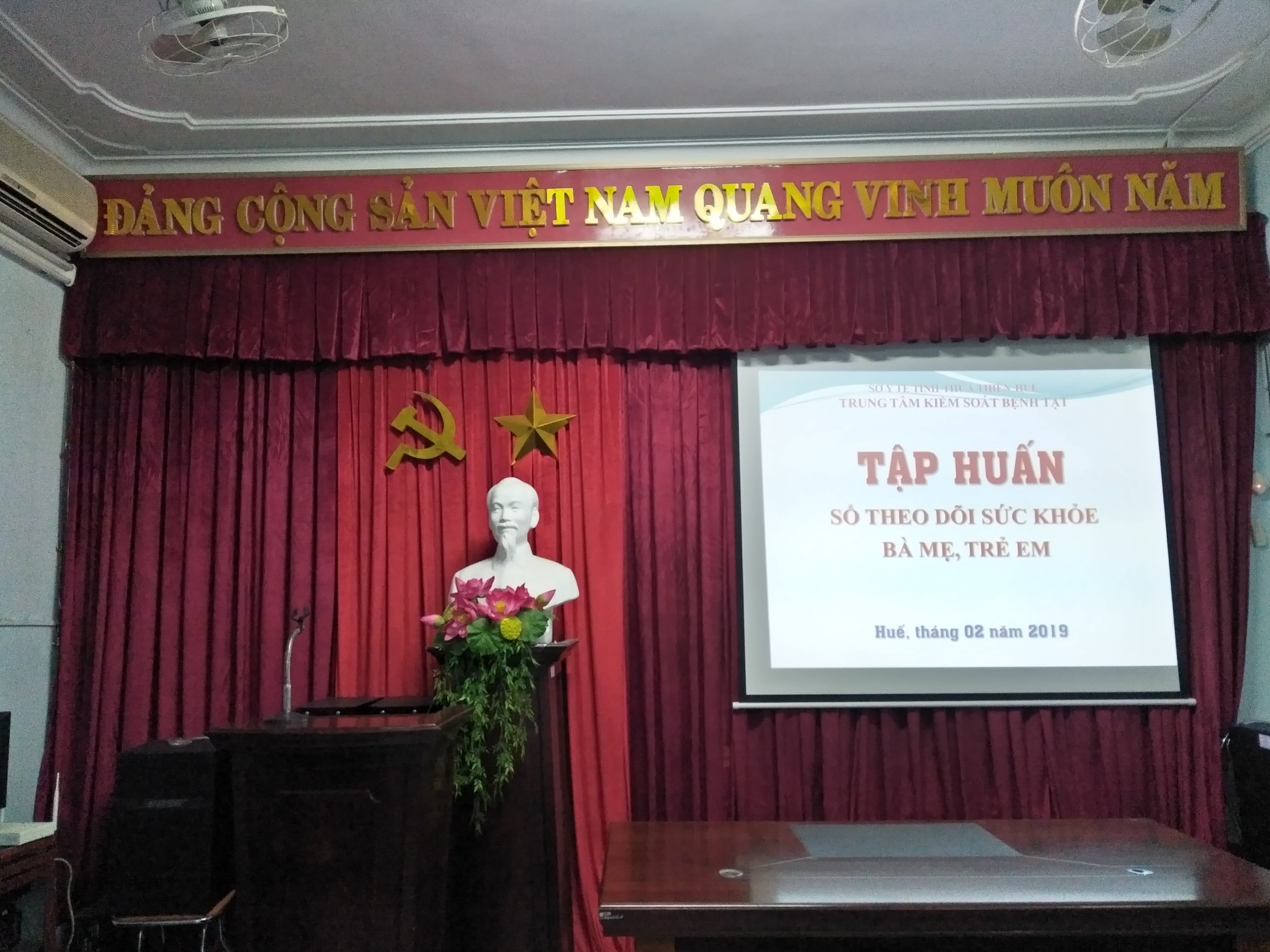 Thực hiện kế hoạch của trung tâm Kiểm Soát Bệnh Tật tỉnh Thừa Thiên Huế về công tác Chăm sóc SKSS tại tỉnh Thừa Thiên Huế năm 2019. Ngày 25/02 đến ngày 01/03/2019, tại hội trường trung tâm KSBT tỉnh, 30 Lý Thường Kiệt, thành phố Huế đã tiếp tục tổ chức thực hiện tập huấn chuyên môn về nội dung sử dụng Sổ theo dõi sức khỏe bà mẹ trẻ em (TDSKBMTE) cho 50 cán bộ là bác sĩ, nữ hộ sinh của các tuyến trên địa bàn tỉnh Thừa Thiên Huế.