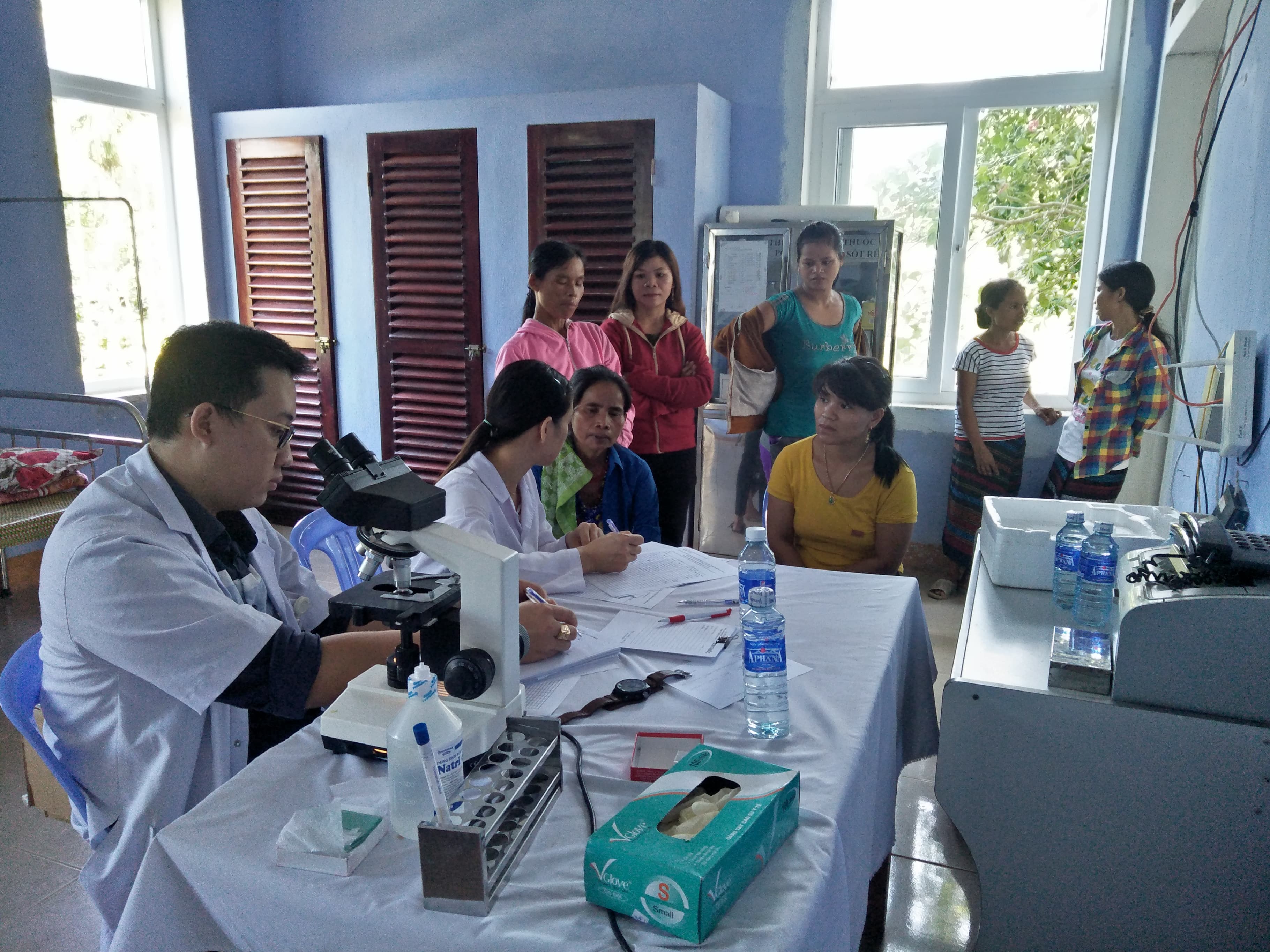 Đoàn đi khám gồm có BS CKI Lê Văn Lượng- Trưởng khoa SKSS, các Cử nhân Hộ sinh của Khoa và Cán bộ Khoa XN-CĐHA-TDCN. Trong thời gian đó, Đoàn đã thực hiện khám phụ khoa cho 3102 phụ nữ trong độ tuổi sinh đẻ, tiền mãn kinh, mãn kinh, thực hiện lấy mẫu soi tươi cho 1556 phụ nữ, thực hiện lấy mẫu sàng lọc ung thư sinh dục 1523 trường hợp có nghi ngờ và tư vấn điều trị viêm nhiễm 1500 phụ nữ.