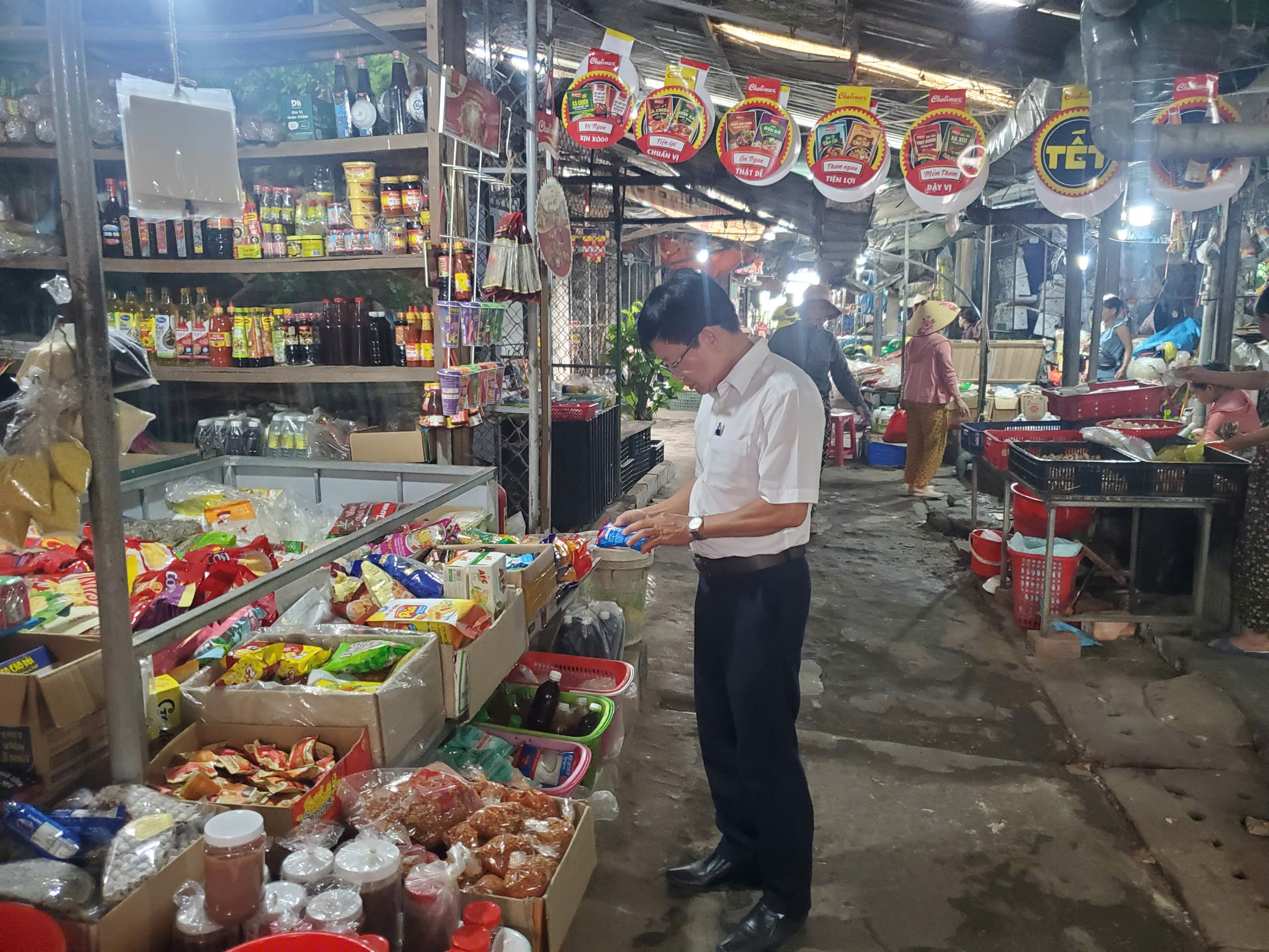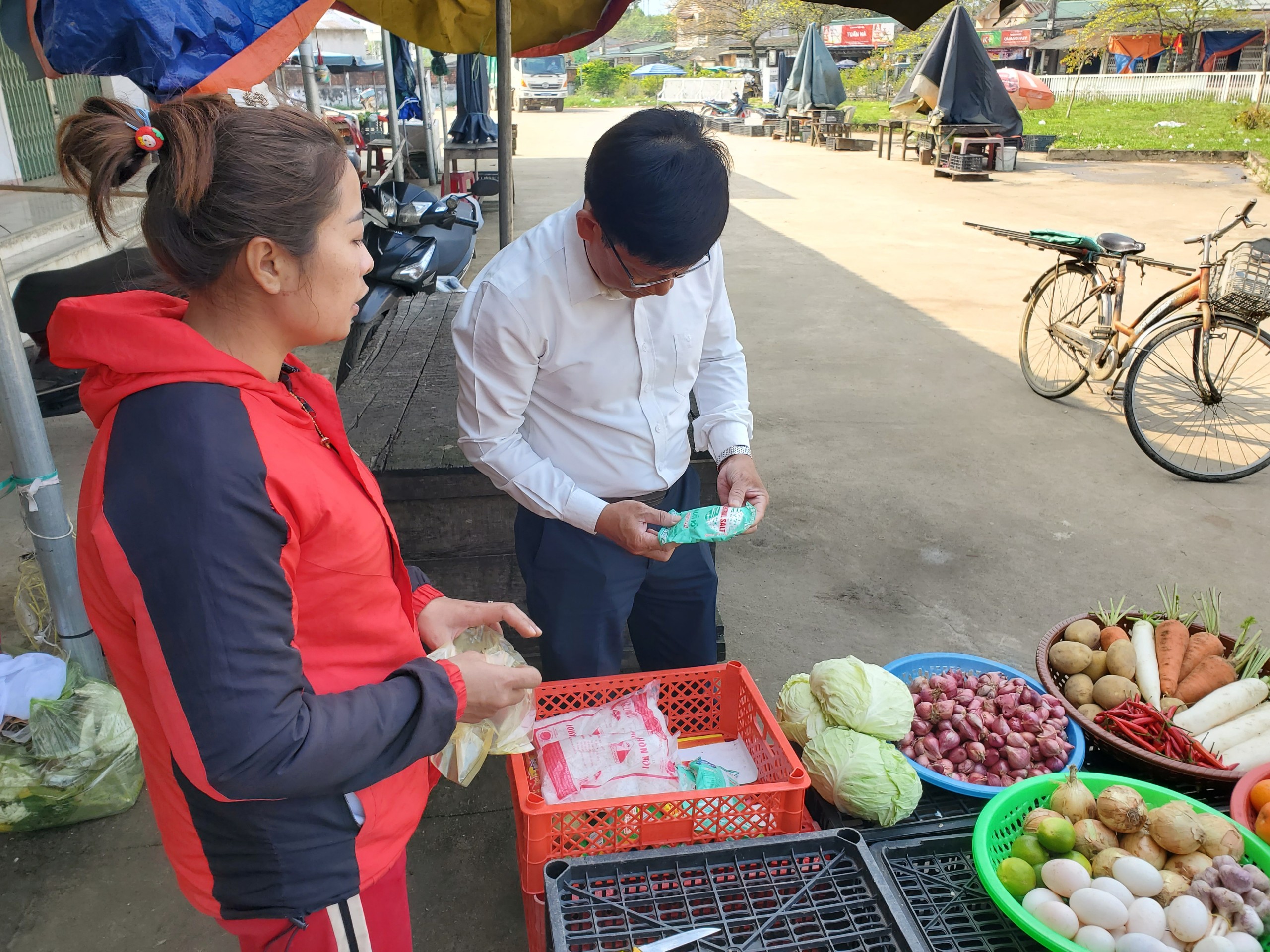 Cán bộ khoa PCBKLN-DD kiểm tra mẫu muối tại chợ, cửa hàng kinh doanh