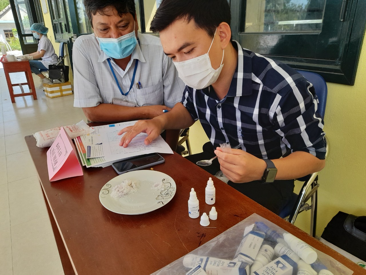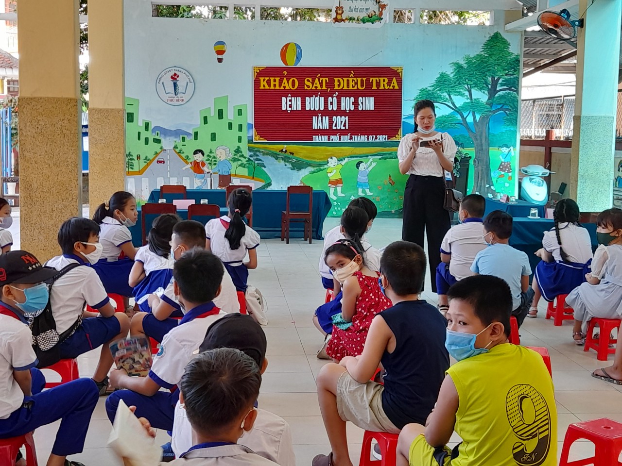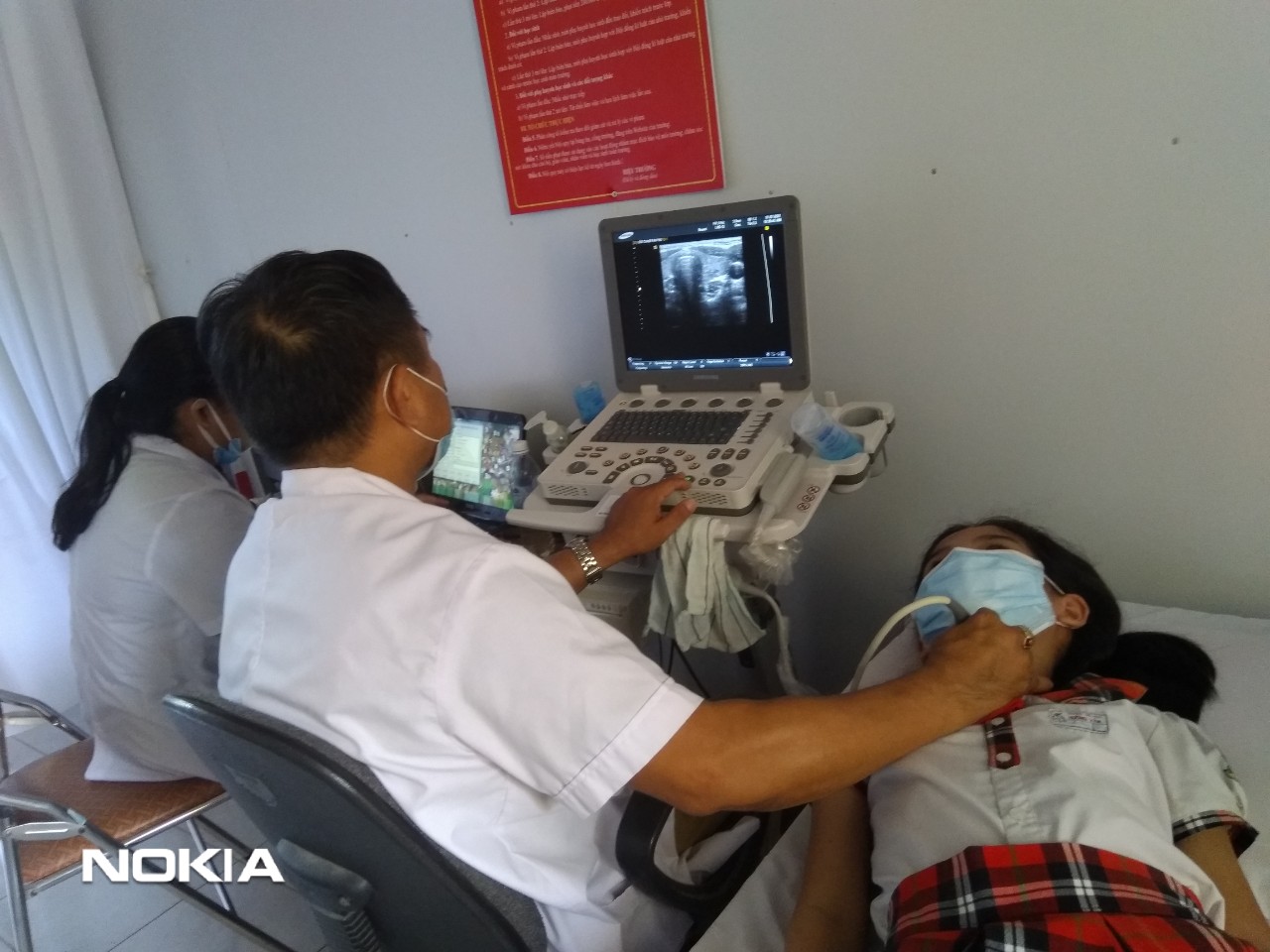 Thực hiện kế hoạch chương trình phòng chống các rối loạn thiếu iode năm 2021 được Sở y tế phê duyệt. Để điều tra, đánh giá tỉ lệ rối loạn thiếu iode ở học sinh từ 8 đến10 tuổi trên toàn tỉnh, Trung tâm Kiểm soát bệnh tật tỉnh phối hợp với Trung tâm Y tế, Phòng Giáo dục của 9 huyện/thị/thành phố ; Trạm y tế và trường Tiểu học của 14 xã/phường/thị trấn để triển khai khám bướu cổ cho các em học sinh.
