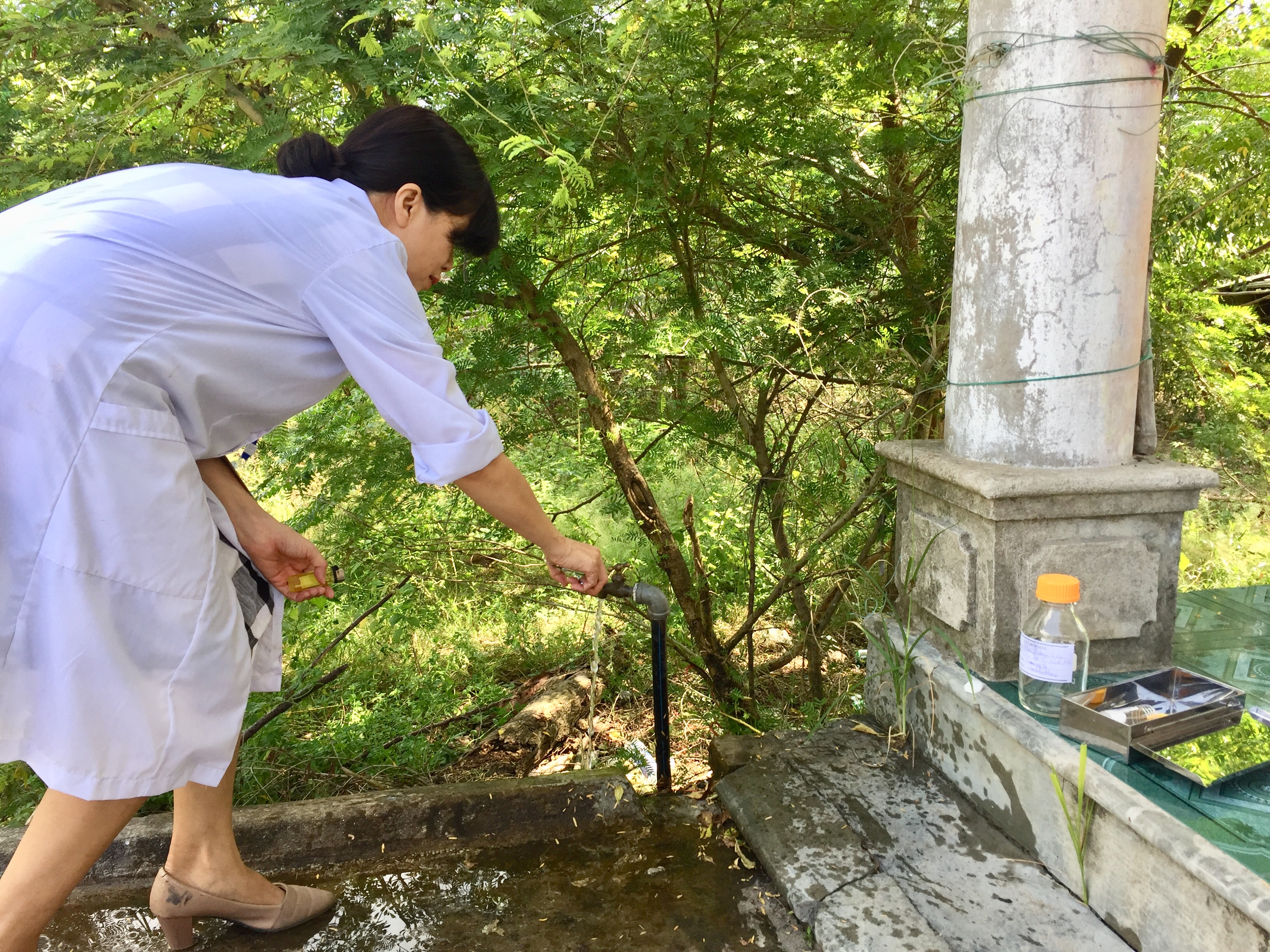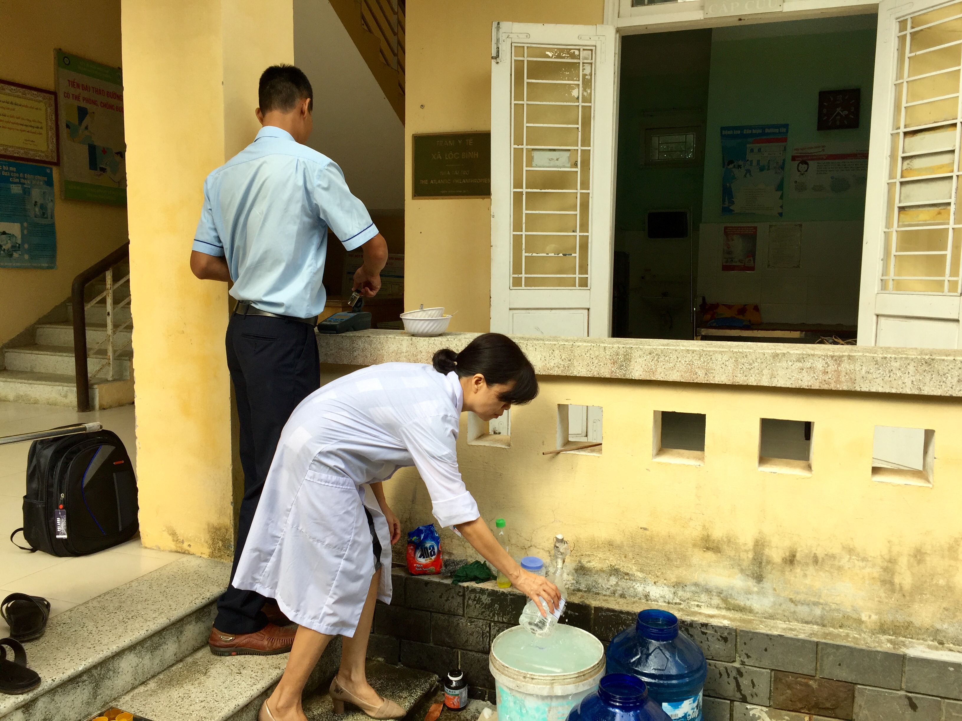 Trung tâm KSBT kiểm tra chất lượng nước tại trạm y tế Lộc Bình, huyện Phú Lộc.