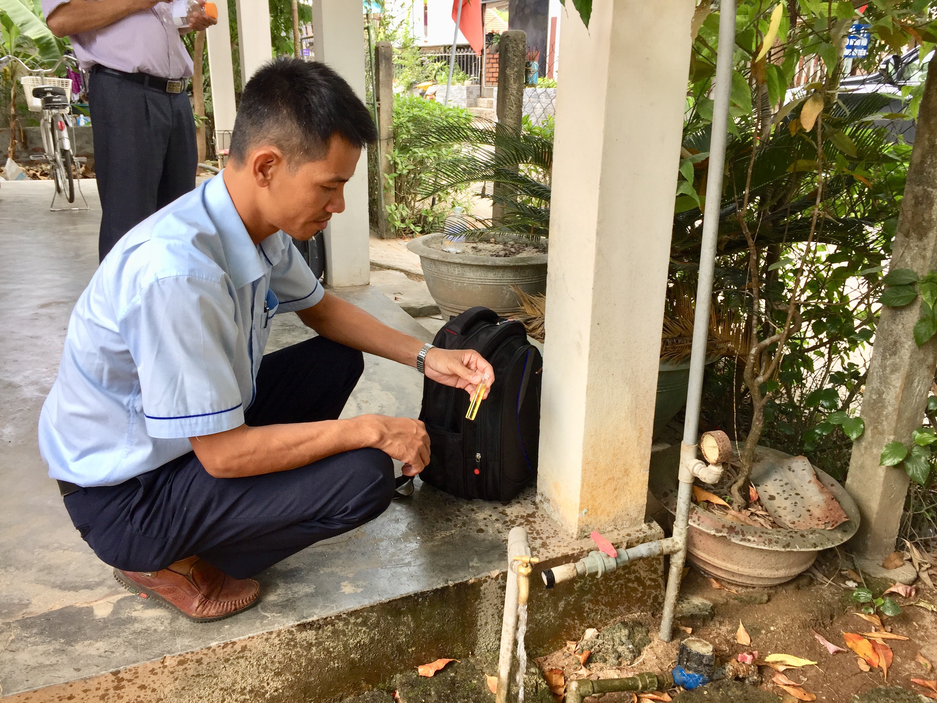 Kiểm tra chất lượng nước tại hộ gia đình ông Mai Dương L., thôn Hiền Hoà 1, Vinh Hiền, Phú Lộc