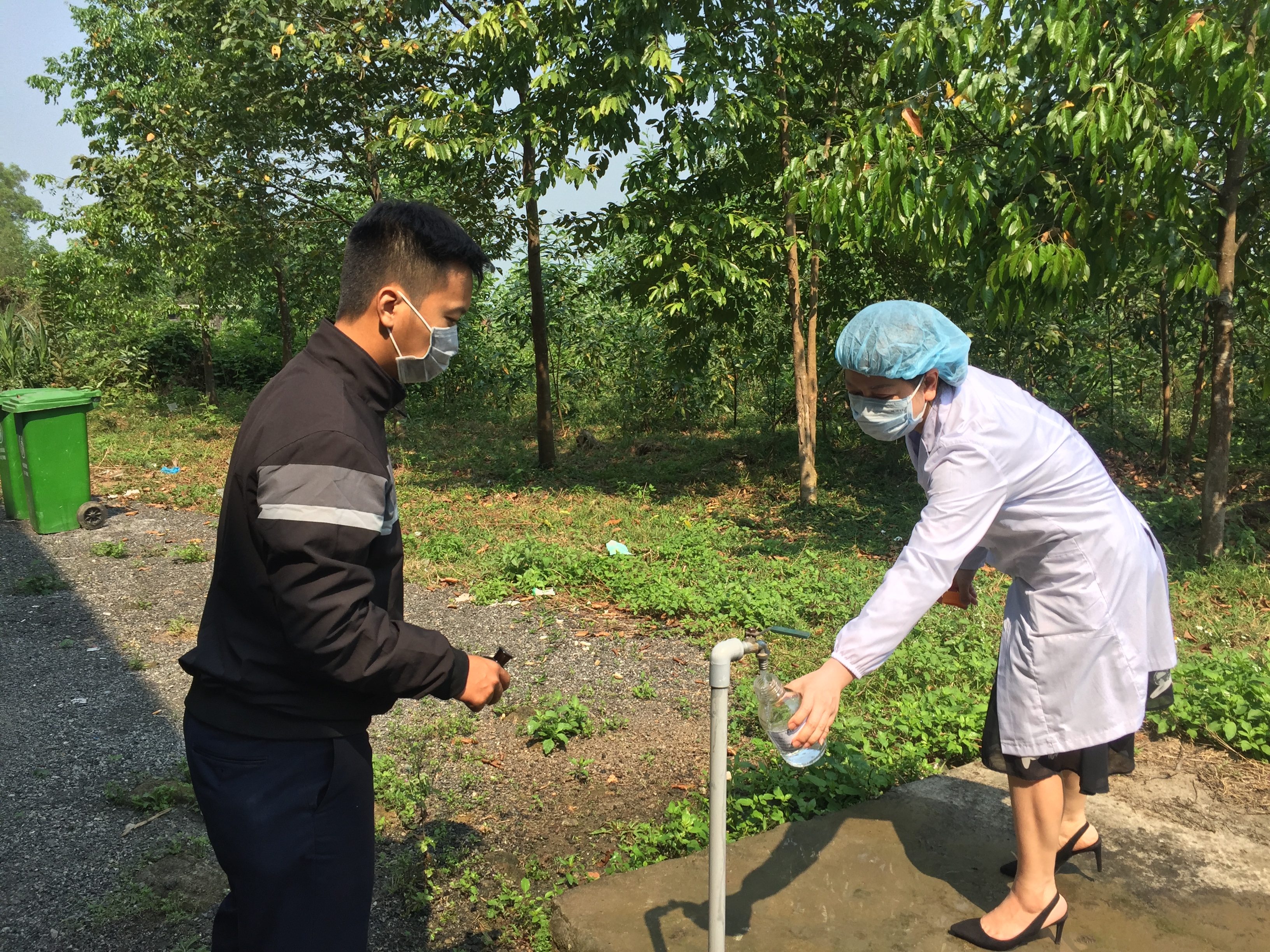 Lấy mẫu nước xét nghiệm tại vòi nước Trạm Y tế Lộc An