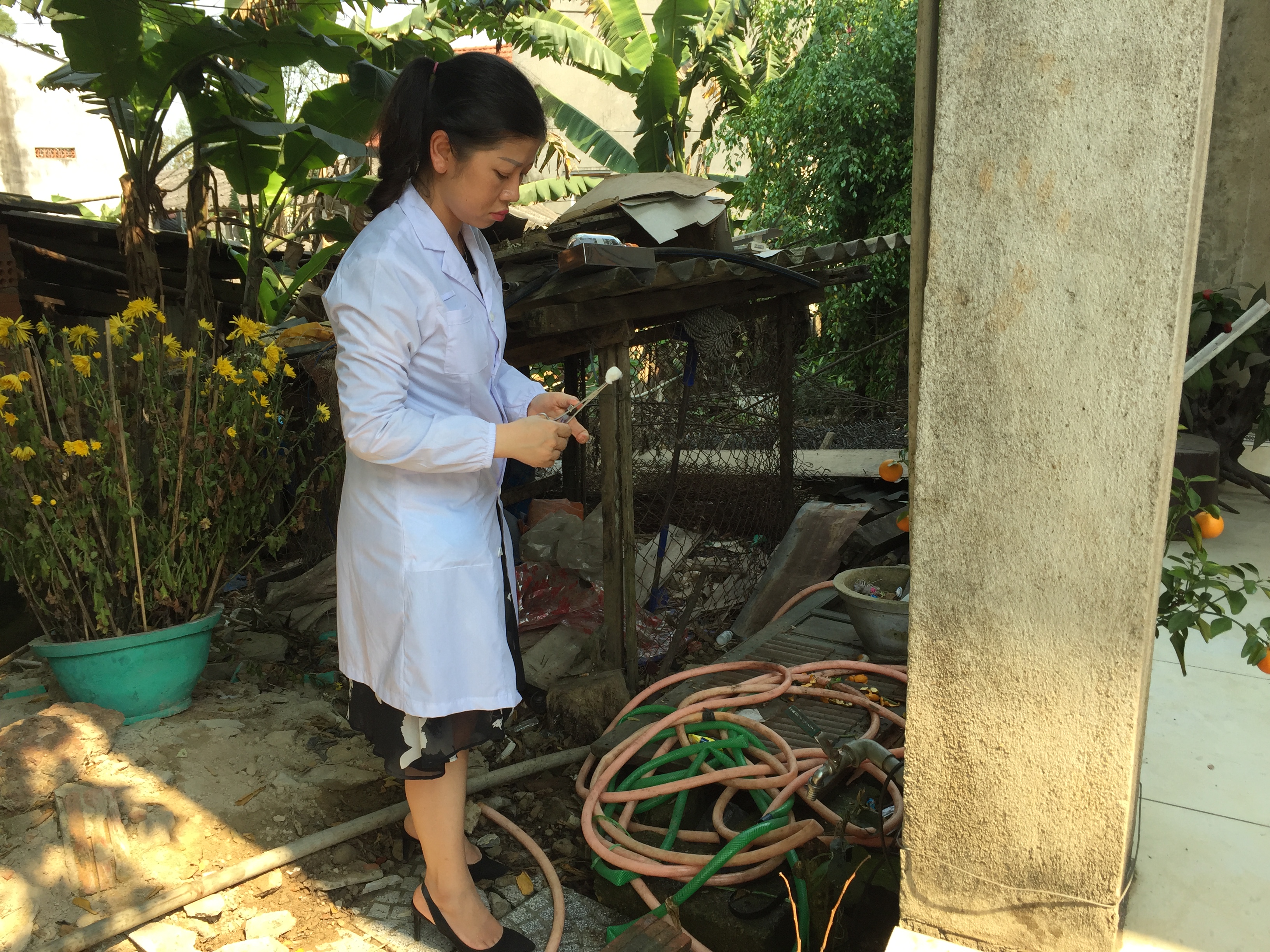 Trung tâm Kiểm soát bệnh tật tỉnh kiểm tra vệ sinh, giám sát chất lượng nước ăn uống và sinh hoạt tại huyện Phú Lộc.