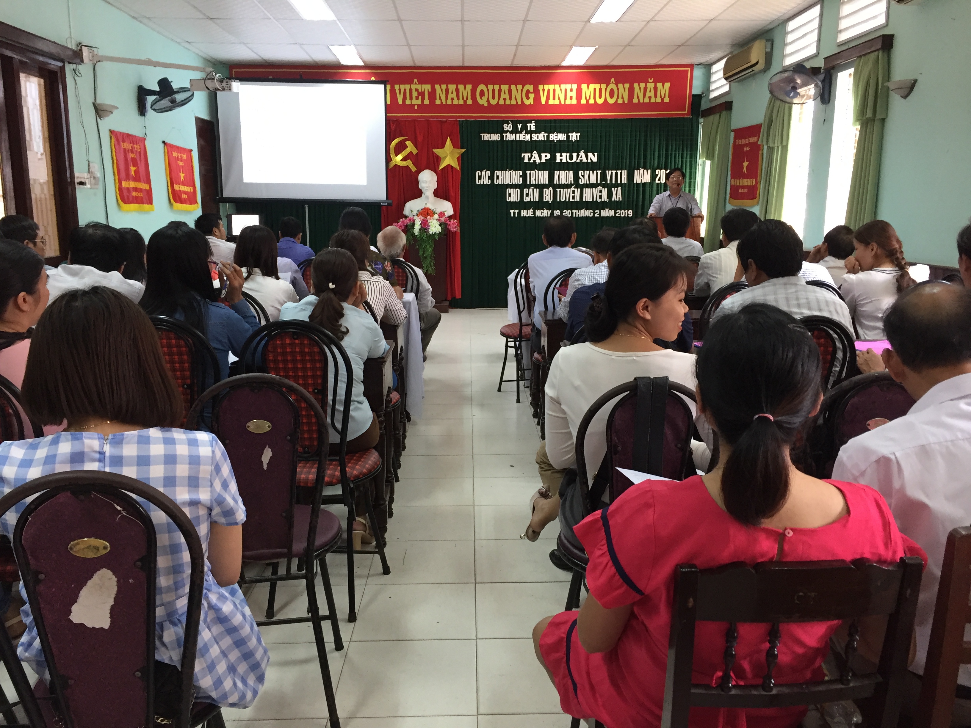 Thực hiện kế hoạch hoạt động các chương trình năm 2019, Chiều 19/2/2019, tại Hội trường Trung tâm Kiểm soát bệnh tật Tỉnh đã tổ chức tập huấn cho cán bộ chuyên trách tuyến huyện và xã của thị xã Hương Trà, thị xã Hương Thuỷ và huyện Phú Vang.