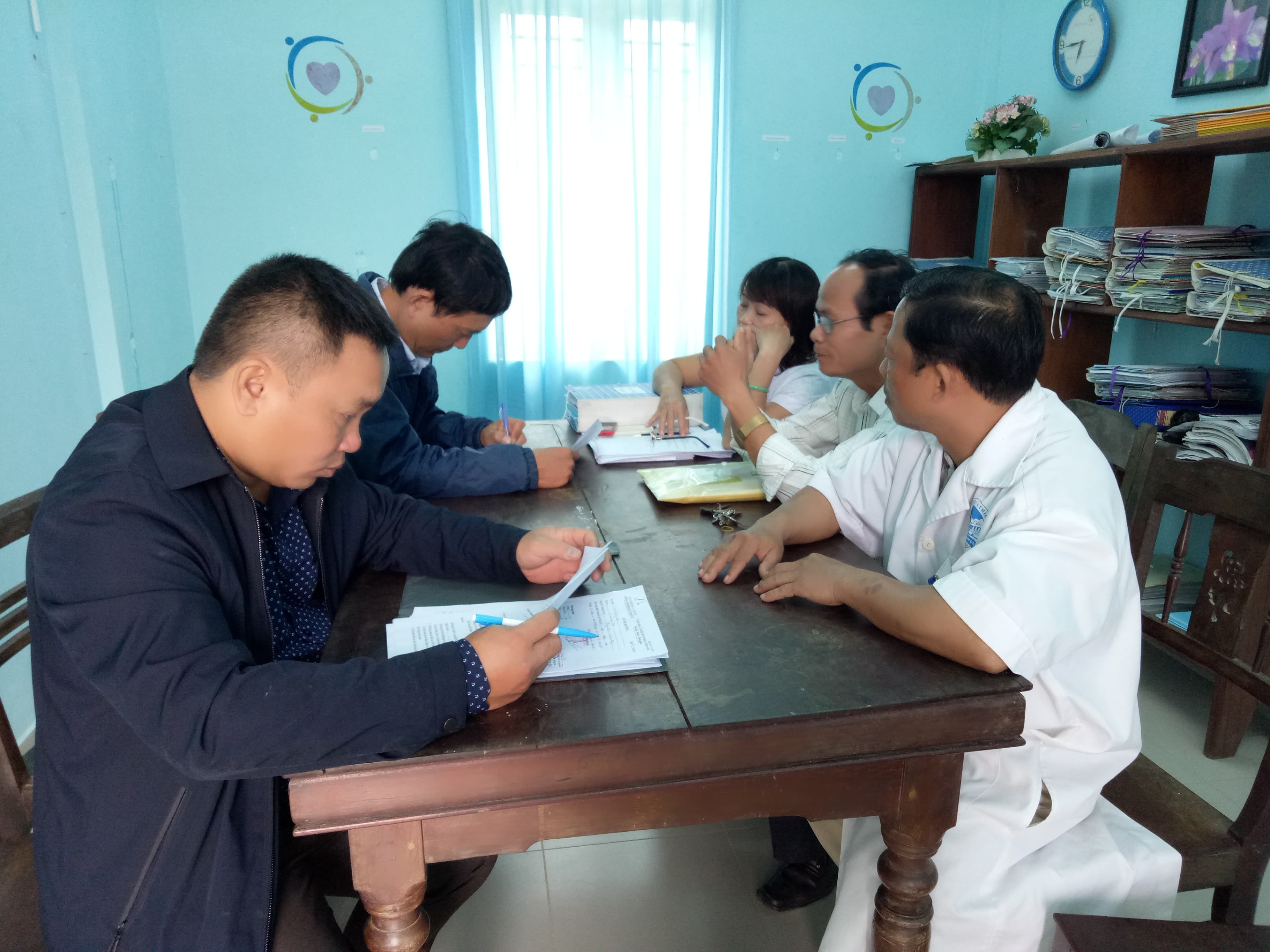 Đoàn kiểm tra làm việc tại TYT
