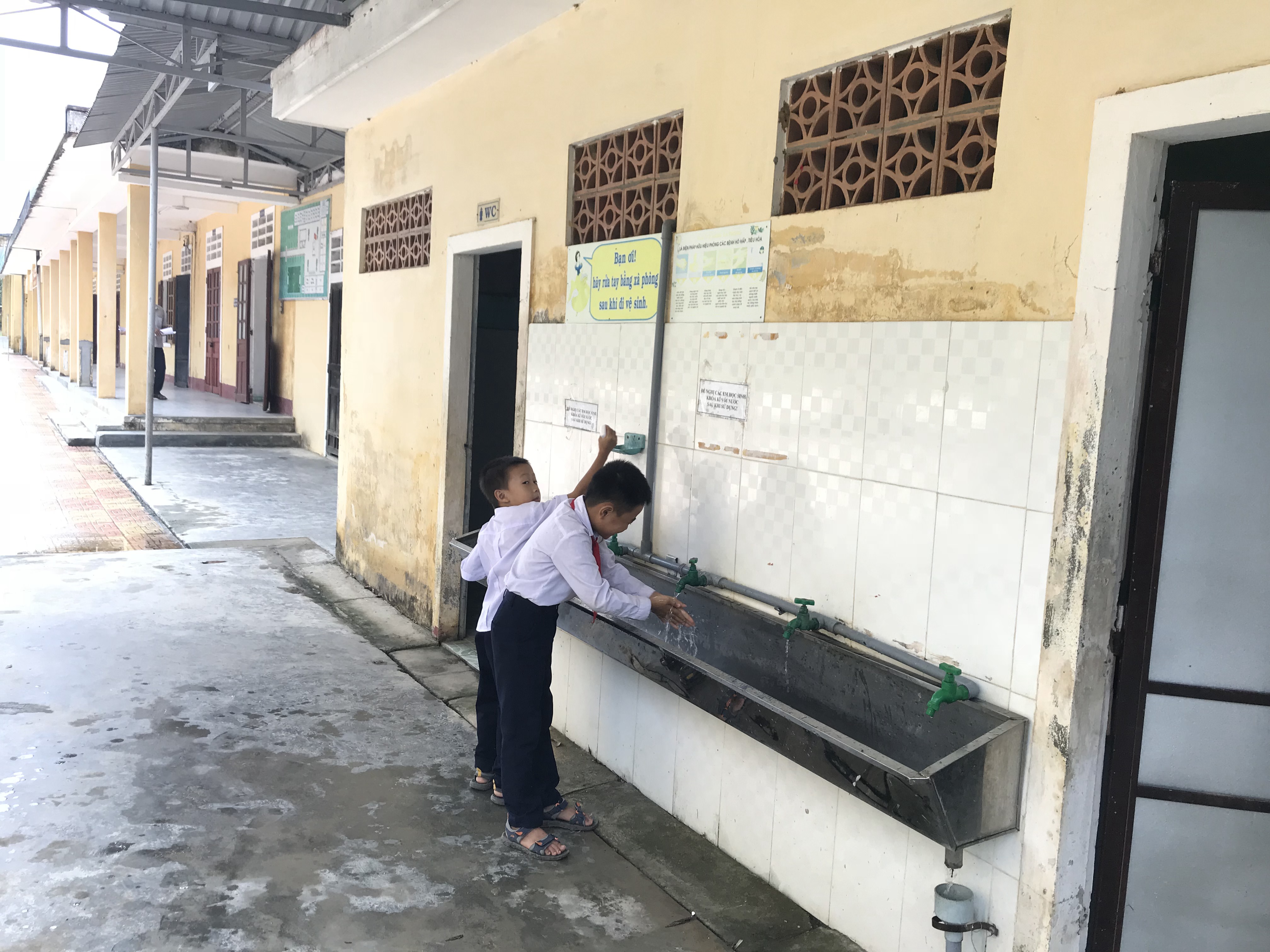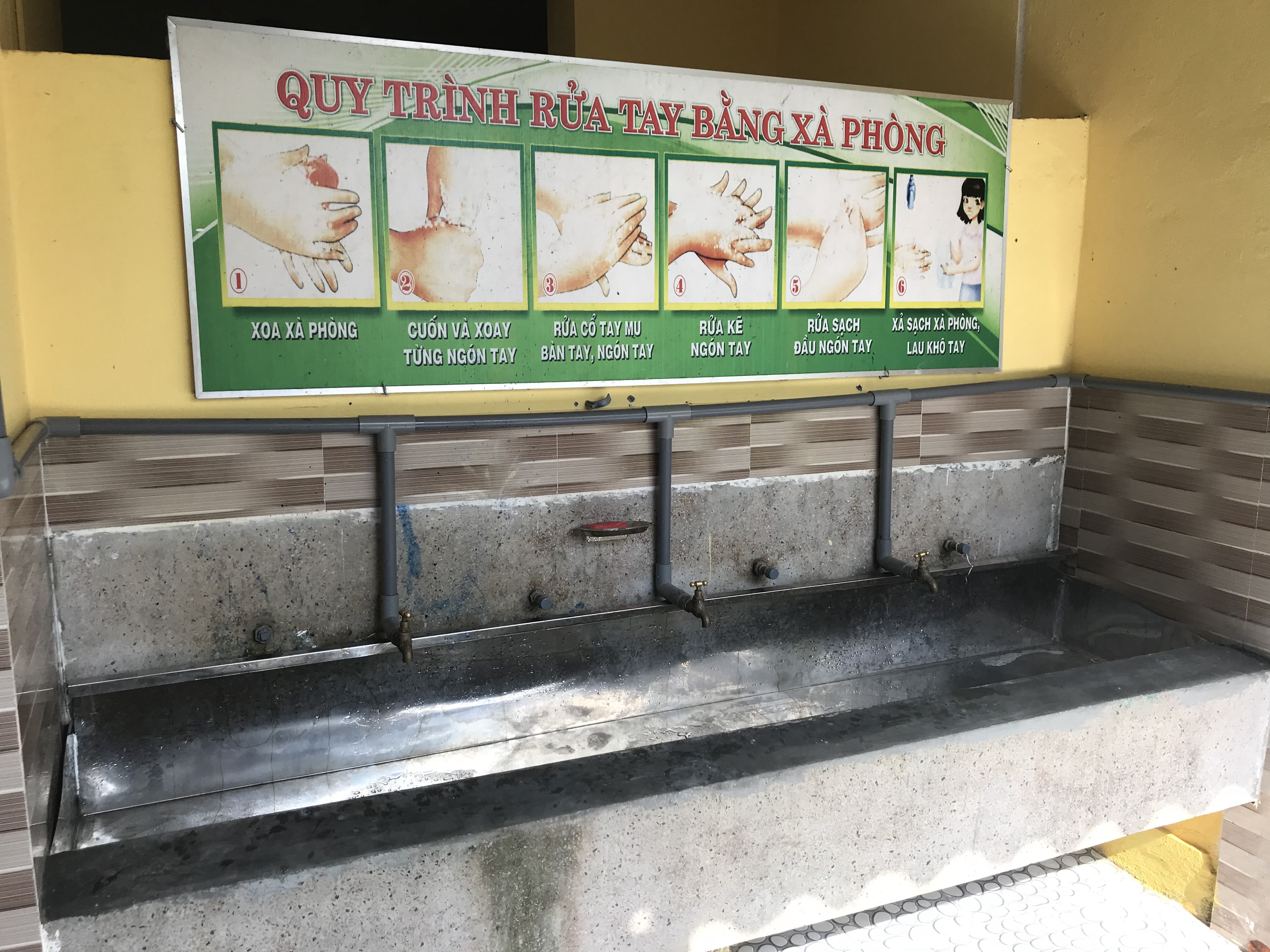 Khu vực rửa tay của học sinh trường TH Vinh Thái
