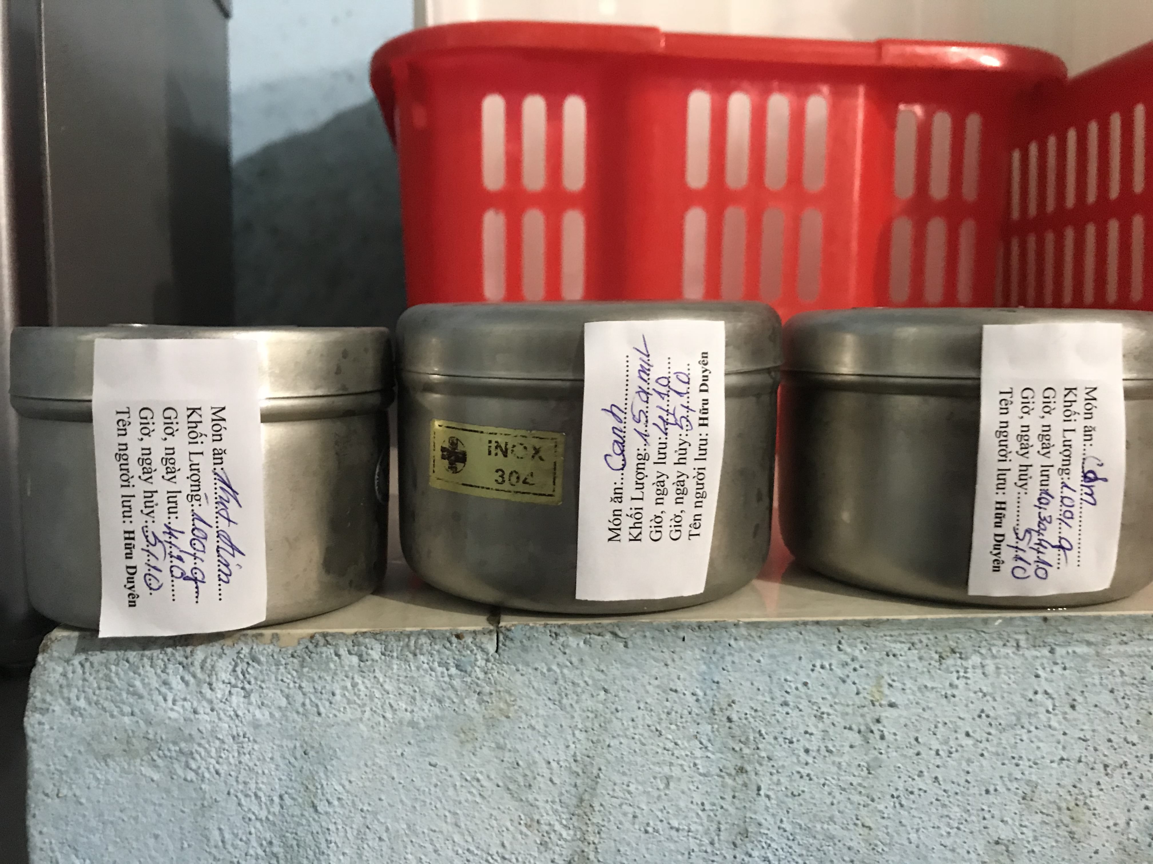Kiểm tra công tác lưu mẫu thực phẩm cho học sinh bán trú tại trường TH Vinh Thái