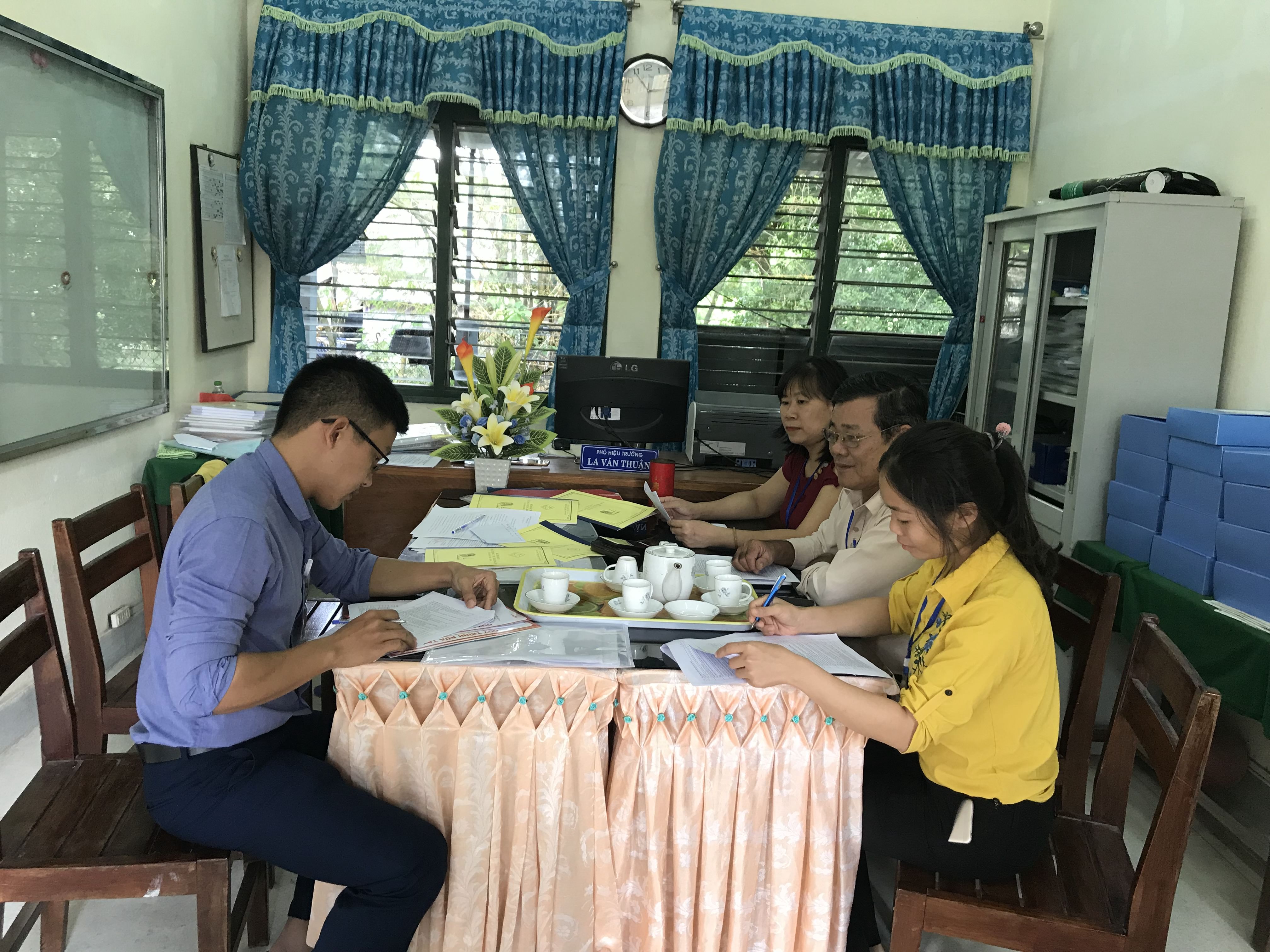 Đoàn kiểm tra làm việc với trường THCS Vinh Thái, huyện Phú Vang.