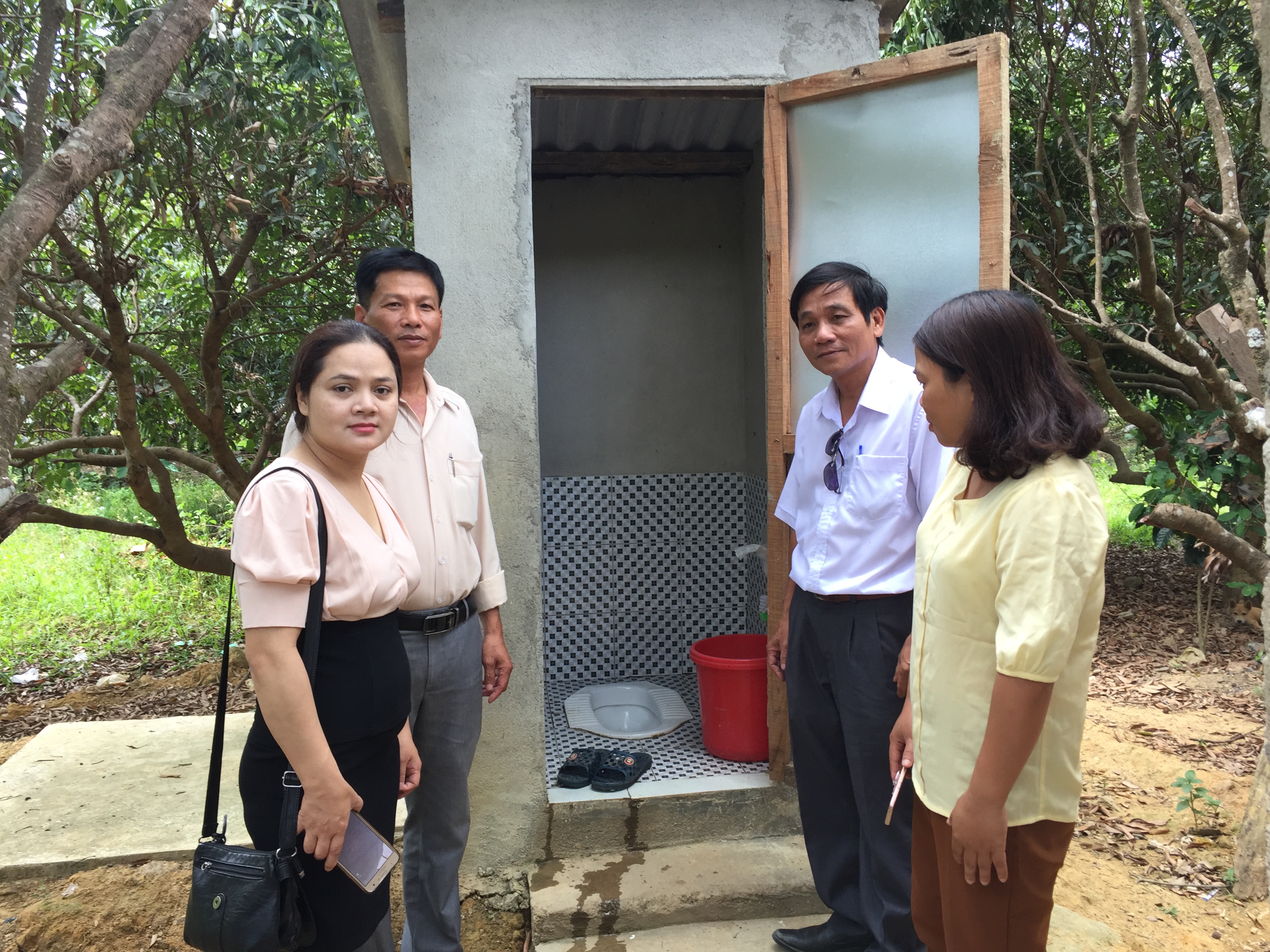 Kiểm tra tình hình sử dụng và bảo quản nhà tiêu được chương trình hỗ trợ xây dựng tại xã Hồng Bắc năm 2017