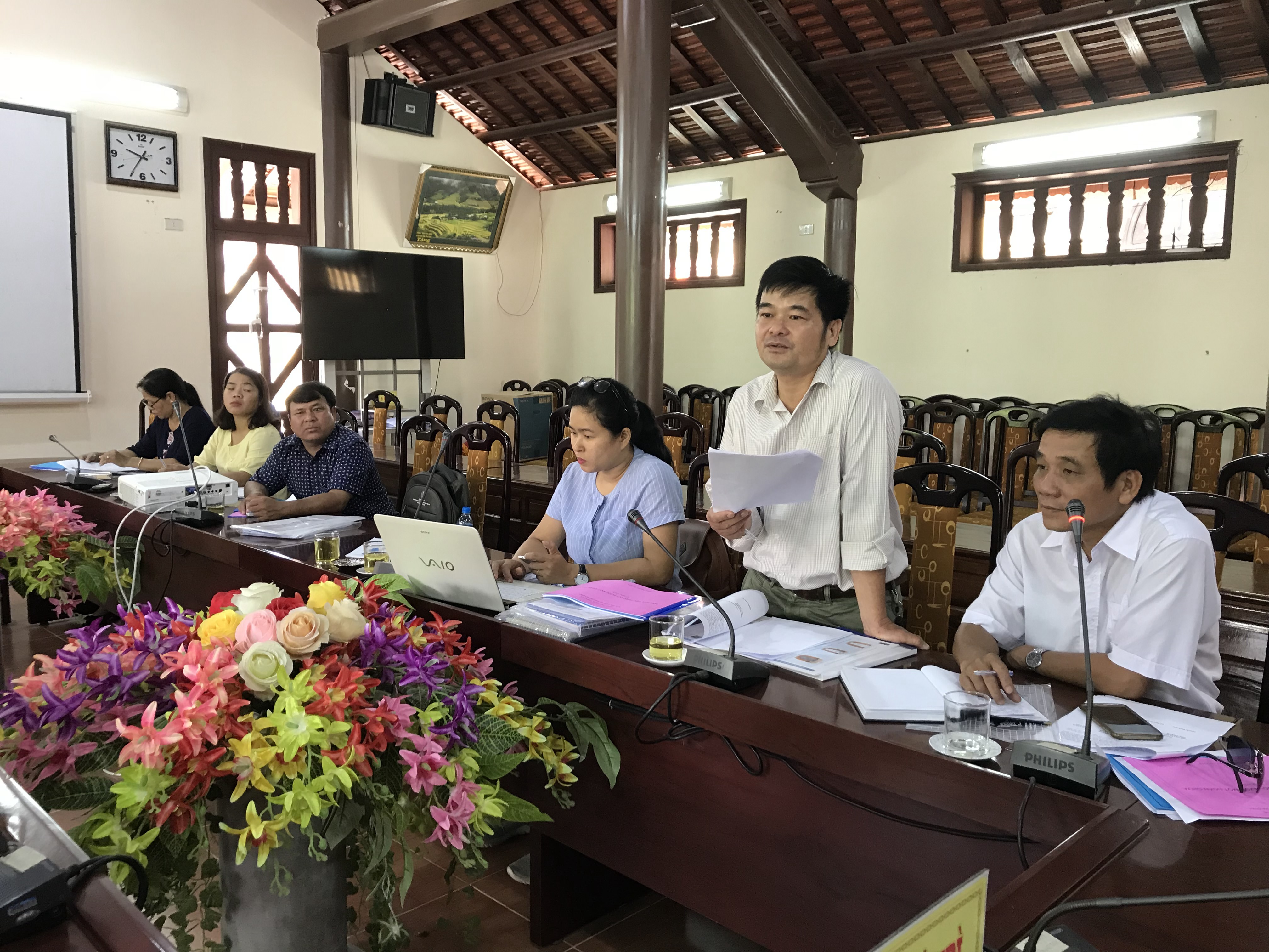 Đồng chí Phan Đăng Tâm đề nghị UBND các xã quan tâm tiến hành nhanh quá trình mời chọn nhà thầu xây dựng, quá trình bình xét chọn hộ gia đình tại các thôn đúng đối tượng thụ hưởng, lập tờ trình và danh sách trình UBND huyện ra quyết định phê duyệt danh sách hộ nghèo, cận nghèo chưa có nhà tiêu hợp vệ sinh hoặc nhà tiêu đã xuống cấp không còn sử dụng được để được đăng ký hỗ trợ xây dựng nhà tiêu hợp vệ sinh theo bản vẽ thiết kế mẫu nhà tiêu đã được UBND tỉnh phê duyệt. Cố gắng phấn đấu hoàn thành trước tháng 11 vì mùa mưa bão sẽ ảnh hưởng đến chất lượng công trình.