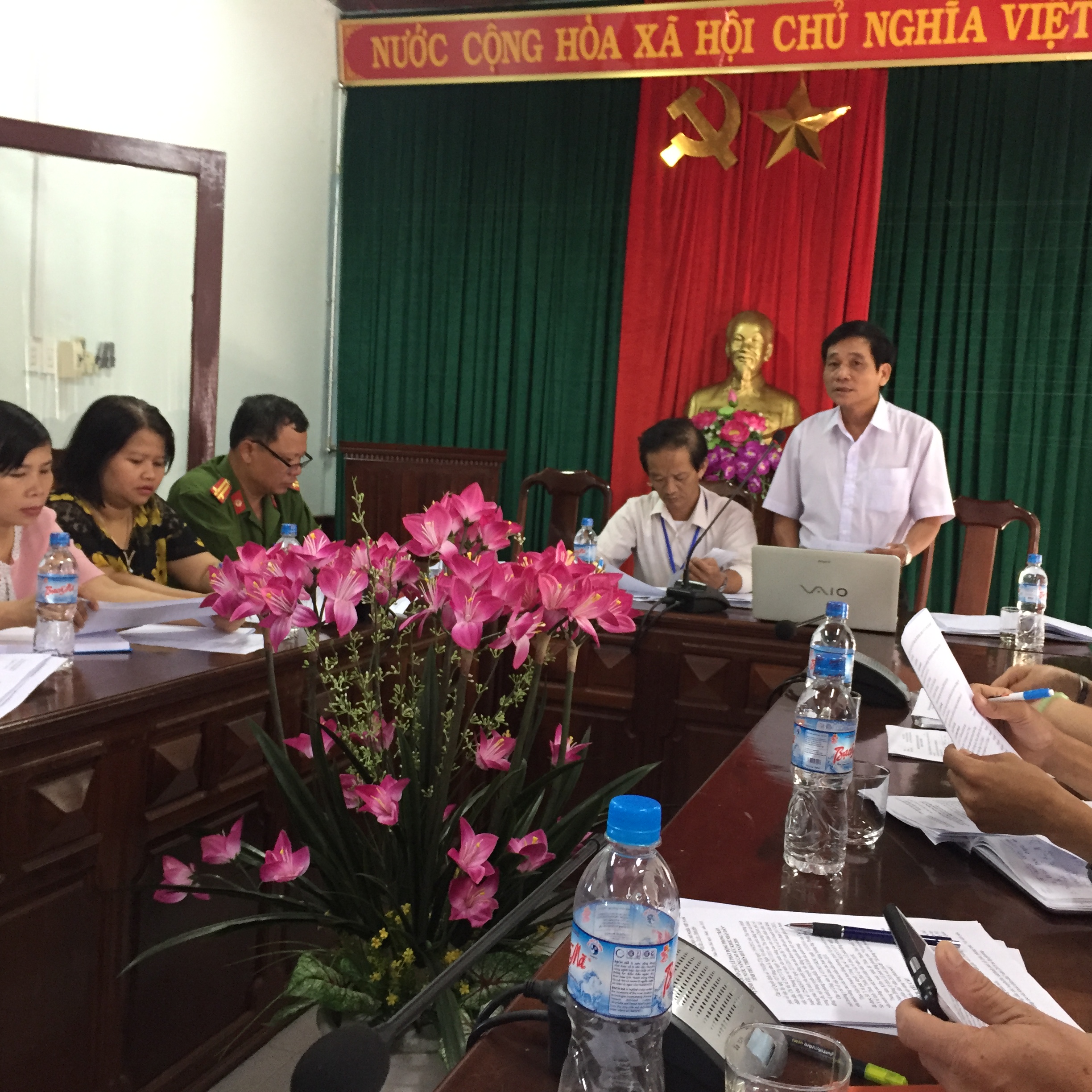 Ngày 28/6/2018, tại hội trường UBND huyện Nam Đông, Trung tâm Kiểm soát bệnh tật đã có buổi làm việc thứ hai cùng với lãnh đạo UBND huyện Nam Đông, lãnh đạo Phòng Y tế huyện, lãnh đạo Trung tâm Y tế huyện, lãnh đạo các ban ngành, đoàn thể trên địa bàn huyện, lãnh đạo UBND 11 xã/thị trấn, Ban giám hiệu trường Dân tộc nội trú huyện, để rà soát công tác chuẩn bị tổ chức buổi Lễ phát động phong trào “Vệ sinh yêu nước nâng cao sức khoả nhân dân” năm 2018 với chủ đề: “Sử dụng và bảo quản nhà tiêu hợp vệ sinh góp phần xây dựng Nông thôn mới”.