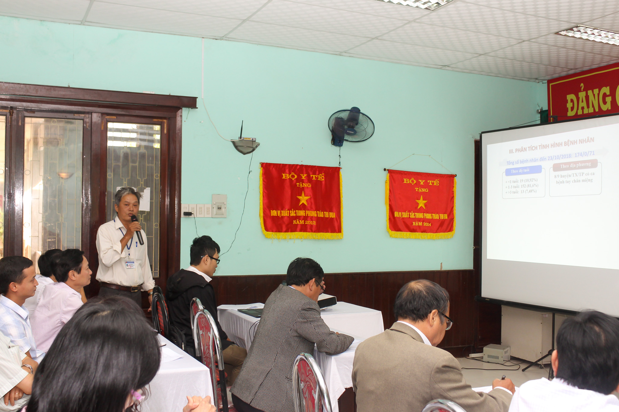 Ngày 02 tháng 11 năm 2018 Trung tâm Kiểm soát bệnh tật tỉnh đã tổ chức Giao ban sơ kết 9 tháng đầu năm 2018 về công tác phòng chống dịch và Tiêm chủng mở rộng. Đến dự và chỉ đạo Hội nghị có Ths, BS Dương Quang Minh - Phó Giám đốc Sở Y tế; PGS.TS Nguyễn Đình Sơn - Phó Giám đốc phụ trách Trung tâm KSBT và Ban lãnh đạo; đại diện phòng Nghiệp vụ Y Sở Y tế cùng các trưởng phó khoa, phòng của Trung tâm và lãnh đạo các TTYT, các khoa phòng chống dịch bệnh của 9 huyện, thị xã, thành phố.