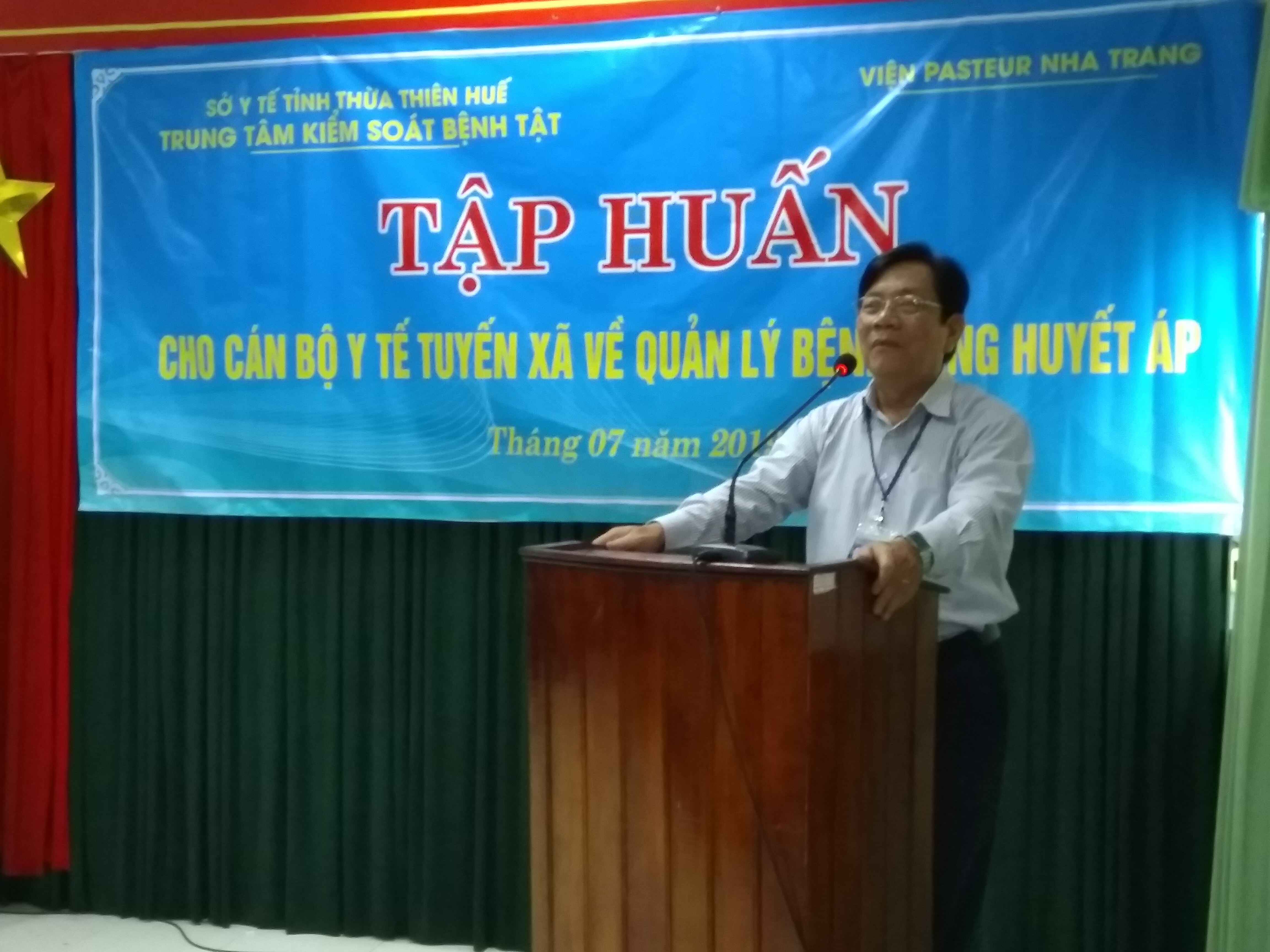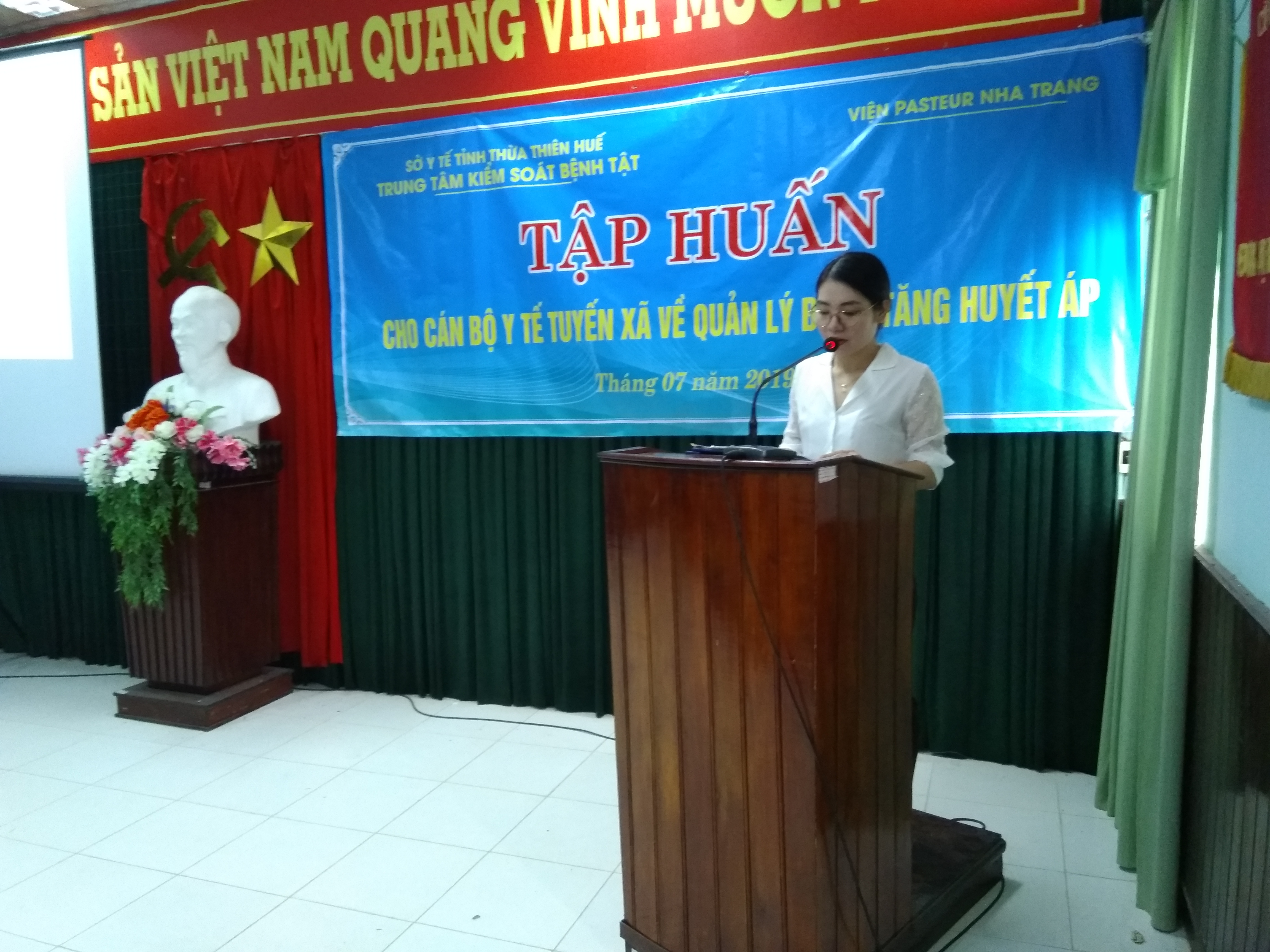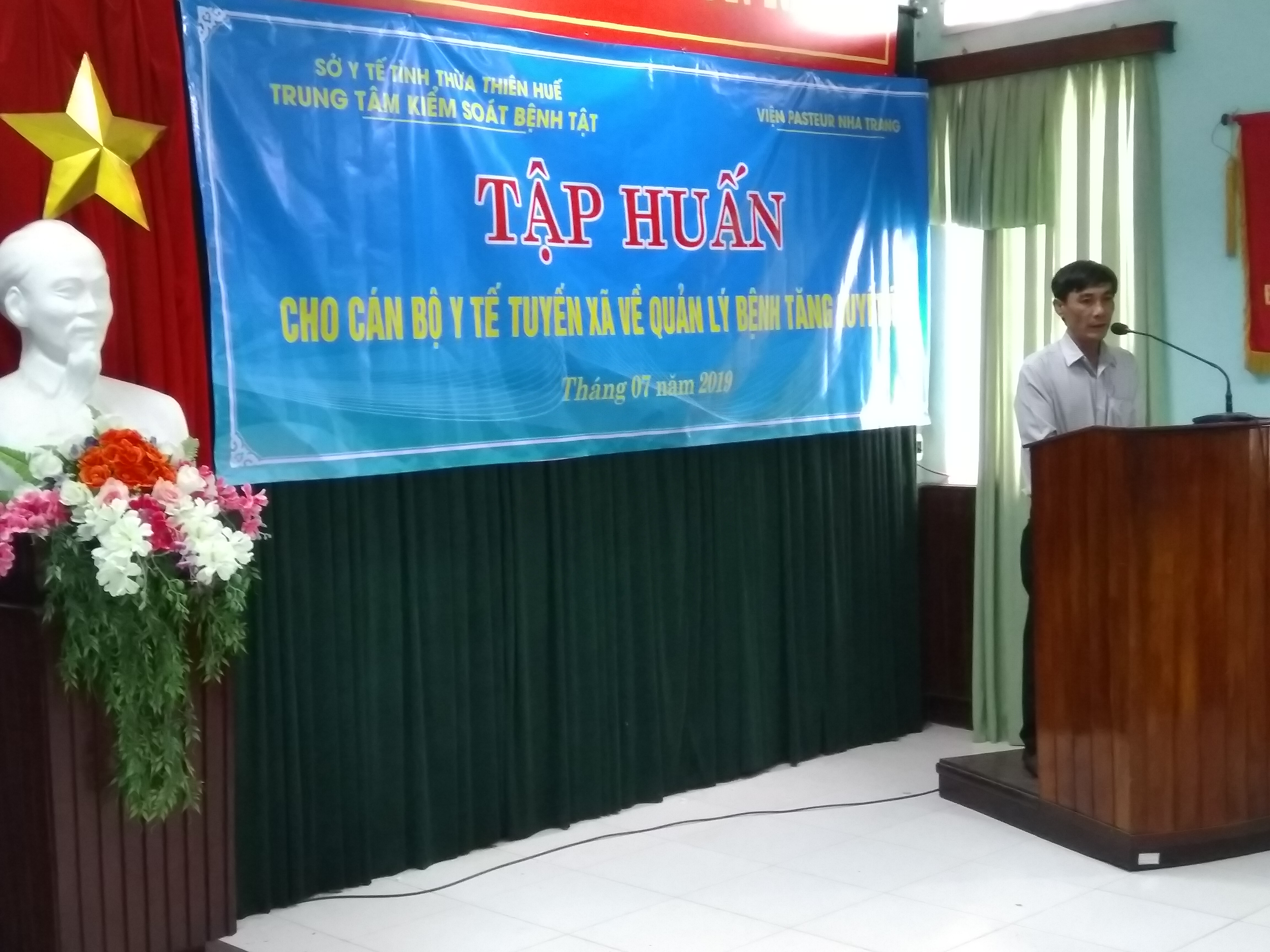 Thực hiện công văn số 1444/IPN-DDTP ngày 25/7/2019 của Viện Pasteur Nha Trang về việc triển khai các hoạt động phòng chống bệnh không lây nhiễm. Ngày 01/8/2019 Khoa phòng chống bệnh không lây nhiễm - Trung tâm Kiểm soát bệnh tật tỉnh phối hợp với Viện Pasteur Nha Trang đã tổ chức tập huấn cho Trưởng trạm Y tế, cán bộ phụ trách bệnh không lây nhiễm của 16 Trạm Y tế trực thuộc TTYT thị xã Hương Trà và của 6 phường trực thuộc TTYT thành phố Huế triển khai mẫu về quản lý, điều trị tăng huyết áp theo nguyên lý y học gia đình, truyền thông về giảm muối tại cộng đồng.