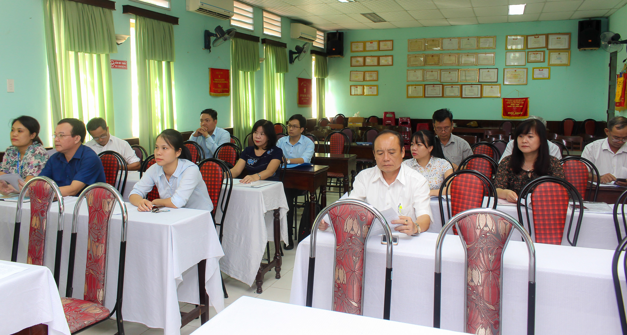 Tại buổi giao ban, các cán bộ phụ trách công tác truyền thông đã nghe BS.CKII Hầu Văn Nam - Trưởng Khoa TTGDSK báo cáo nội dung giao ban công tác truyền thông giáo dục sức khỏe 9 tháng đầu năm 2018 với công tác kiện toàn mạng lưới tổ chức hoạt động truyền thông giáo dục sức khỏe (TTGDSK). Với tuyến tỉnh thành lập các tổ truyền thông, tổ tư vấn gồm 9 đơn vị: Bệnh viện Tâm thần, Bện viện Đa khoa Bình Điền, Bệnh viện Đa khoa Chân Mây, Bệnh viện Y học cổ truyền, Bệnh viện Phục hồi chức năng, Bệnh viện Mắt, Chi Cục VSATTP, Trung tâm Kiểm nghiệm thuốc - mỹ phẩm, - thực phẩm và Trung tâm vận chuyển cấp cứu 115. Tại Trung tâm KSBT tỉnh, ngoài Khoa TTGDSK, Trung tâm đã thành lập mạng lưới cộng tác viên phụ trách công tác TTGDSK ở 18 khoa, phòng của đơn vị với mỗi khoa phòng đều có một cán bộ phụ trách công tác truyền thông.