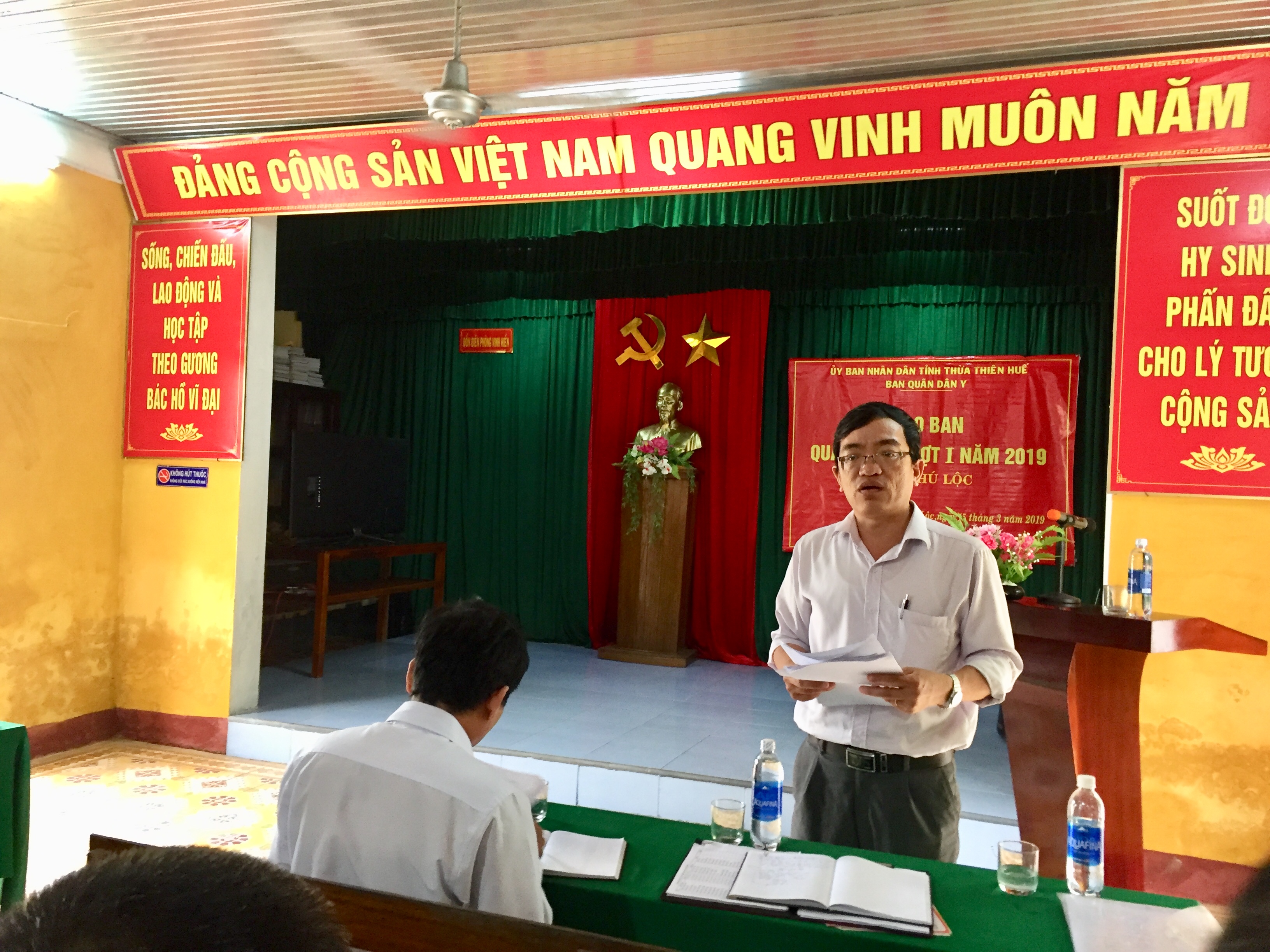 Thực hiện kế hoạch chương trình Quân Dân Y kết hợp tỉnh Thừa Thiên Huế Đợt I năm 2019, ngày 15/3/2019, tại Đồn Biên phòng Vinh Hiền, Trung tâm Kiểm soát bệnh tật tỉnh phối hợp với Ban Quân y tỉnh đội, Ban Quân y Bộ đội Biên phòng tỉnh và Đồn Biên phòng Vinh Hiền tổ chức giao ban Quân Dân Y cho Cụm Phú Lộc.