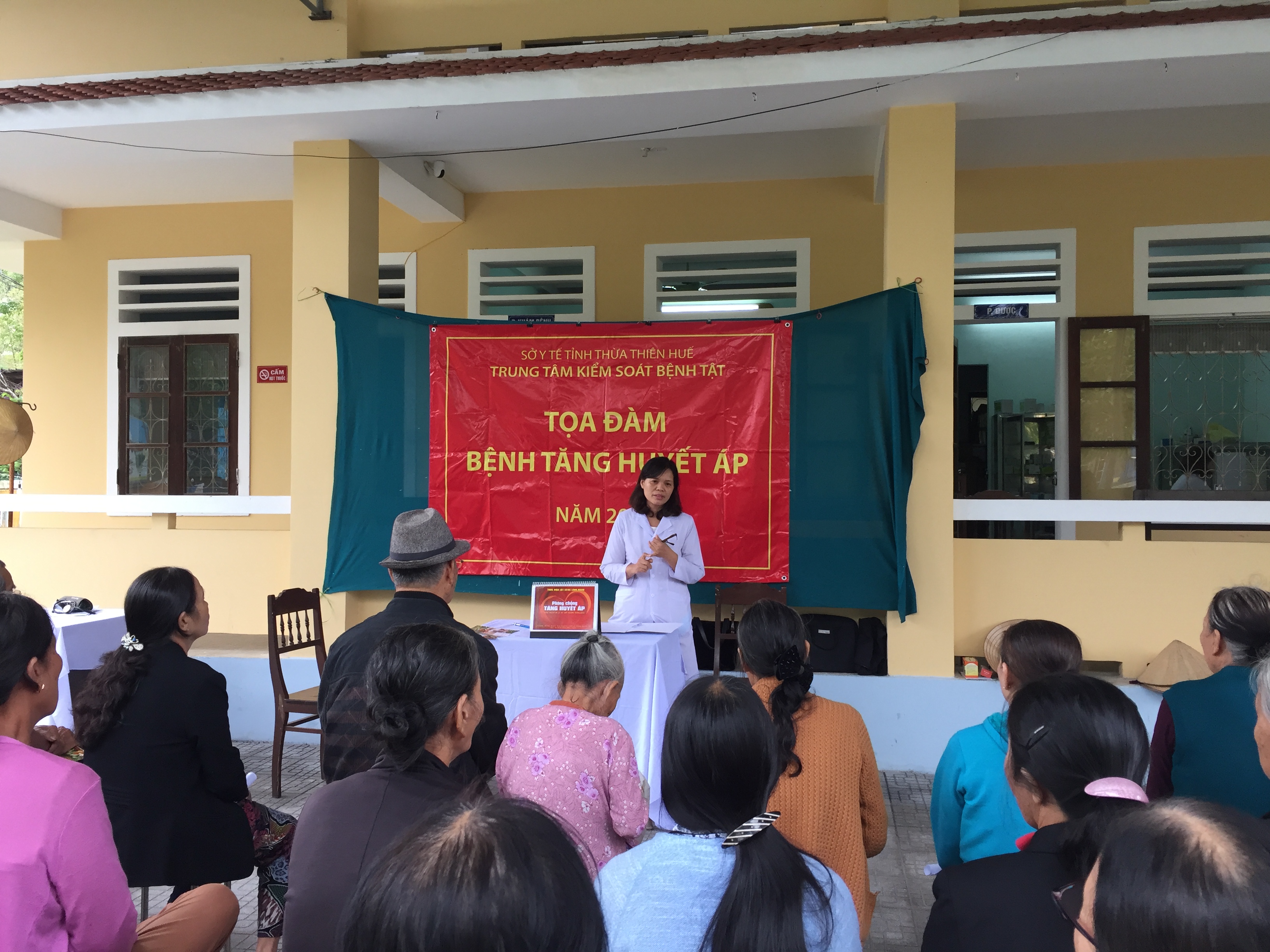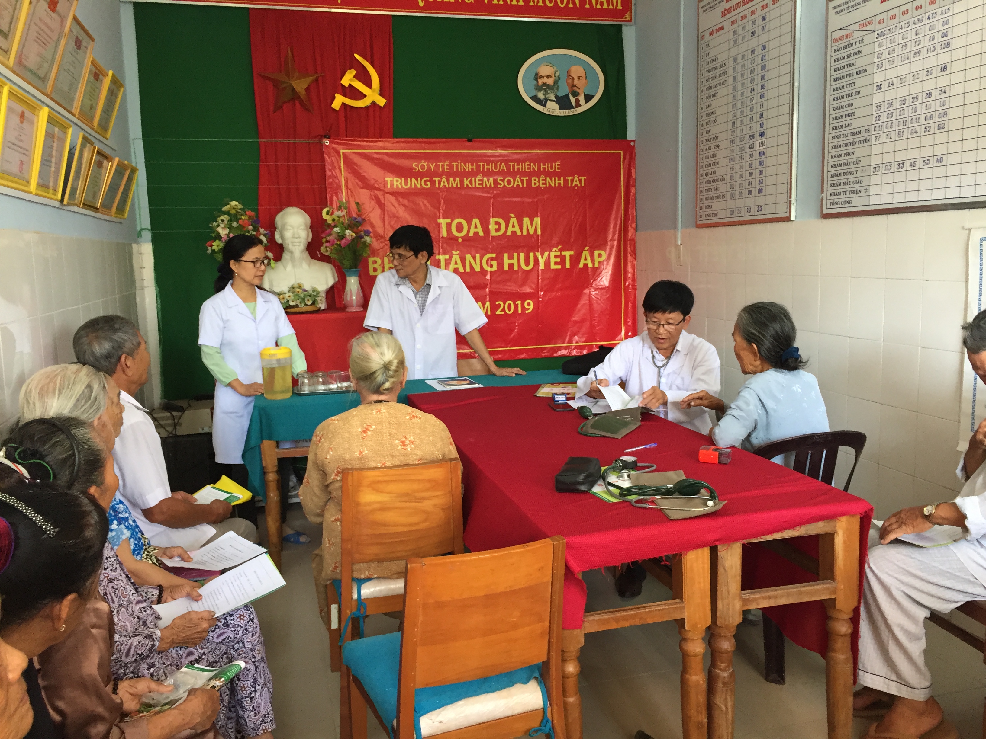 Để nâng cao hiểu biết của bệnh nhân tăng huyết áp nói riêng và cộng đồng nói chung về bệnh THA. Trung tâm kiểm soát bệnh tật tổ chức sinh hoạt câu lạc bộ bệnh nhân tại các xã Quảng Thành huyện Quảng Điền, xã Lộc Trì huyện Phú Lộc và phường Thủy Châu thị xã Hương Thủy.