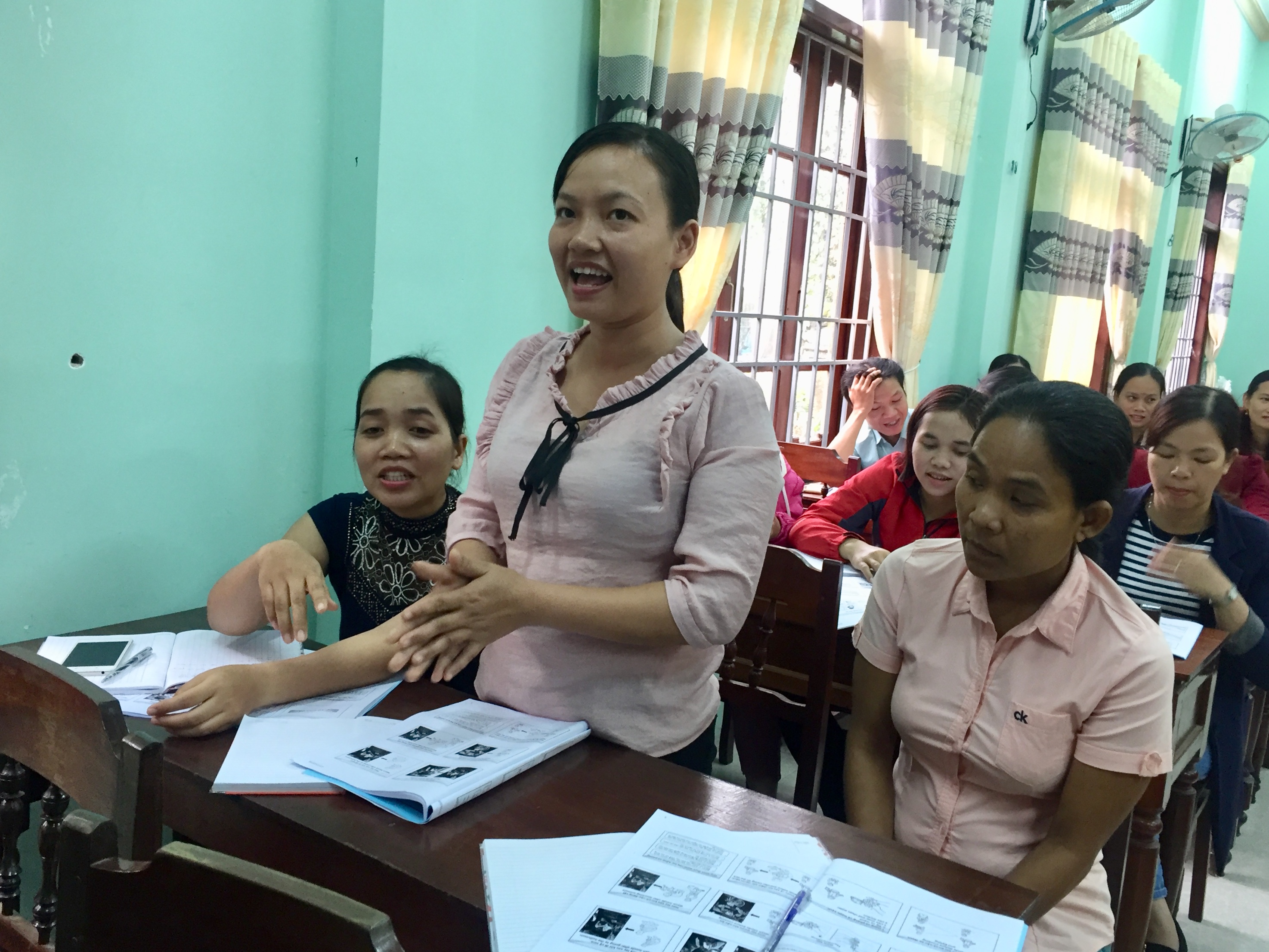 ThS. Trần Bá Thanh, Trưởng khoa Sức khỏe môi trường – Y tế trường học, Trung tâm kiểm soát bệnh tật tỉnh đã giới thiệu đến các học viên những nội dung: Giáo dục vệ sinh cá nhân trong trường học, vệ sinh răng miệng, phòng chống giun sán trong trường học, việc sử dụng nước an toàn; Công tác phòng chống dịch bệnh lây qua đường ăn uống, nước và vệ sinh môi trường; Sơ cấp cứu hóc dị vật, phòng chống đuối nước… Các học viên đã rất tích cực lắng nghe, tham gia thảo luận, liên hệ thực tế tại địa phương, cộng đồng mình đang làm việc và sinh sống.