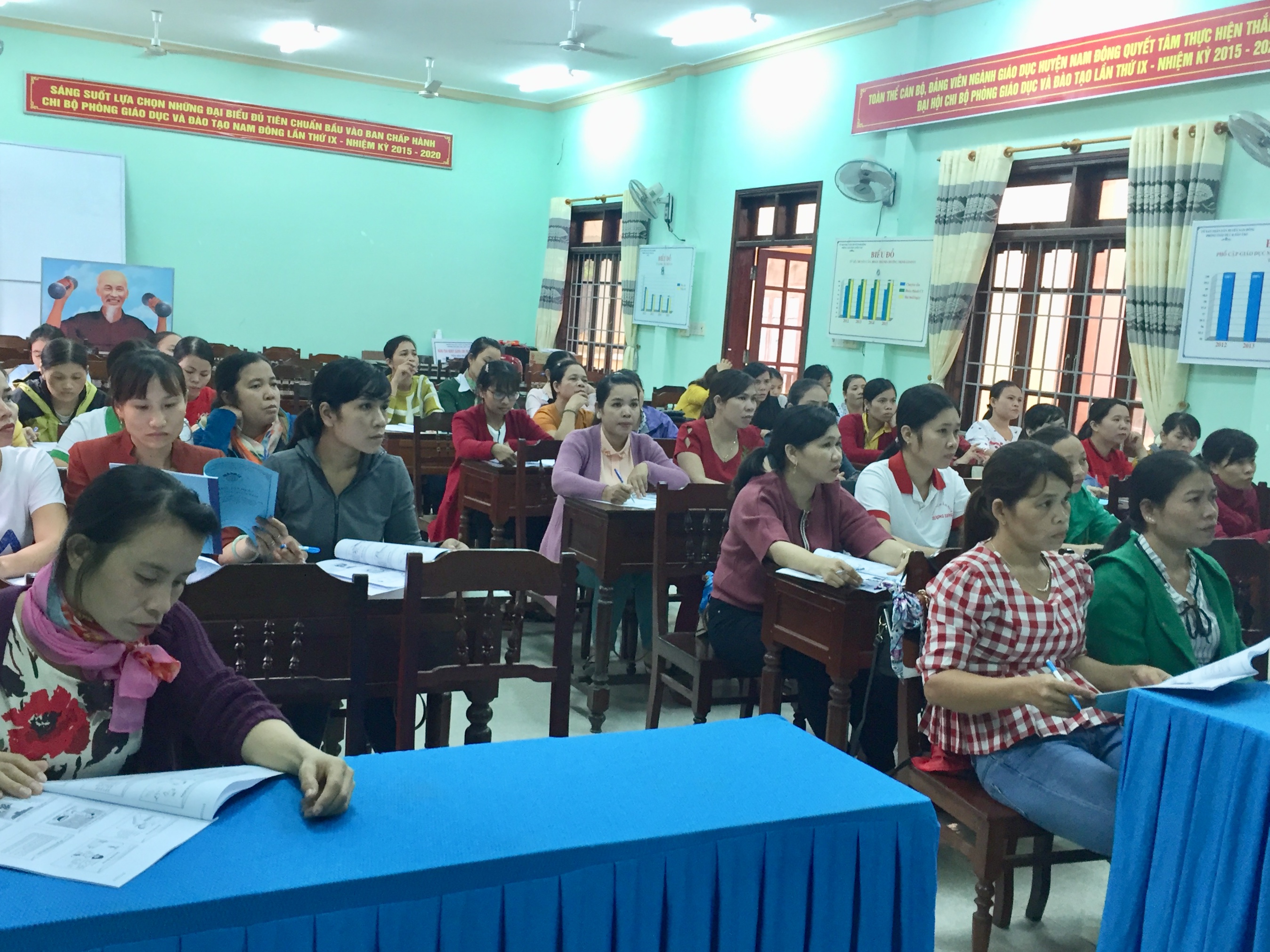 Tham dự lớp tập huấn gồm có cán bộ Trung tâm y tế huyện, Phòng Giáo dục và Đào tạo huyện Nam Đông, Ban giám hiệu và cán bộ y tế trường học và 84 giáo viên đến từ 04 trường mầm non: trường MN Thượng Nhật, trường MN Thượng Quảng, trường MN Hương Hữu và trường MN Thượng Long.