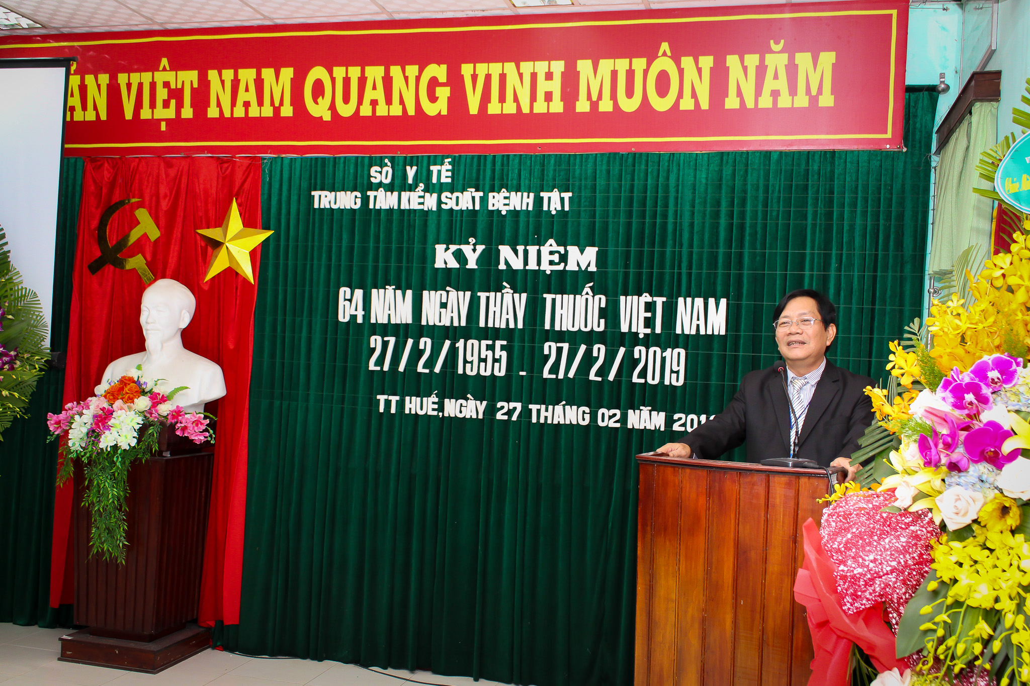 Ngày 27/2/2019, Trung tâm Kiểm soát bệnh tật tỉnh tổ chức tọa đàm nhân kỷ niệm 64 năm ngày Thầy thuốc Việt Nam (27/2/1955-27/2/2019). Tham dự buổi lễ có PGS.TS Nguyễn Đình Sơn-Phó Giám đốc phụ trách Trung tâm Kiểm soát bệnh tật tỉnh, các đồng chí trong Ban lãnh đạo Trung tâm, các cán bộ hưu trí qua các thời kỳ cùng tập thể viên chức, người lao động trong đơn vị