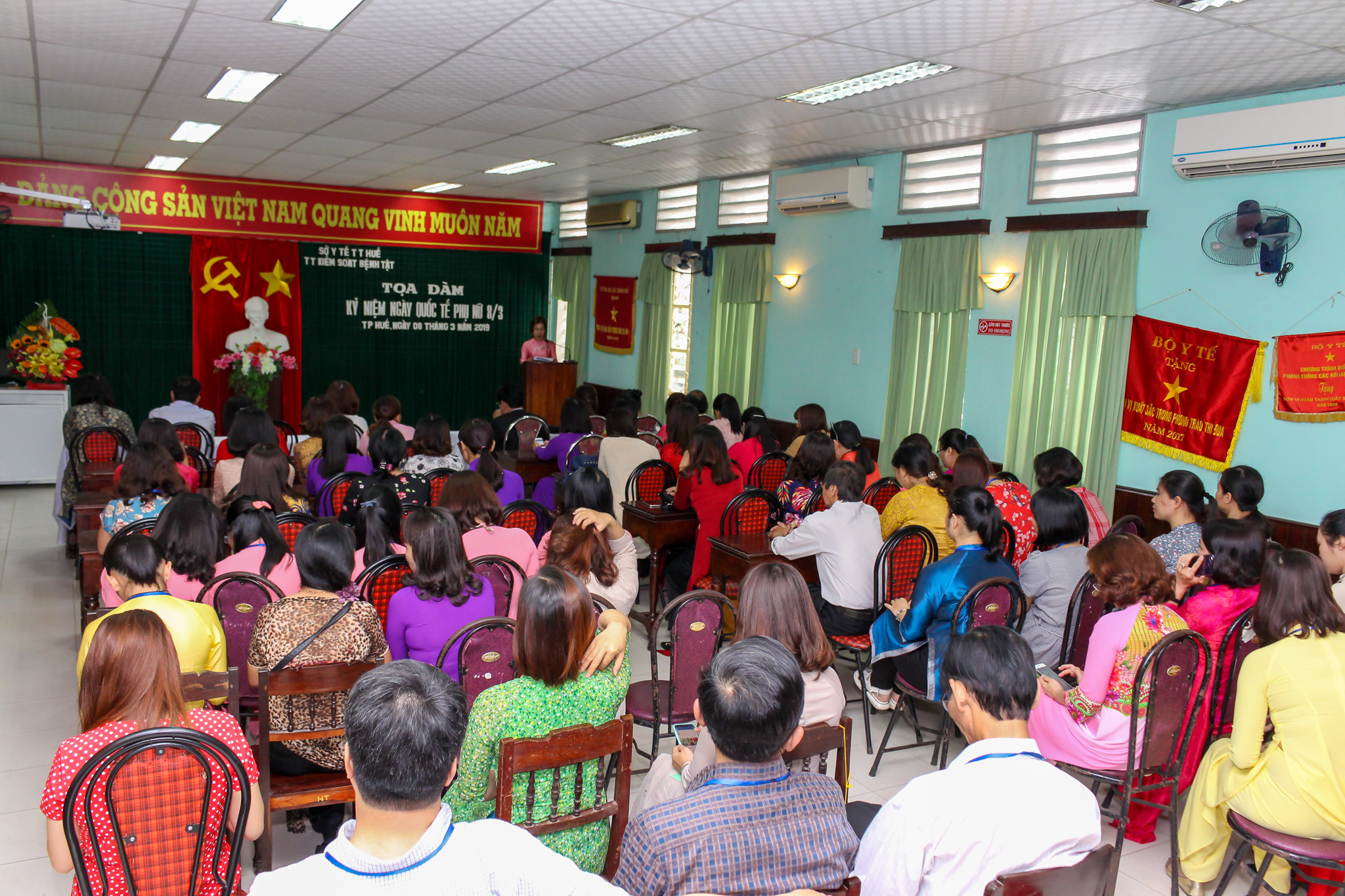 Ngày 8/3/2019, Trung tâm Kiểm soát bệnh tật tỉnh tổ chức Tọa đàm Kỷ niệm 109 năm Ngày Quốc tế Phụ nữ (8/3/1910-8/3/2019), đến tham dự có PGS.TS Nguyễn Đình Sơn - Bí thư Đảng ủy, Phó Giám đốc phụ trách Trung tâm cùng Ban Lãnh đạo, BCH Công đoàn cơ sở, cán bộ viên chức và toàn thể chị em phụ nữ của Trung tâm.