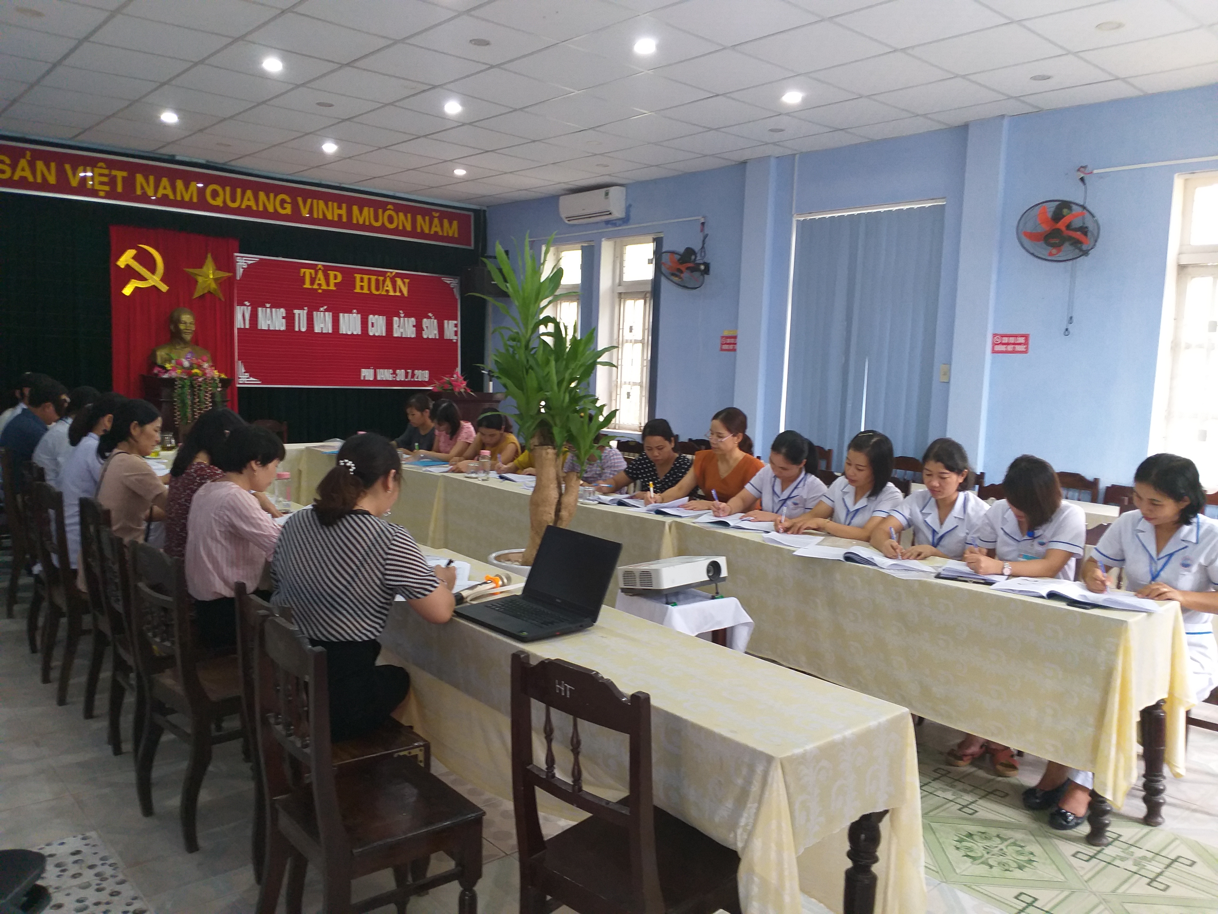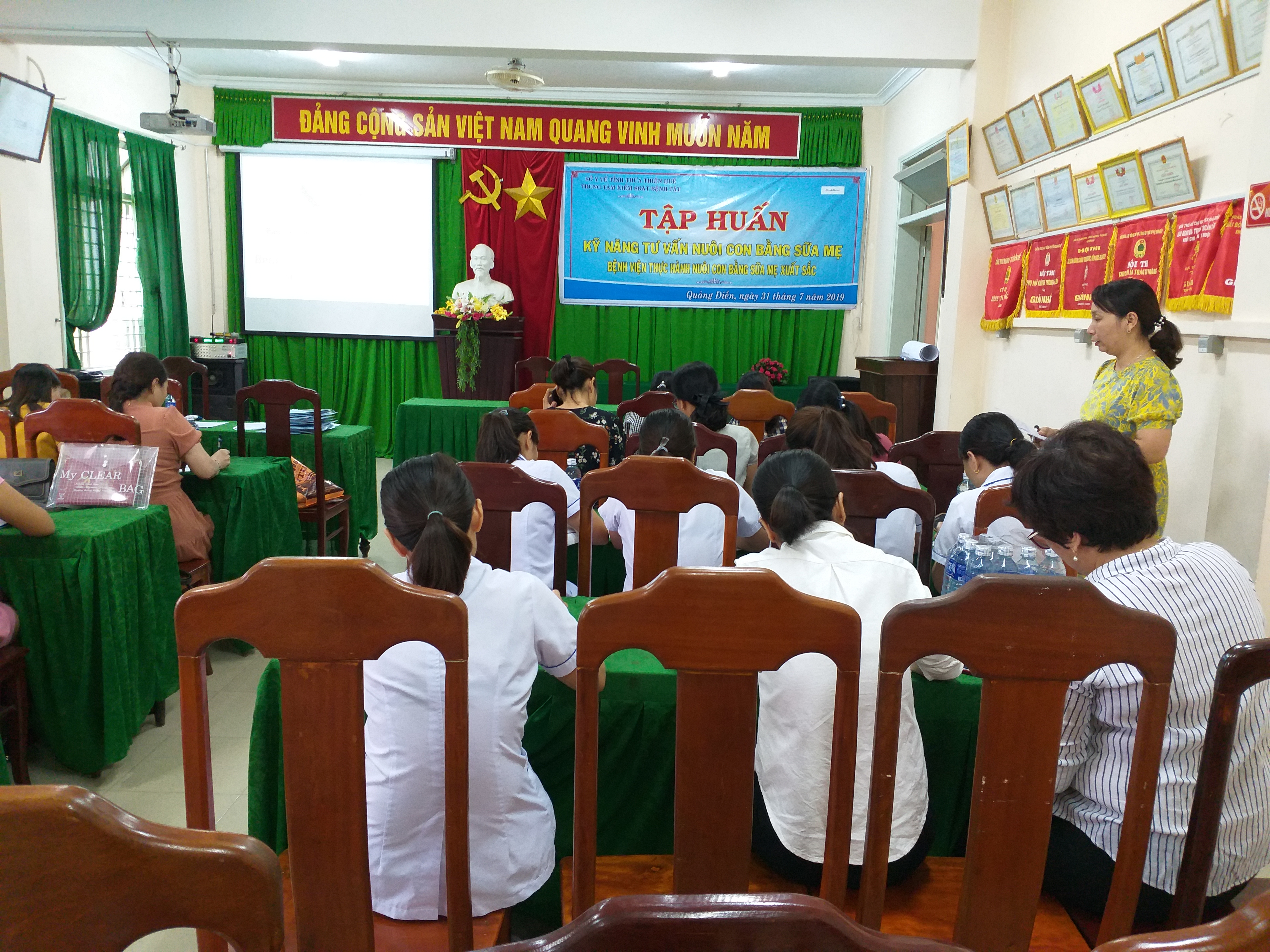 Thực hiện thỏa thuận giữa FHI360 (Alive & Thrive) và Trung tâm Kiểm soát bệnh tật tỉnh Thừa Thiên Huế về thực hiện đề án “Bệnh viện thực hành nuôi con bằng sữa mẹ xuất sắc” trong giai đoạn I, trong đó có nội dung tổ chức tập huấn Kỹ năng tư vấn nuôi con bằng sữa mẹ.