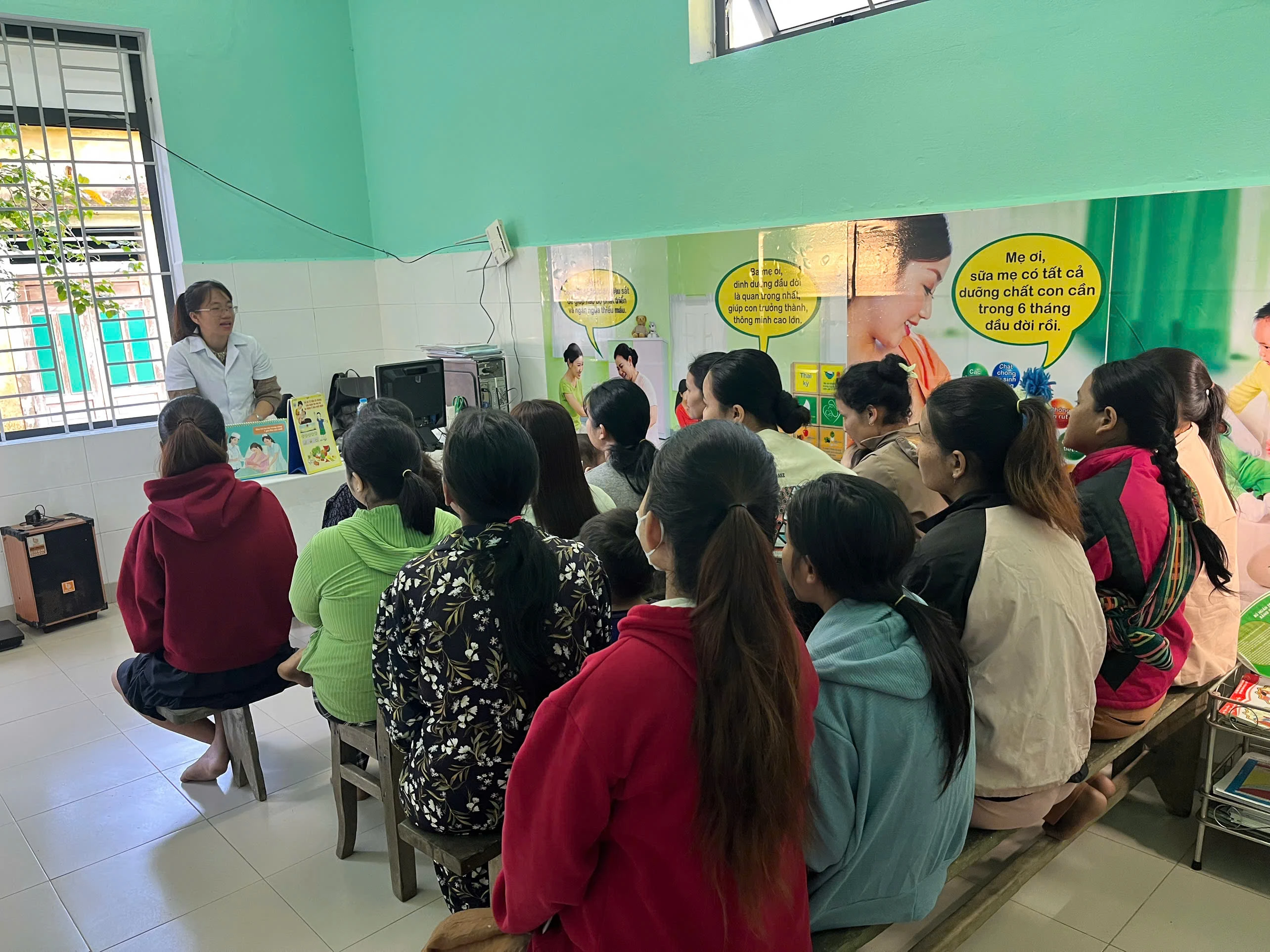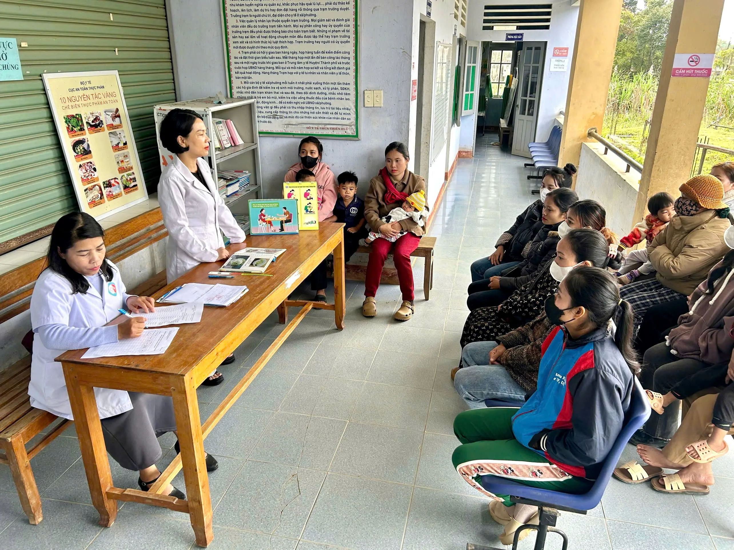 Hoạt động được triển khai tại TYT các xã triển khai mô hình hình dưỡng 1000 ngày ( A Lưới 2, A Lưới 1, Long Quảng, A Lưới 4) với sự tham gia của 20 bà mẹ tại mỗi điểm tư vấn. Bước đầu, cán bộ khoa PCBKLN-DD trực tiếp cung cấp kiến thức, hướng dẫn và trao đổi với các bà mẹ về các nội dung thiết thực như: dinh dưỡng trong thai kỳ, nuôi con bằng sữa mẹ, chế độ ăn dặm và bổ sung dinh dưỡng hợp lý cho trẻ từ 6–24 tháng tuổi, kết hợp tư vấn về môi trường sống và vận động phù hợp cho trẻ nhỏ. Đồng thời cán bộ khoa cũng giới thiệu về khóa học Elearning “Nuôi dưỡng trẻ nhỏ” do Viện Dinh dưỡng triển khai cho cán bộ phụ trách mô hình nhằm cung cấp thêm kiến thức hỗ trợ hoạt động tư vấn tại TYT.
