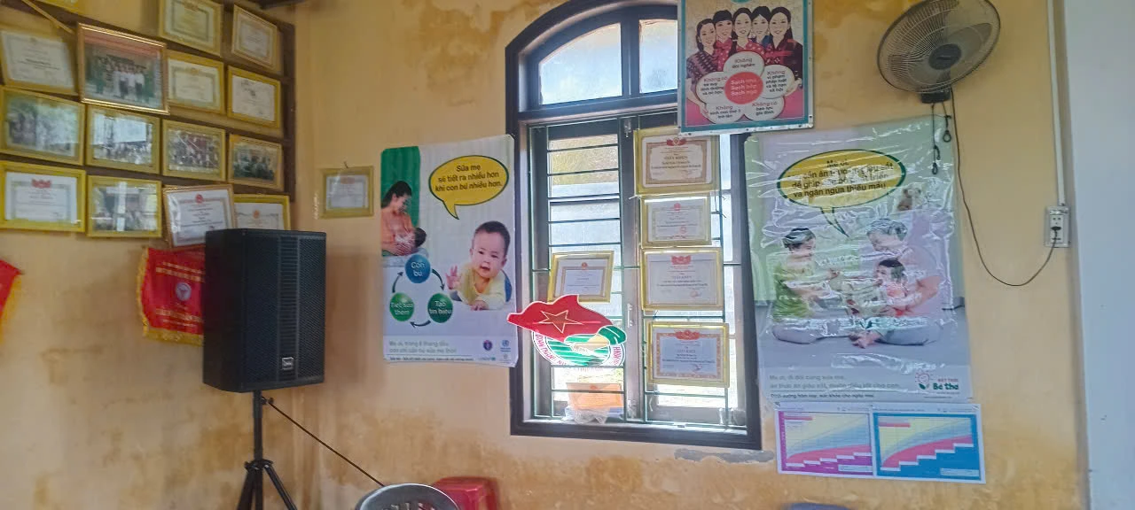 Một góc sinh hoạt nhóm nuôi dưỡng trẻ nhỏ được bố trí tại nhà sinh hoạt cộng đồng thôn