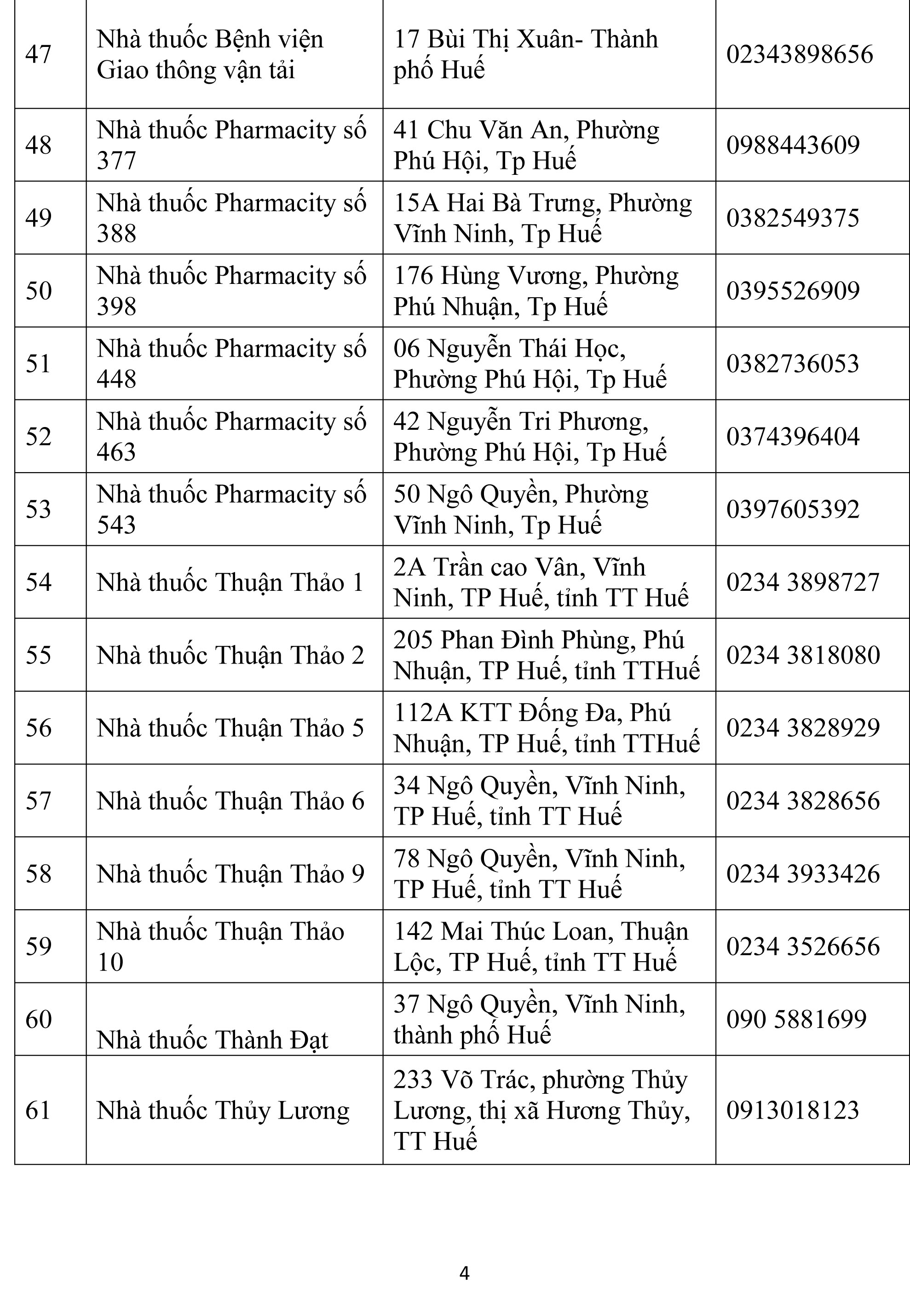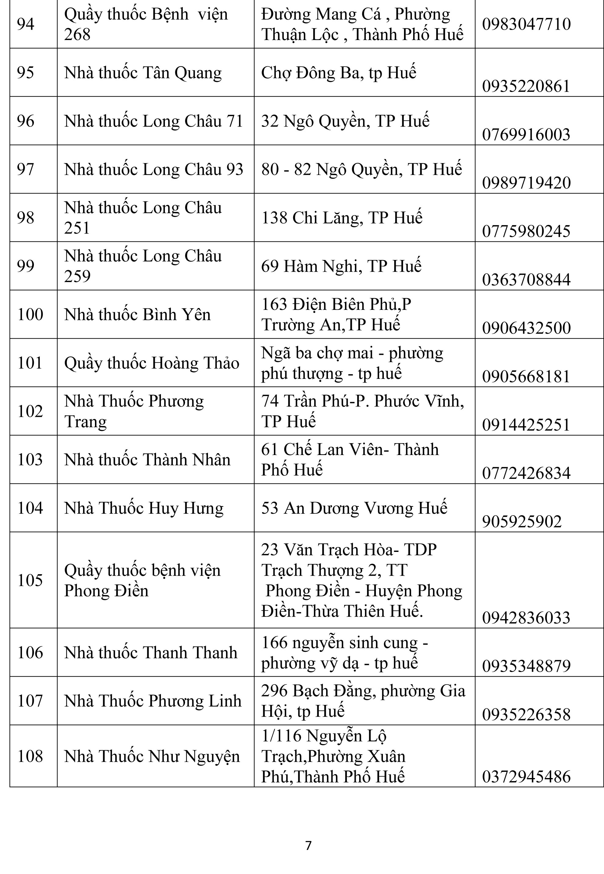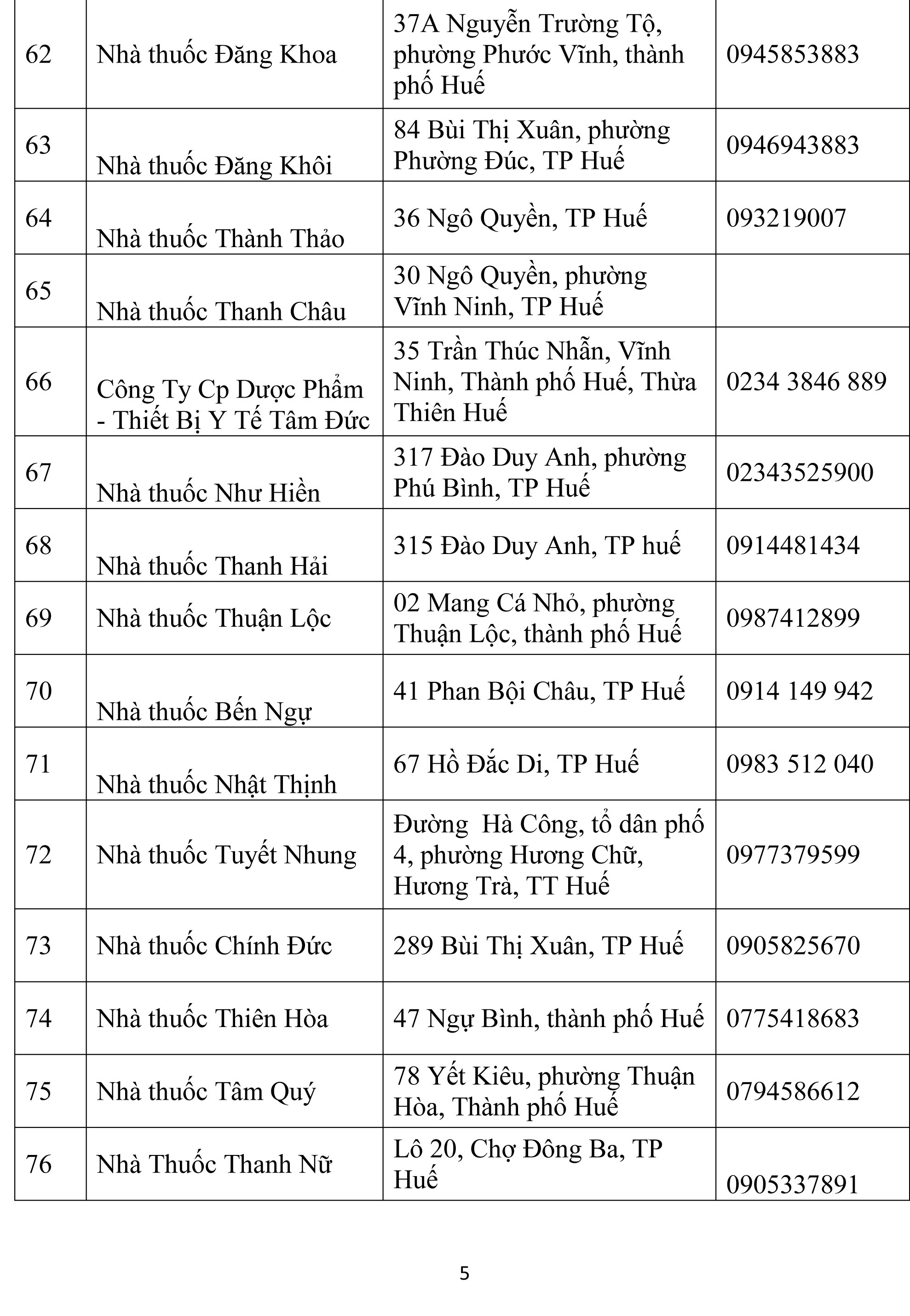 Danh sách các nhà/ quầy thuốc có bán test nhanh Covid-19 tại tỉnh Thừa Thiên Huế