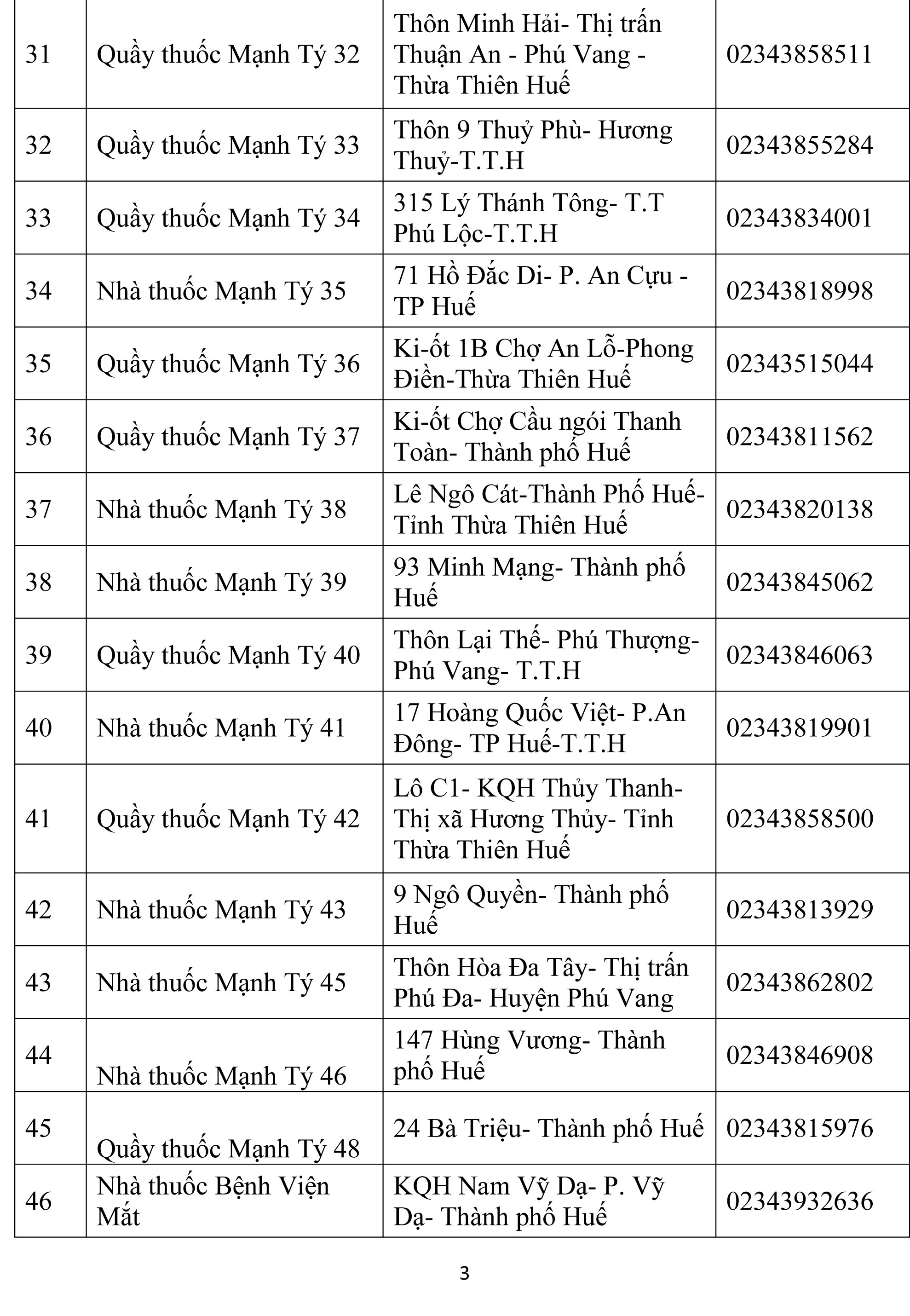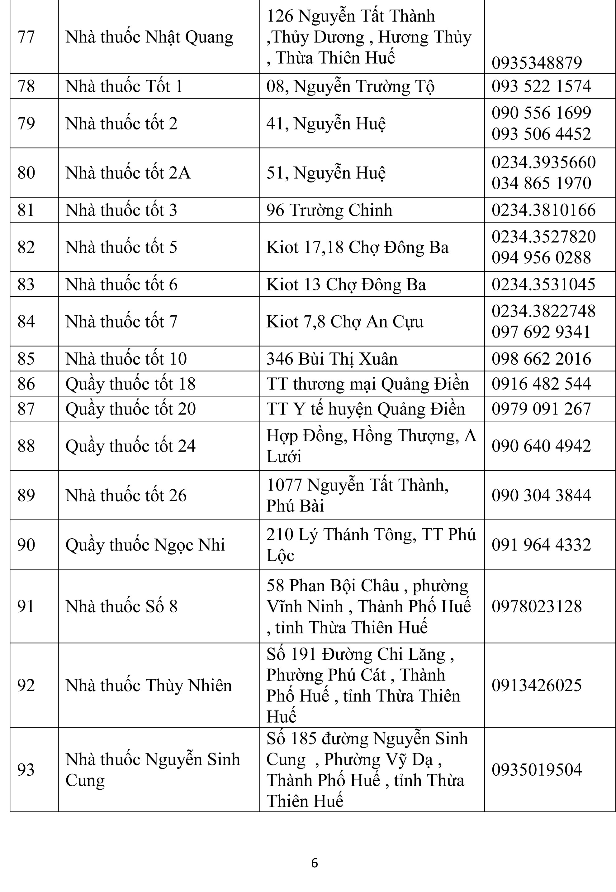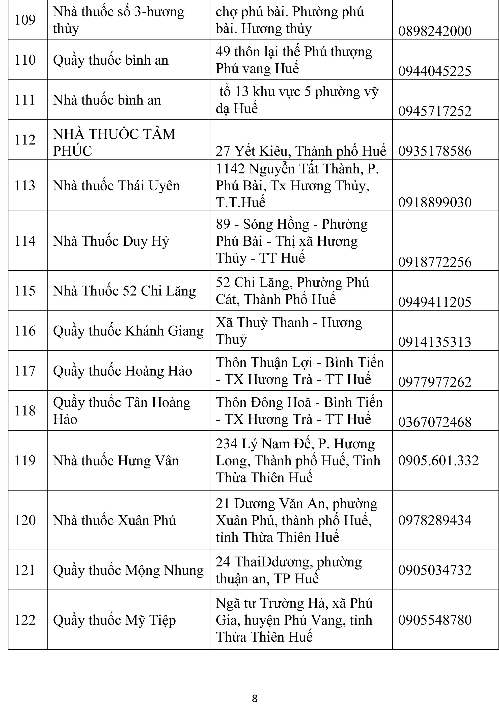 Danh sách các nhà/ quầy thuốc có bán test nhanh Covid-19 tại tỉnh Thừa Thiên Huế