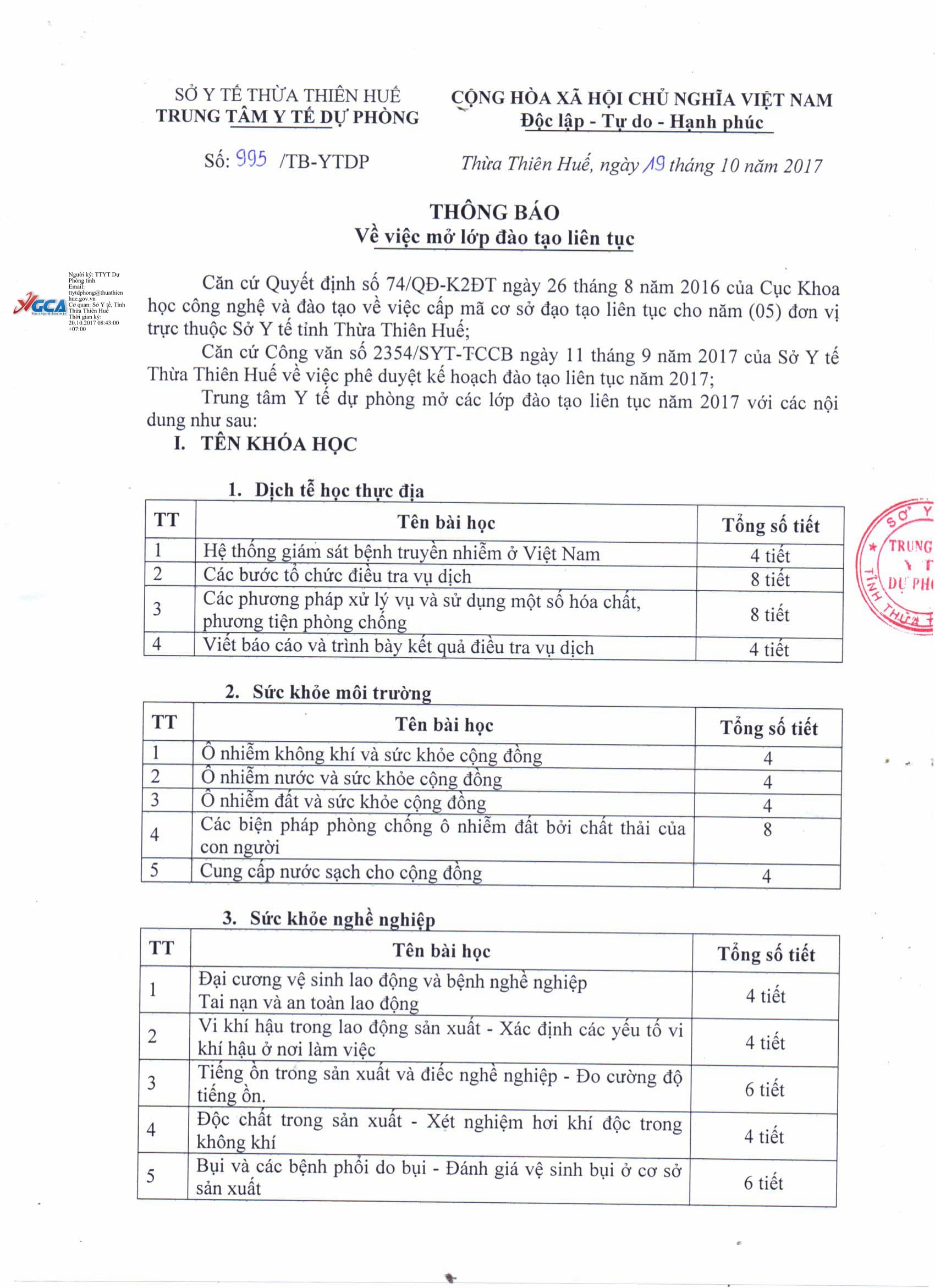DANH SÁCH TRỰC BÀN TIÊM SỐ 3 TỪ NGÀY 10/10 ĐẾN NGÀY 13/10/2017