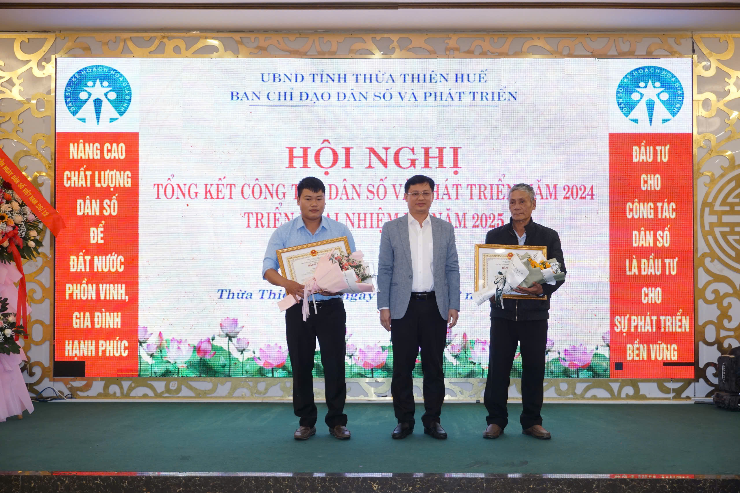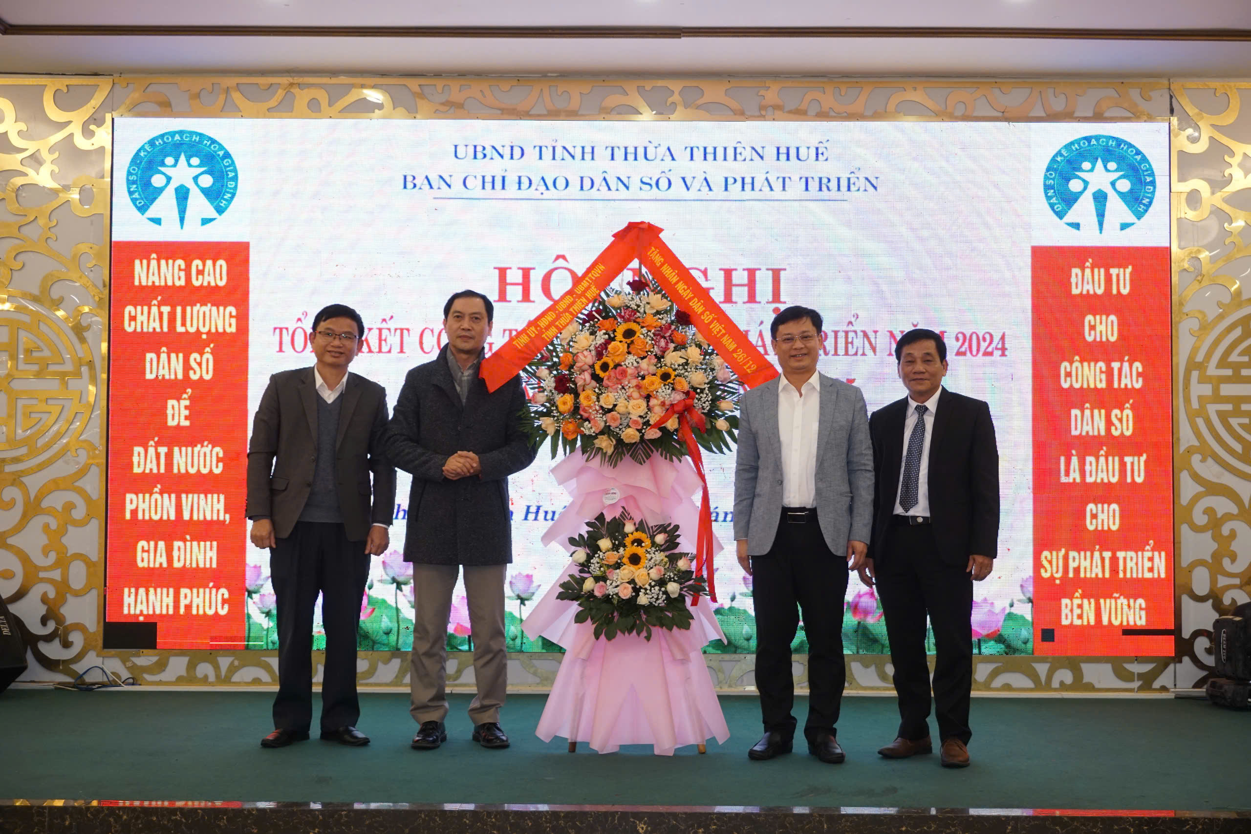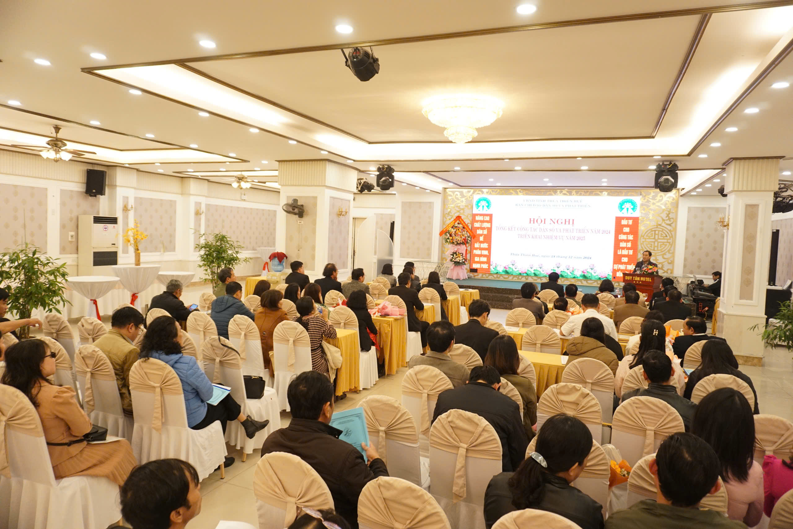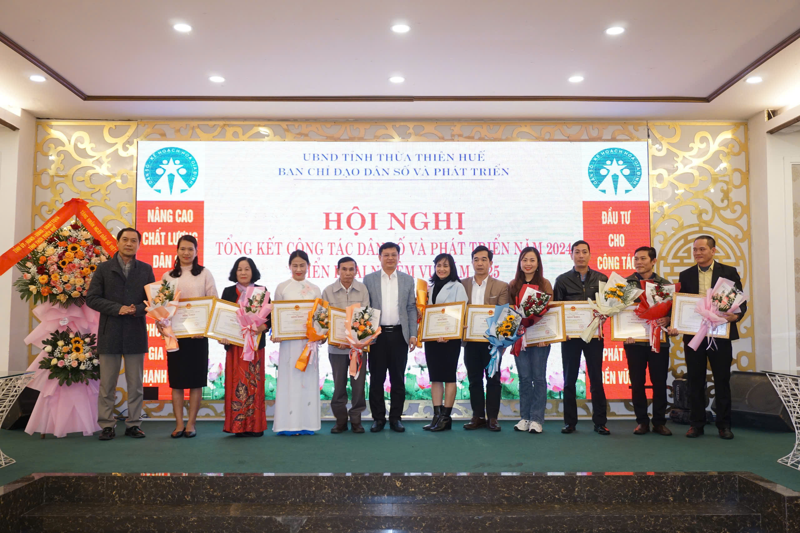 Chiều ngày 24/12/2024, được sự nhất trí của Ủy ban nhân dân tỉnh, Ban chỉ đạo công tác dân số và phát triển đã tổ chức Hội nghị tổng kết hoạt động công tác dân số và phát triển năm 2024, triển khai nhiệm vụ năm 2025. Đến tham dự và chỉ đạo Hội nghị có đồng chí Nguyễn Thanh Bình - Ủy viên Thường vụ Tỉnh ủy - Phó Chủ tịch Thường trực Ủy ban nhân dân tỉnh tỉnh - Trưởng ban chỉ đạo công tác dân số và phát triển; PGS.TS Trần Kiêm Hảo - Giám đốc Sở Y tế - Phó trưởng Ban chỉ đạo công tác dân số và phát triển; đại diện lãnh đạo Uỷ ban Mặt trận Tổ quốc Việt Nam tỉnh, Ủy ban Kiểm tra Tỉnh ủy, Ban Tuyên giáo Tỉnh ủy, Ban Dân vận Tỉnh ủy, Ban Văn hóa xã hội - HĐND tỉnh, Văn phòng HĐND tỉnh, Văn phòng Đoàn Đại biểu Quốc hội tỉnh, UBND tỉnh; Bệnh viện Trung ương Huế, Trường Đại học Y Dược Huế, Trung tâm Sàng lọc - Chẩn đoán trước sinh và sơ sinh thuộc Trường Đại học Y dược Huế; các thành viên Ban chỉ đạo công tác dân số và phát triển; đại diện lãnh đạo và các phòng môn thuộc Sở Y tế, Chi cục Dân số, đại diện lãnh đạo các đơn vị trực thuộc ngành Y tế, Hội Kế hoạch hóa Gia đình tỉnh; Ủy ban nhân dân các huyện, thị xã, thành phố Huế và các tập thể, cá nhân có thành tích xuất sắc trong công tác dân số và phát triển, mô hình xã, phường, cụm dân cư không có người sinh con thứ 3 trở lên giai đoạn 2021-2024,...